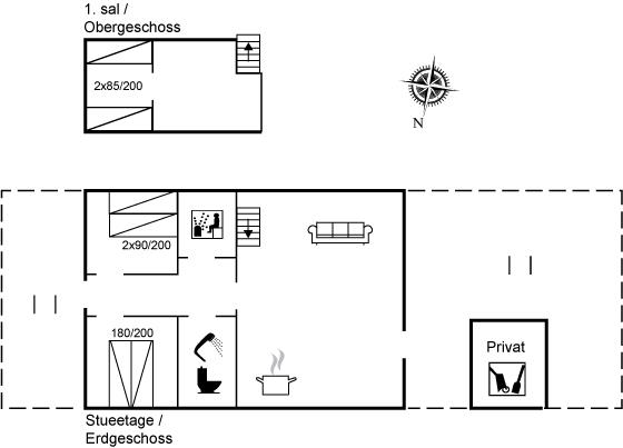 Der er i alt 3 soveværelser. Sovepladserne fordeler sig på: 2 sovepladser i dobbeltseng. 4 sovepladser i enkeltsenge. Derudover er der 1 stk. barneseng.