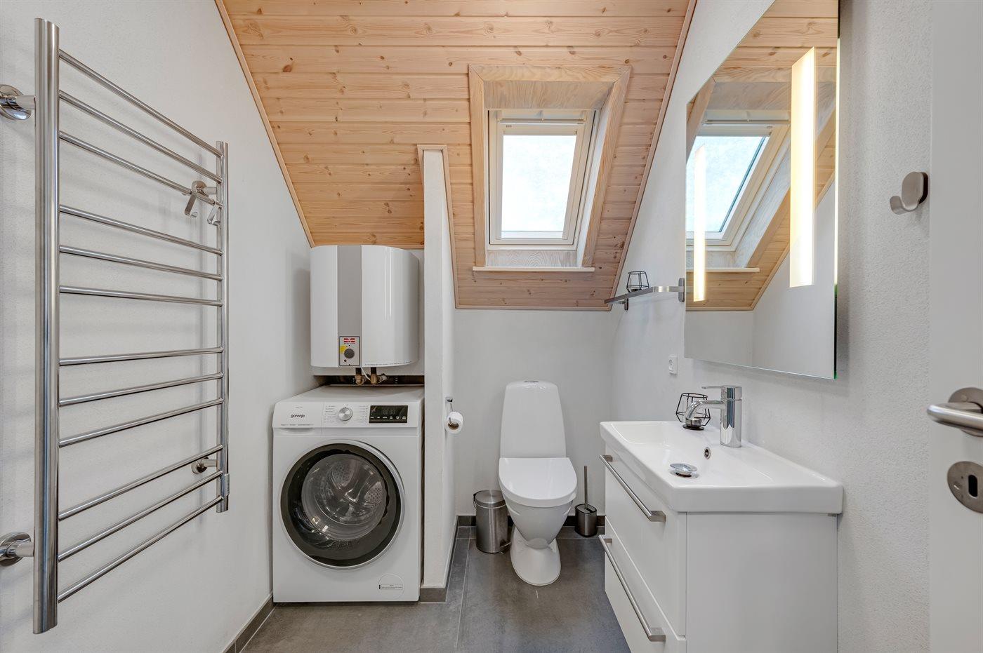 Der er 1 badeværelse med bruseniche og 1 toilet.. Der er gulvvarme på 1 badeværelse. I saunaen er der mulighed for afslapning.
