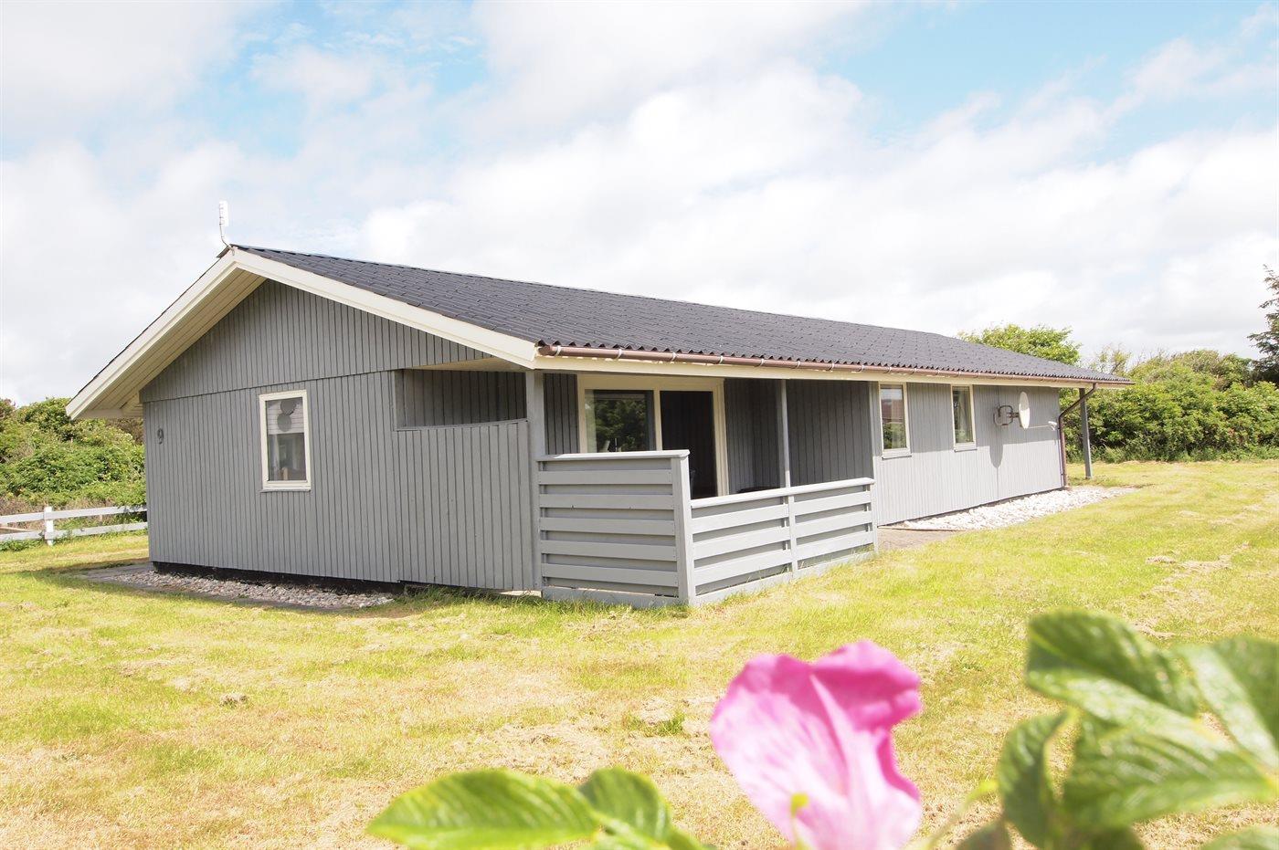 Hyggeligt sommerhus beliggende på en meget stor grund med gode muligheder for boldspil, kroket m.m. Huset ligger i det dejlige ferieområde Bjerregård, tæt på naturcykelstien mellem Søndervig og Nymindegab.