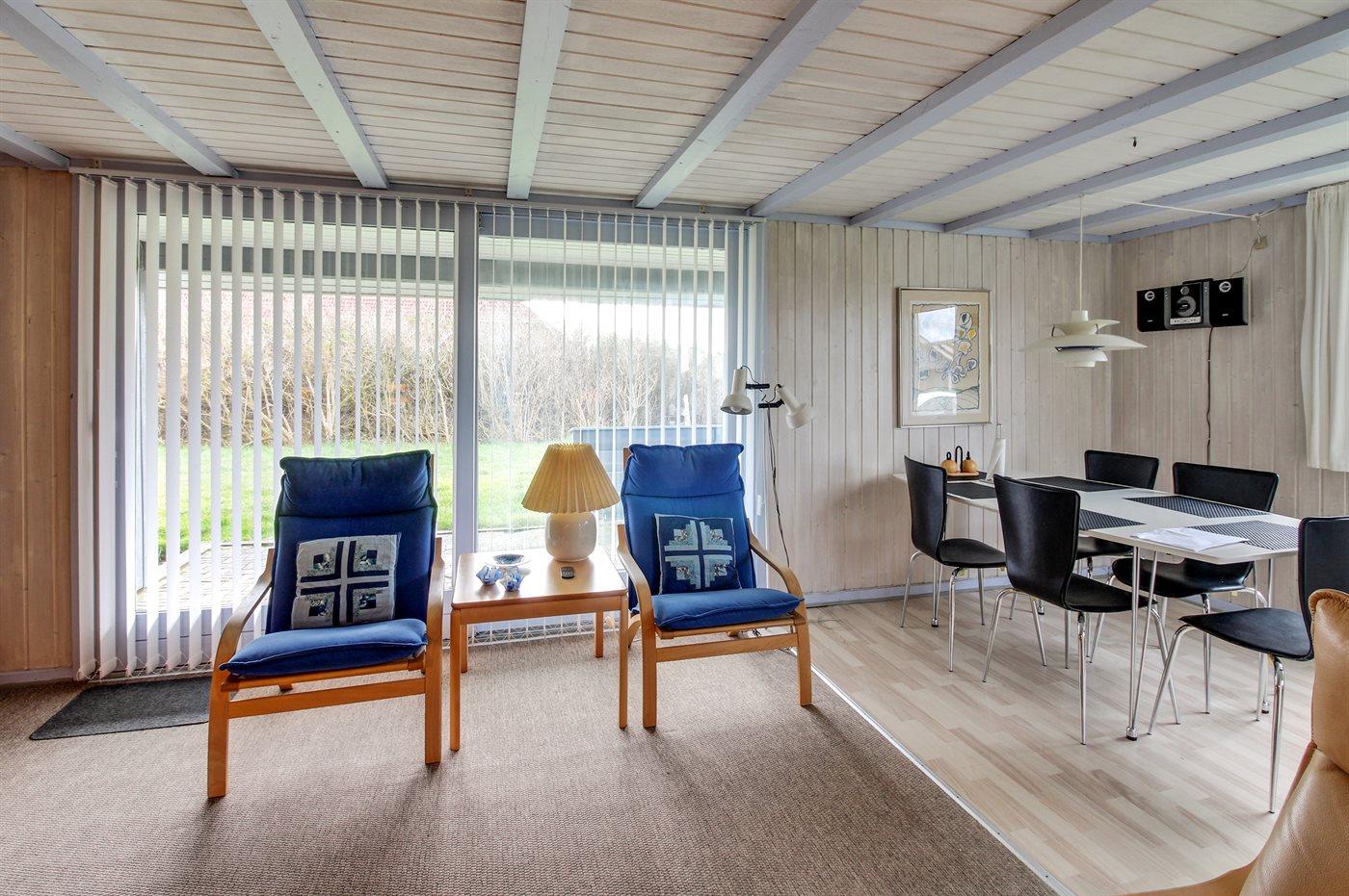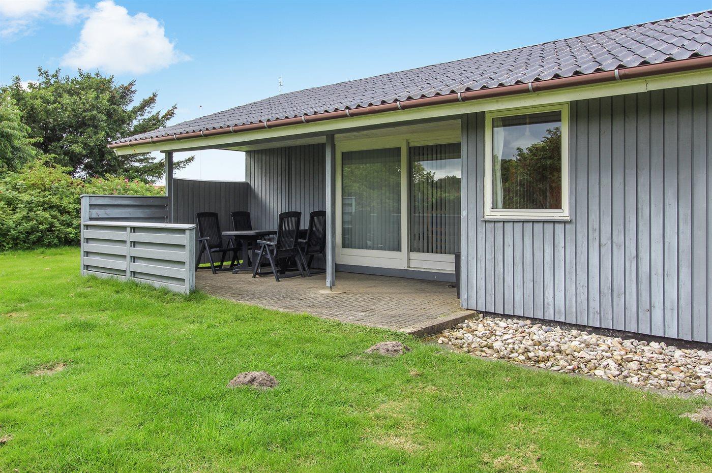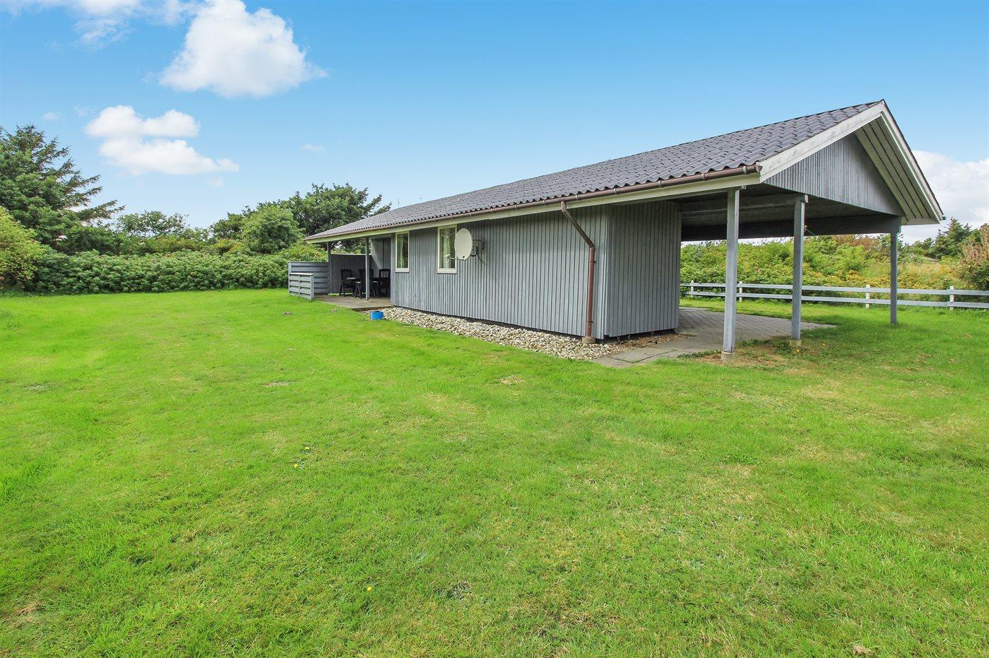 Ferieboligen er beliggende på en 4600 m² stor naturgrund. Der er 1300 m til havet. Der er 700 m til fjorden. Nærmeste forretning er beliggende i en afstand af 200 m. Desuden er der 20 m² overdækket terrasse. Der er redskabsrum. Sandkasse. Der er carport til rådighed. Parkering ved ferieboligen.