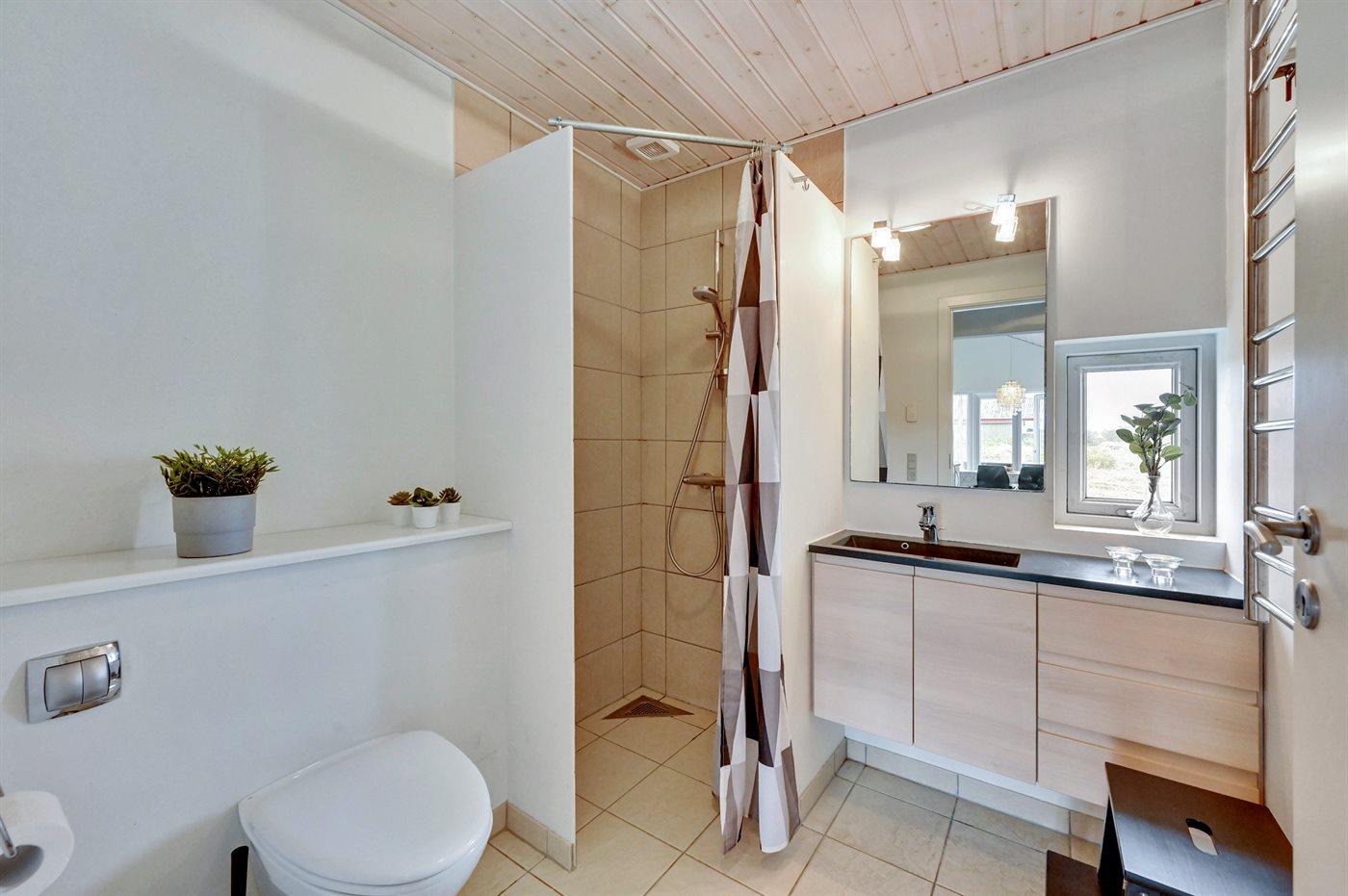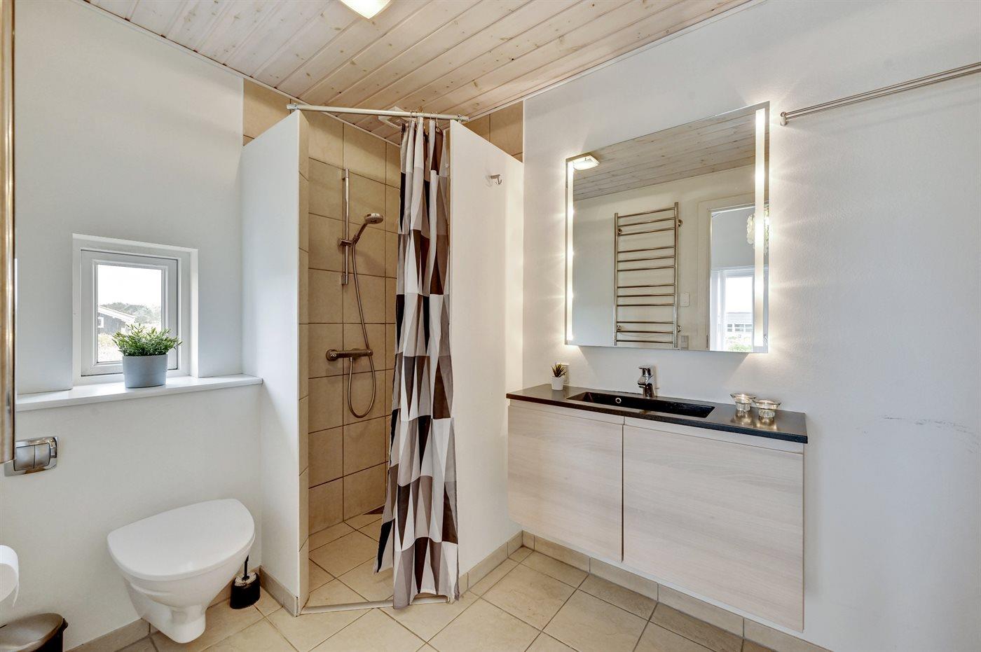 Der er 2 badeværelser med bruseniche og 2 toiletter. Der er gulvvarme på 2 badeværelser.