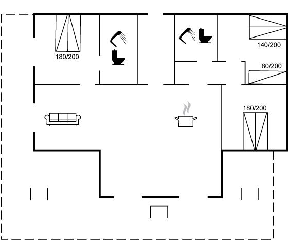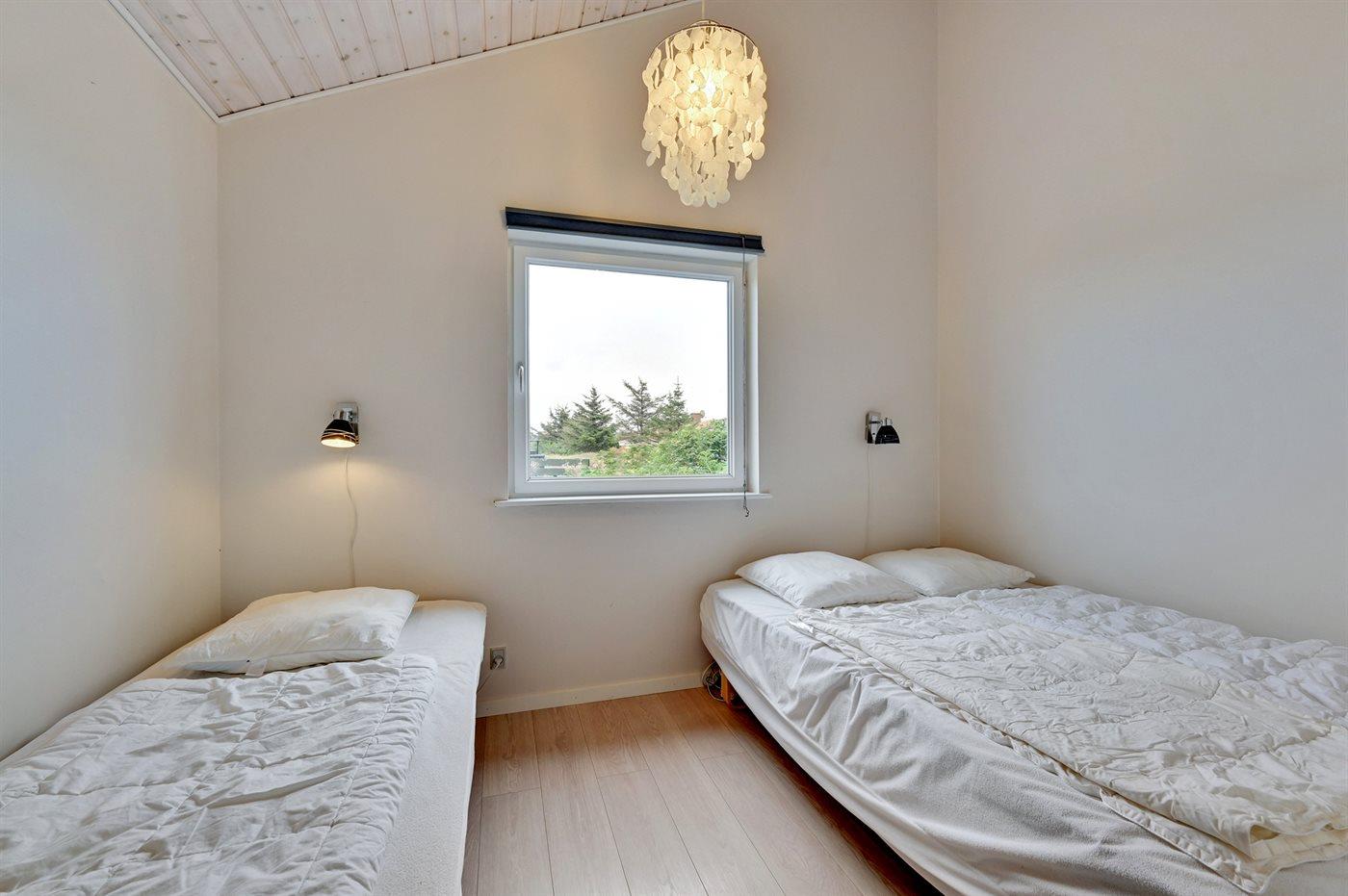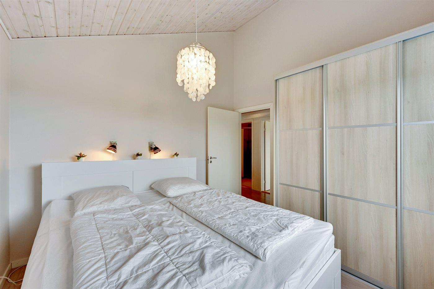 Der er i alt 3 soveværelser. Sovepladserne fordeler sig på: 4 sovepladser i dobbeltsenge. 2 sovepladser i enkeltsenge. 1 soveplads på madras. 1 af disse sovepladser befinder sig på husets hems.