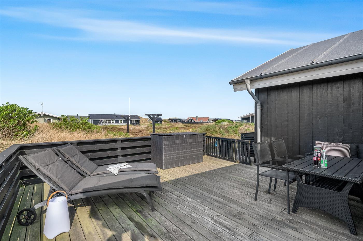 Udendørs finder du en lukket terrasse, hvor I kan nyde solen og den friske luft i fred og ro. Terrassen er også ideel til hunden, da den kan løbe og lege frit. Så hvis du leder efter et lækkert sommerhus tæt på Vesterhavet, hvor du kan tilbringe ferien, er dette sommerhus det helt perfekte valg.