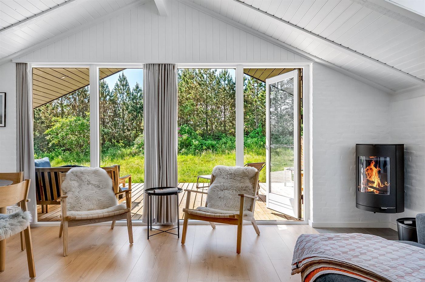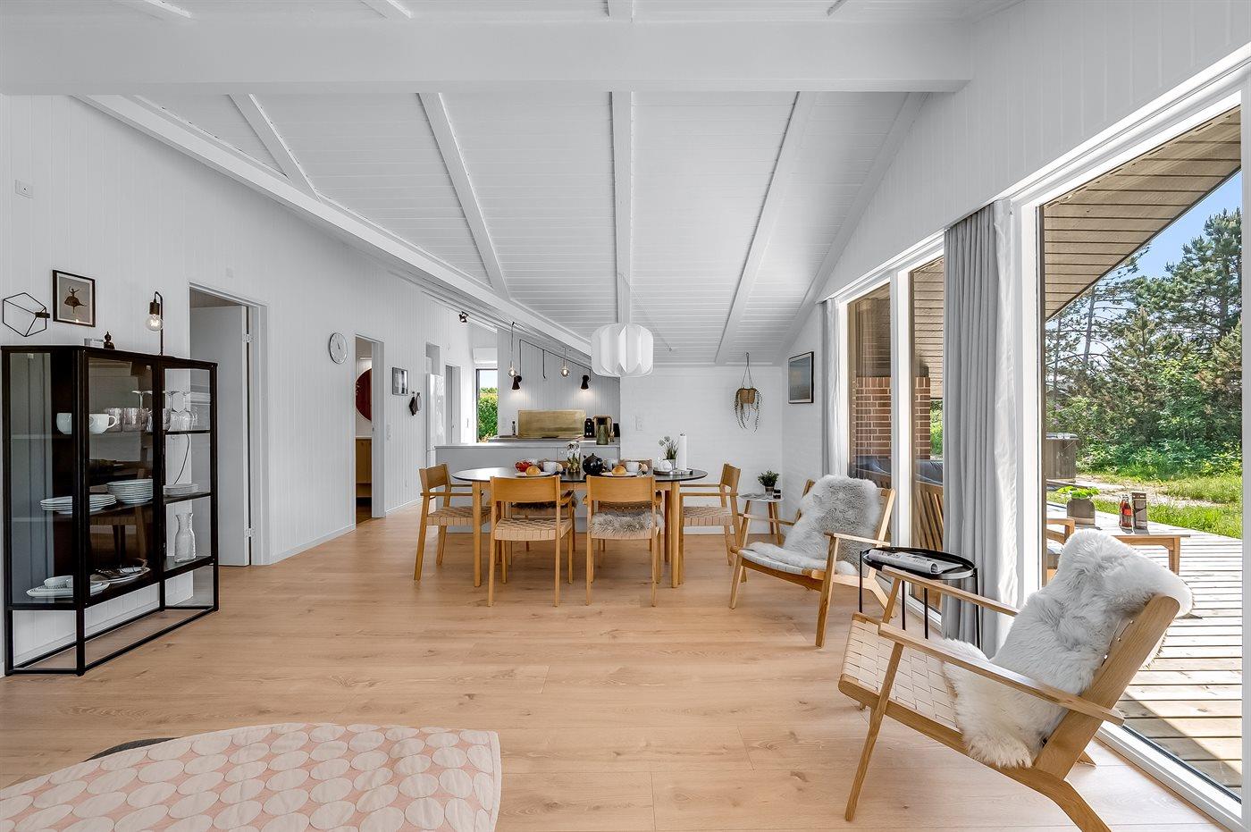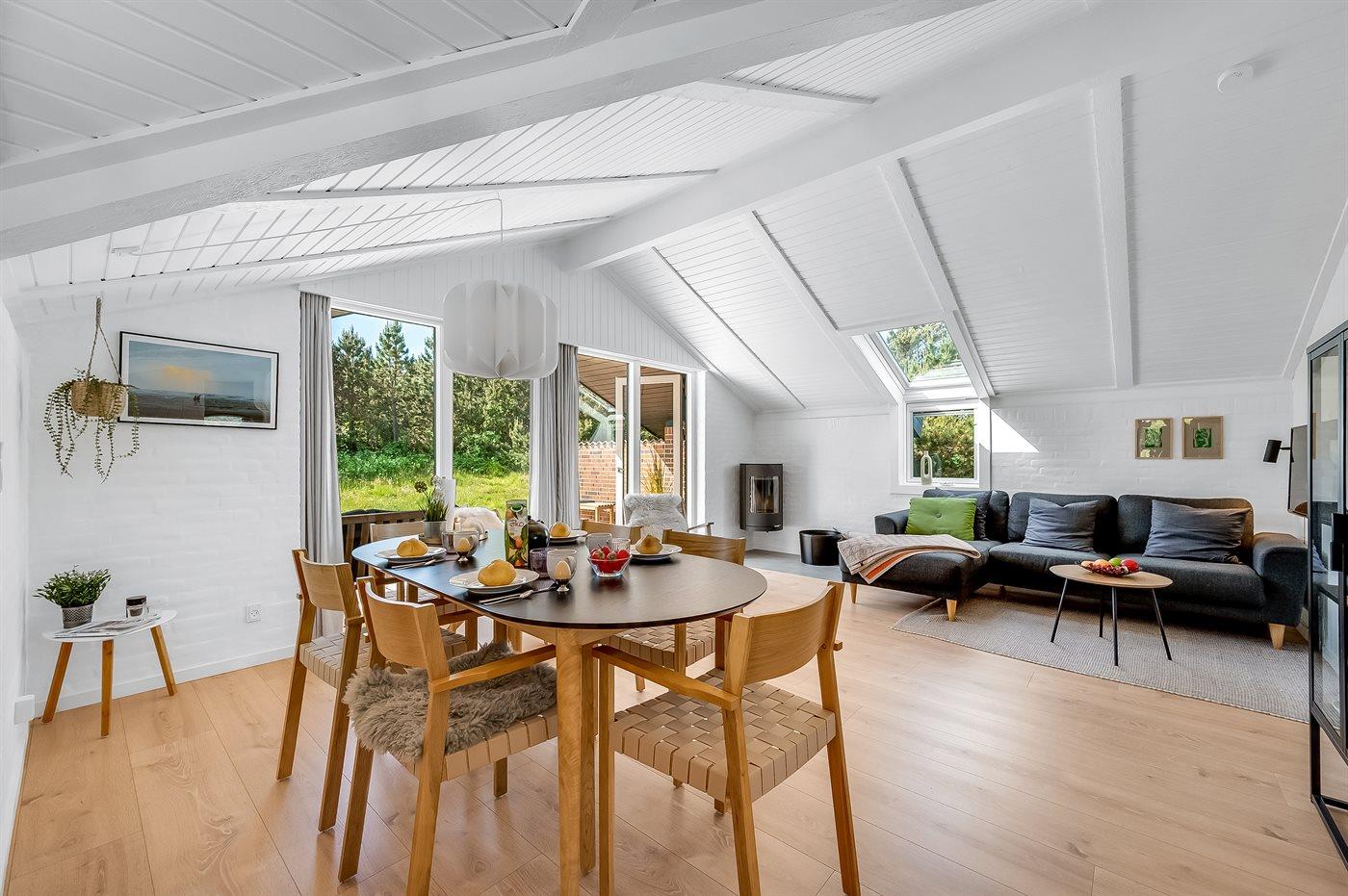 Midt imellem Vesterhavet og Ringkøbing Fjord ligger dette hyggelige og smukt nyrenoverede (2024) sommerhus. Indenfor i det smukke og lyse køkkenalrum kan der laves lækker mad, og skal der slappes af, kan I slænge jer i sofaen med en god bog og nyde ilden i brændeovnen.