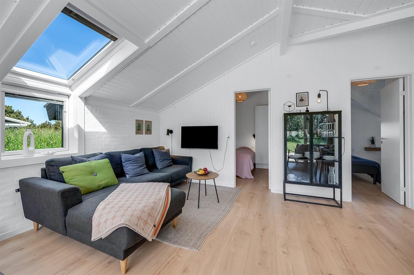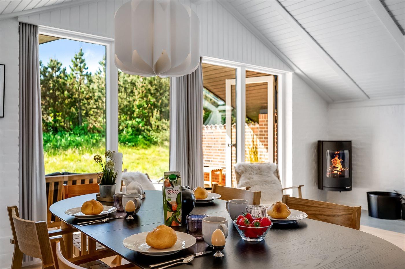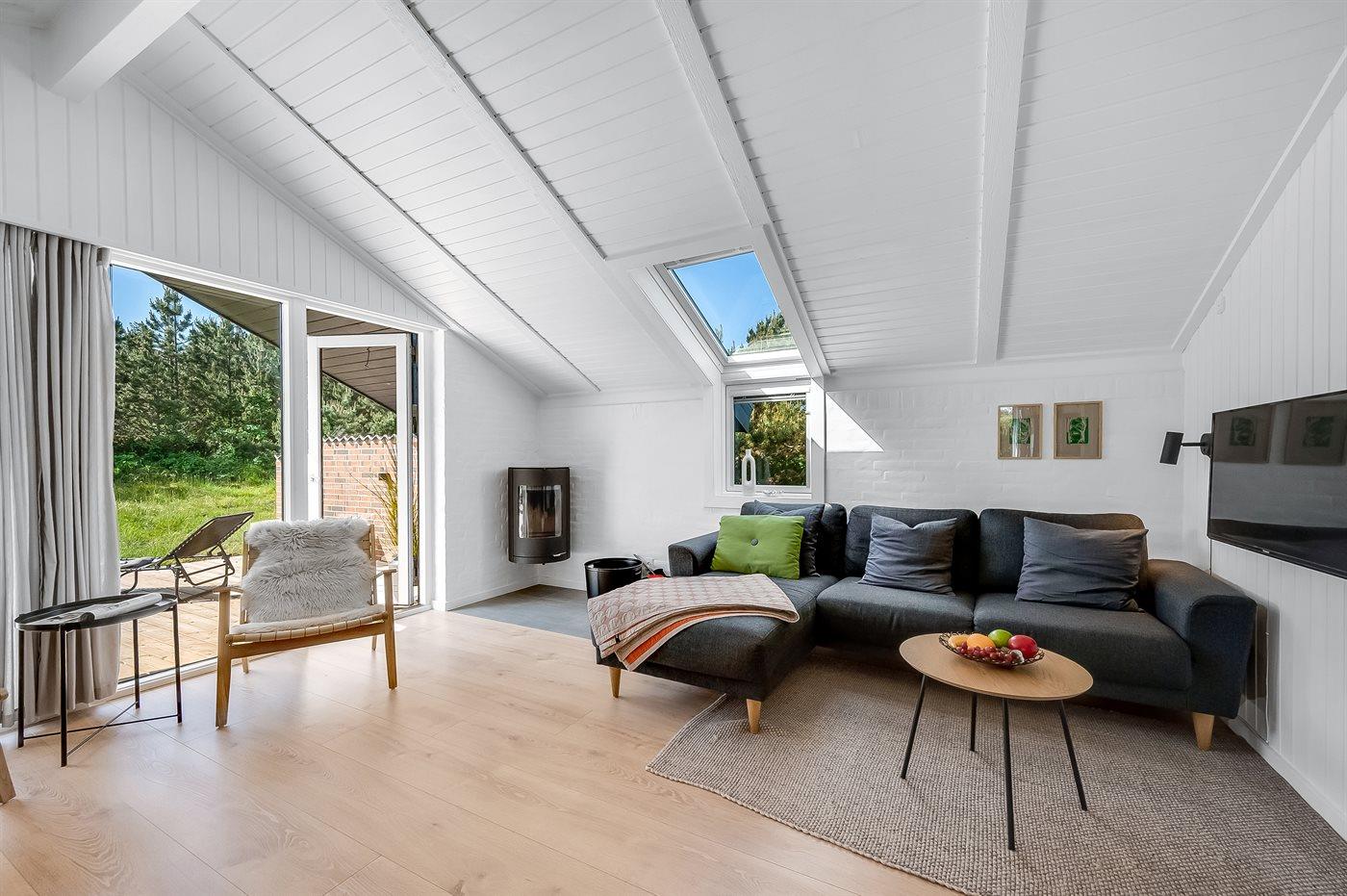 Midt imellem Vesterhavet og Ringkøbing Fjord ligger dette hyggelige og smukt nyrenoverede (2024) sommerhus. Indenfor i det smukke og lyse køkkenalrum kan der laves lækker mad, og skal der slappes af, kan I slænge jer i sofaen med en god bog og nyde ilden i brændeovnen.