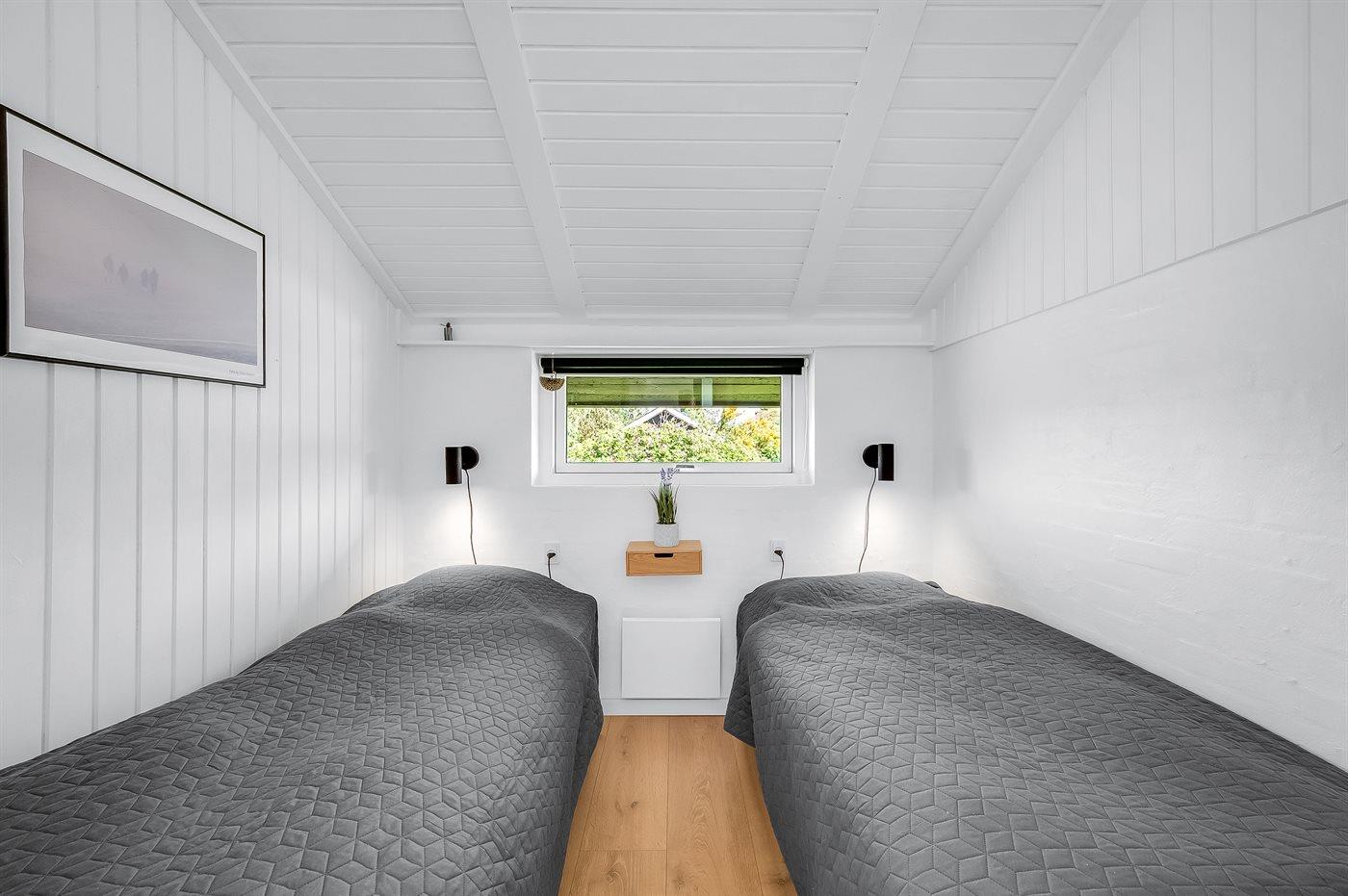 Der er i alt 3 soveværelser. Sovepladserne fordeler sig på: 2 sovepladser i dobbeltseng. 3 sovepladser i enkeltsenge.