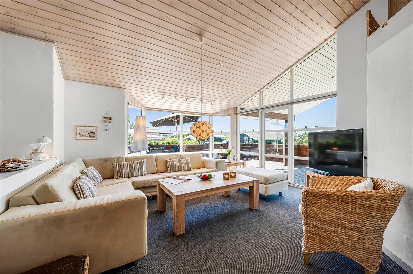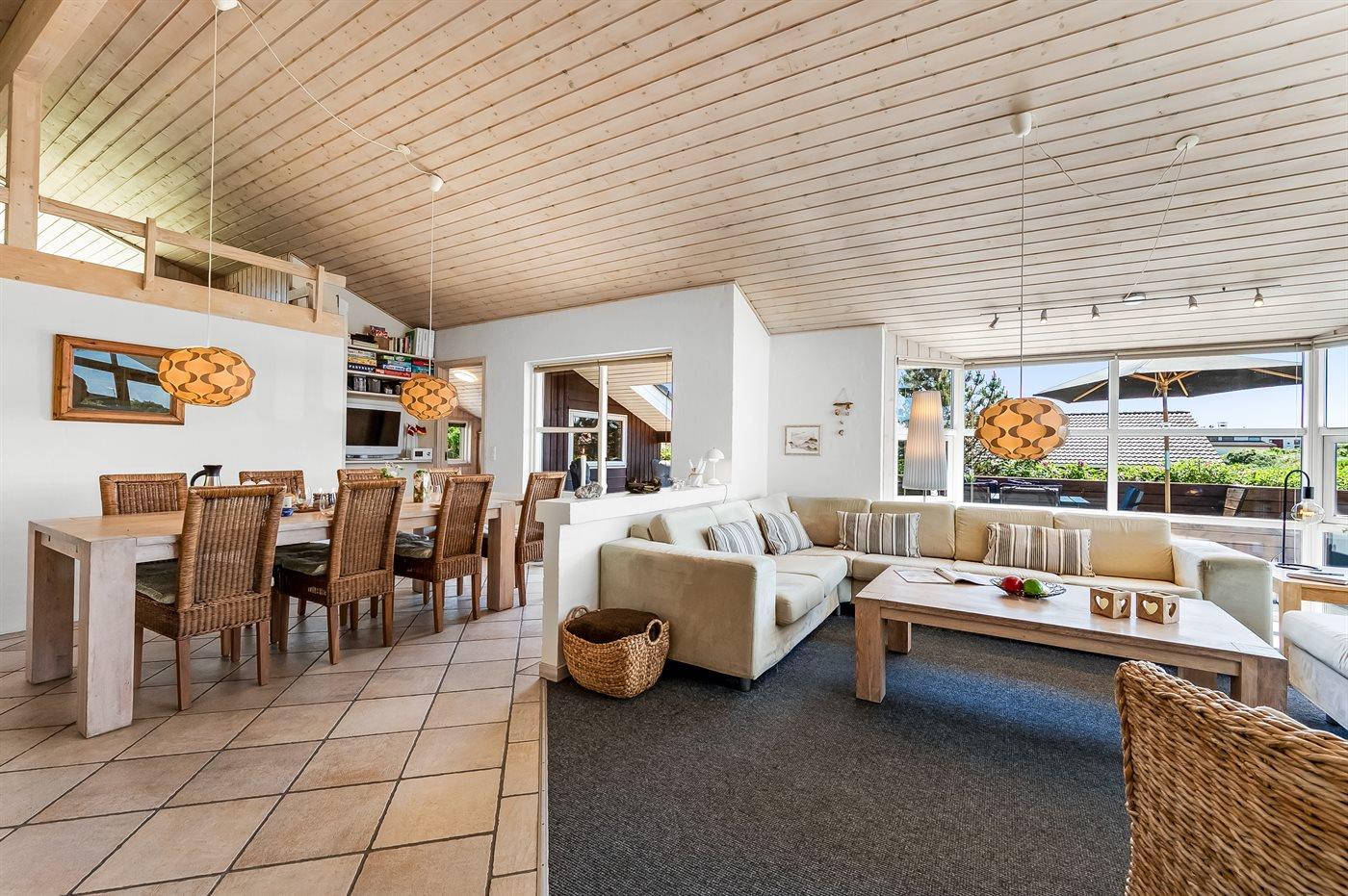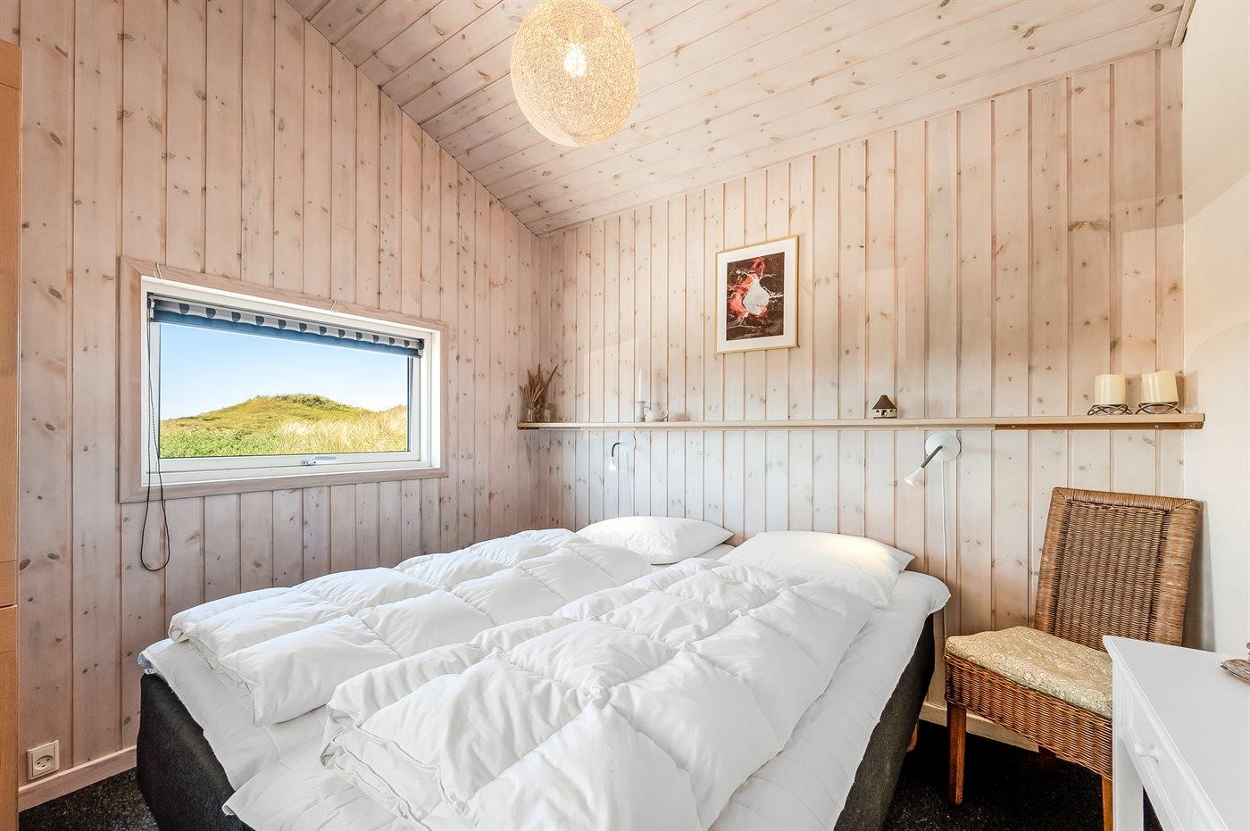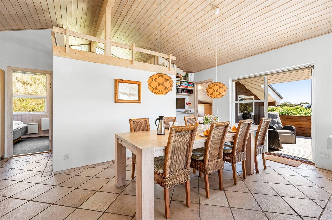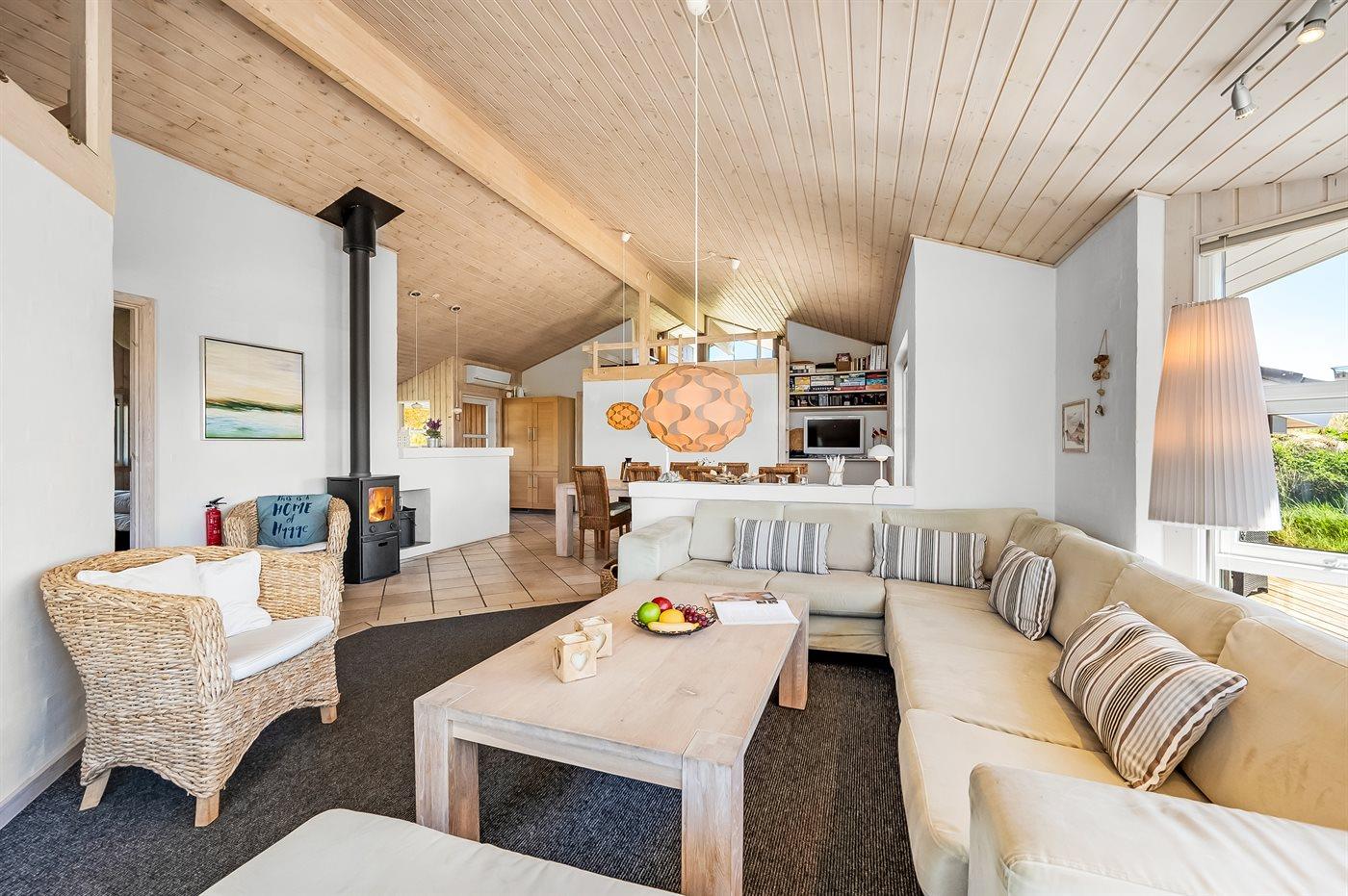 Hyggeligt sommerhus nær Vesterhavet med smuk udsigt over klitlandskab og Ringkøbing Fjord.