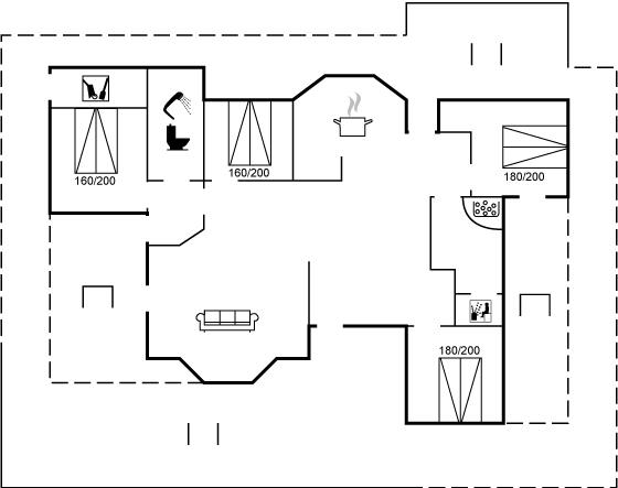 Der er i alt 4 soveværelser. Sovepladserne fordeler sig på: 8 sovepladser i dobbeltsenge. Derudover er der 2 stk. barnesenge.