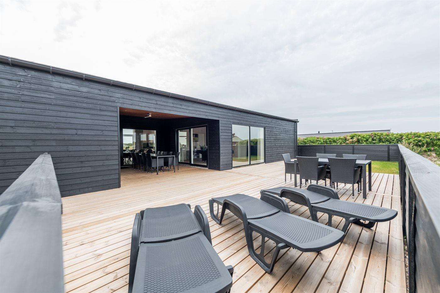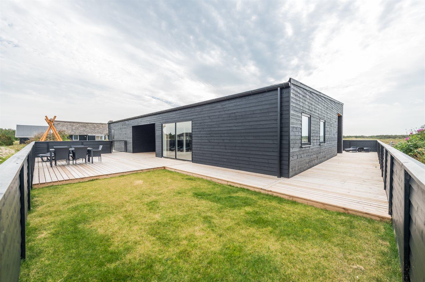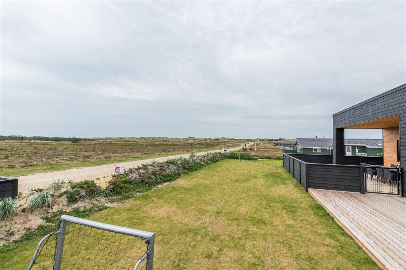 Udenfor på sommerhusets lækre terrassemiljø kan I nyde udsigten over klitterne og det smukke fredede klitlandskab.