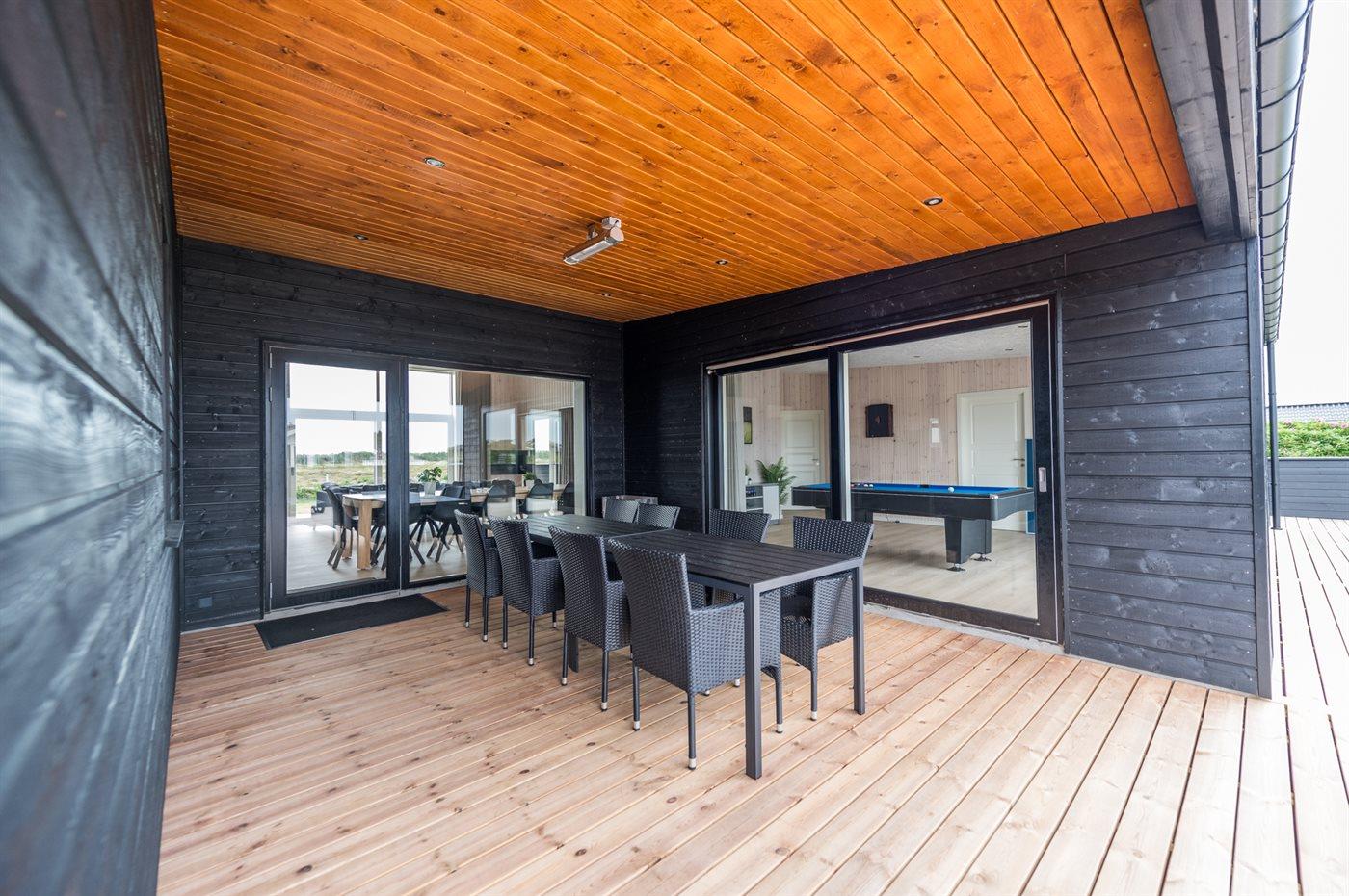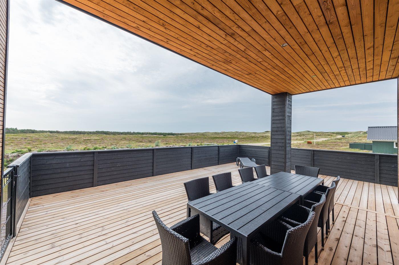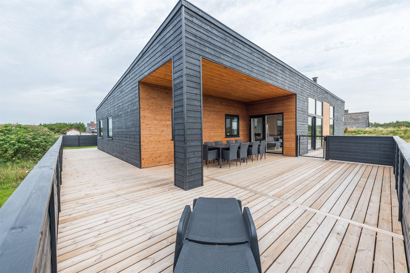 Udenfor på sommerhusets lækre terrassemiljø kan I nyde udsigten over klitterne og det smukke fredede klitlandskab.
