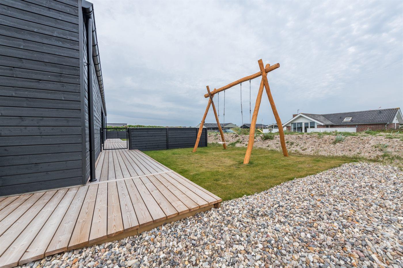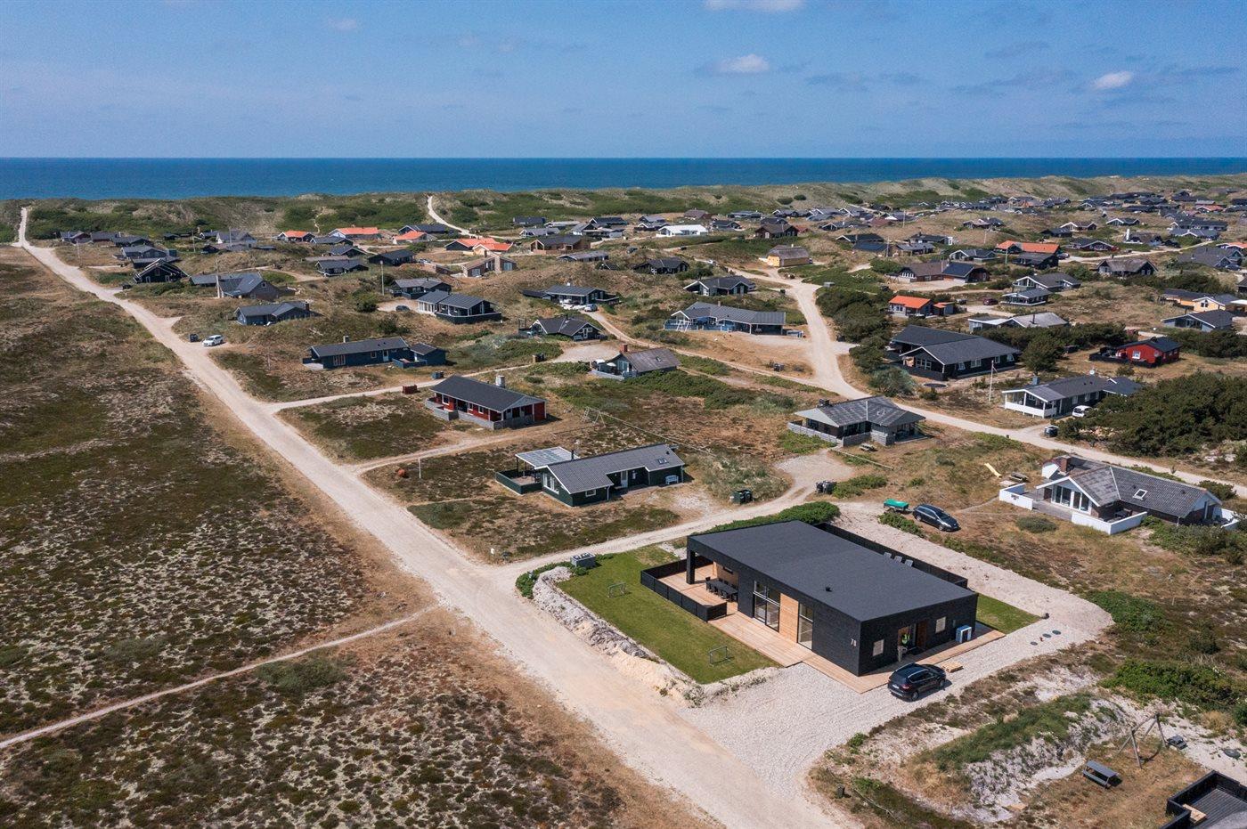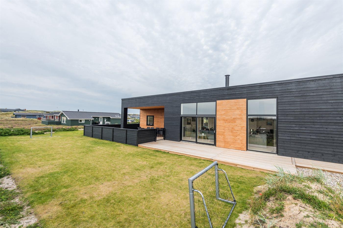 Ferieboligen er beliggende på en 1250 m² stor naturgrund. Der er 400 m til havet. Nærmeste forretning er beliggende i en afstand af 600 m. Til ferieboligen hører åbent terrasseareal. Desuden er der overdækket terrasse. Gynge. Fodboldmål. Der er installeret stik til opladning af elbil. Type 2 stik. Med 11 kW ladeeffekt. Parkering ved ferieboligen.