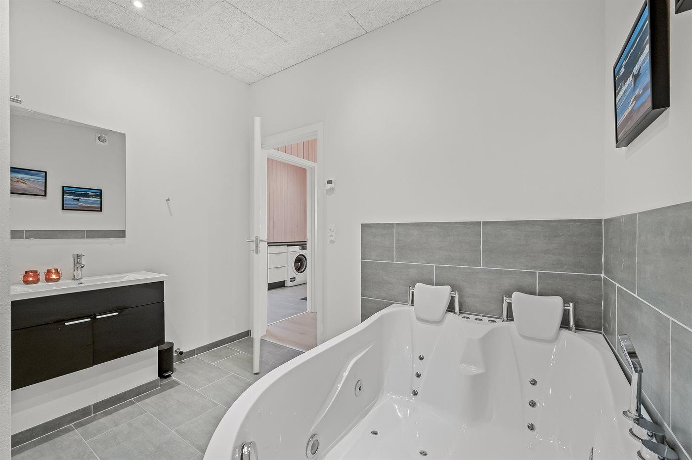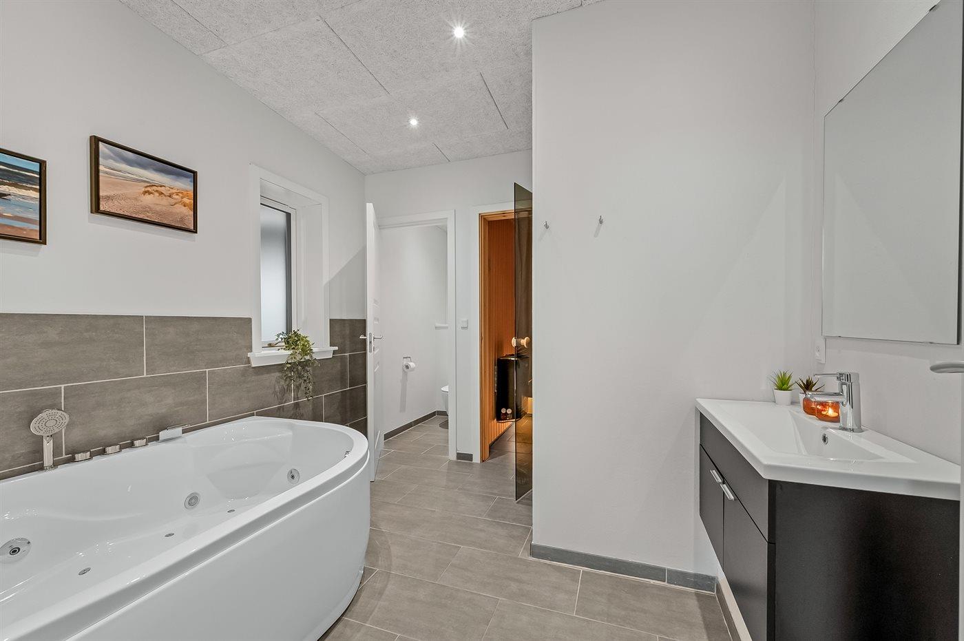Der er 2 badeværelser med bruseniche og 2 toiletter. Der er gulvvarme på 2 badeværelser. I saunaen er der mulighed for afslapning.