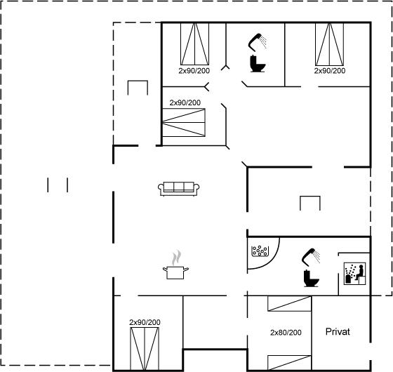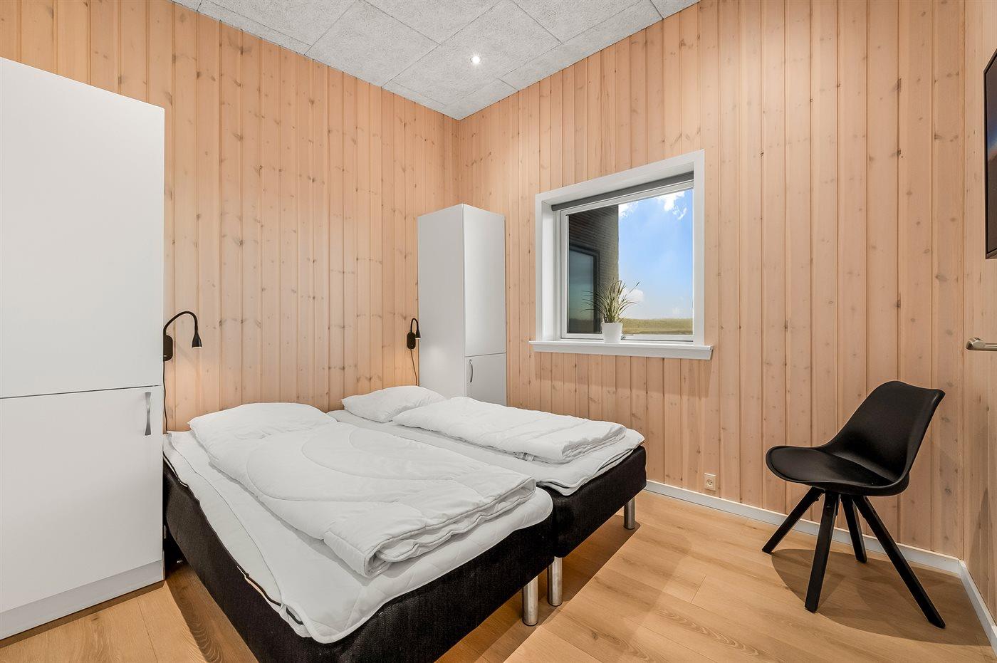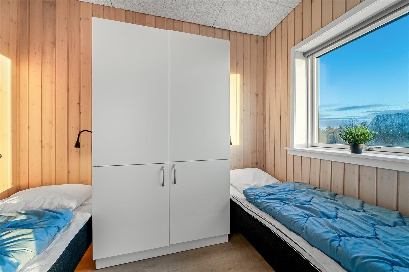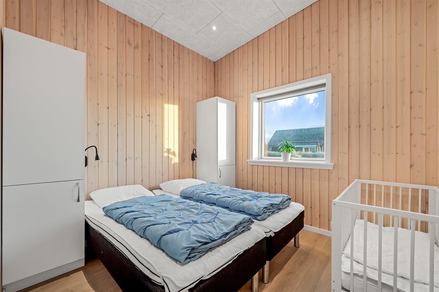 Der er i alt 5 soveværelser. Sovepladserne fordeler sig på: 8 sovepladser i dobbeltsenge. 2 sovepladser i enkeltsenge. Derudover er der 1 stk. barneseng.