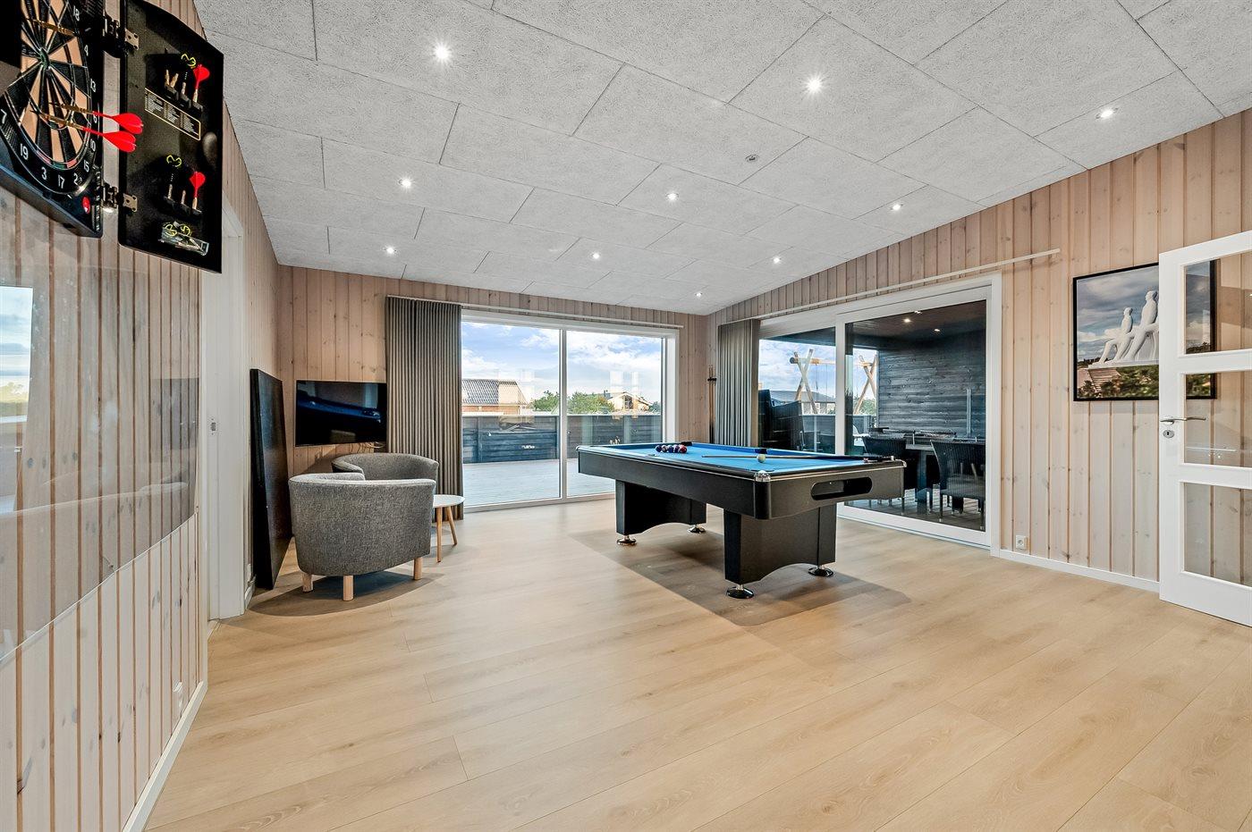 Nybygget aktivitetshus fra 2023 nær Vesterhavets brede sandstrande med spa, sauna og aktivitetsrum.