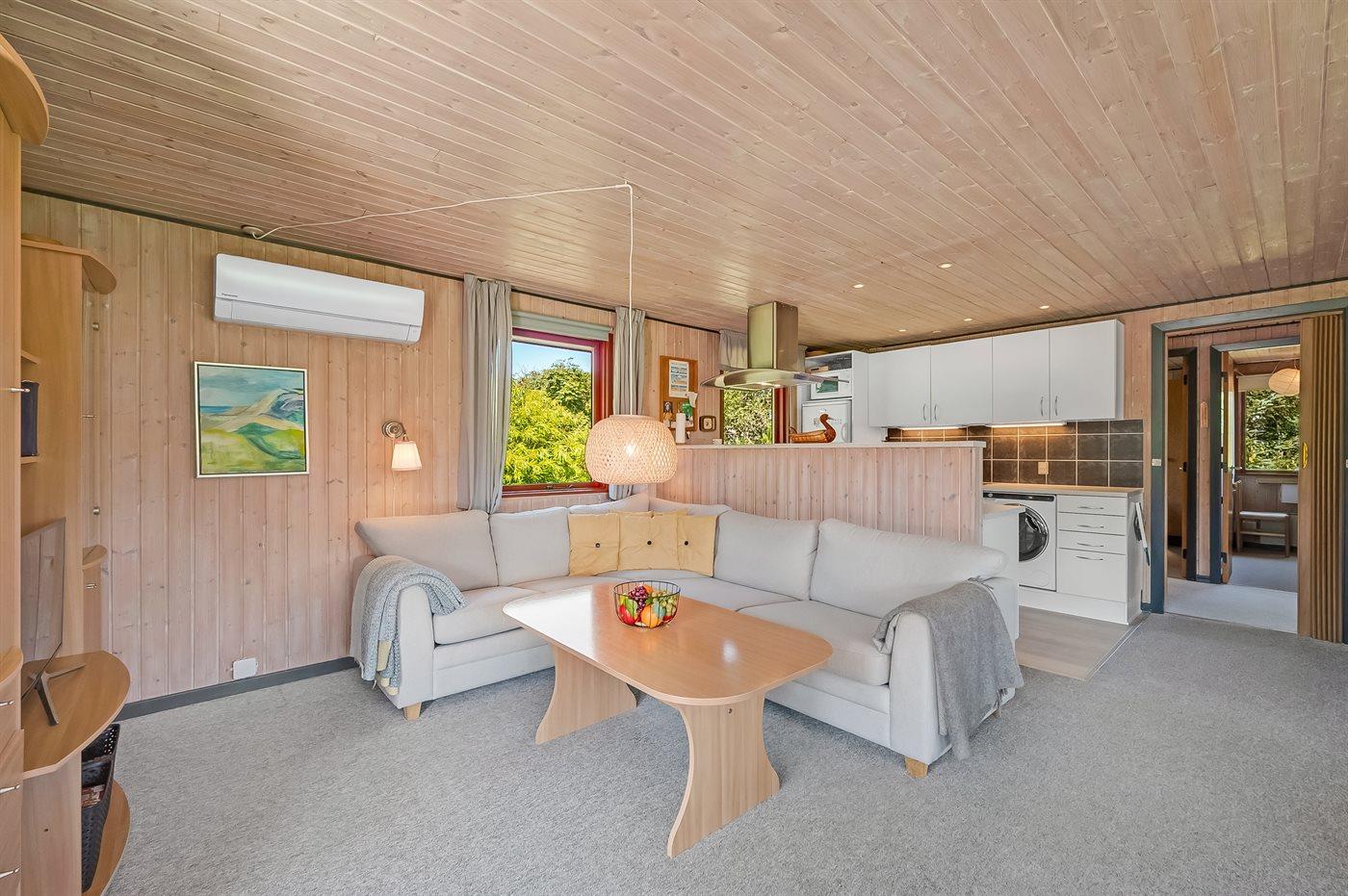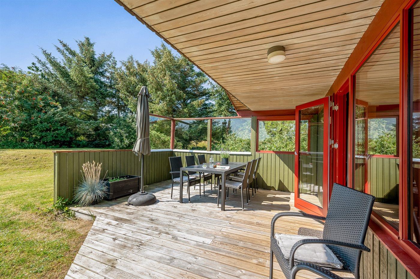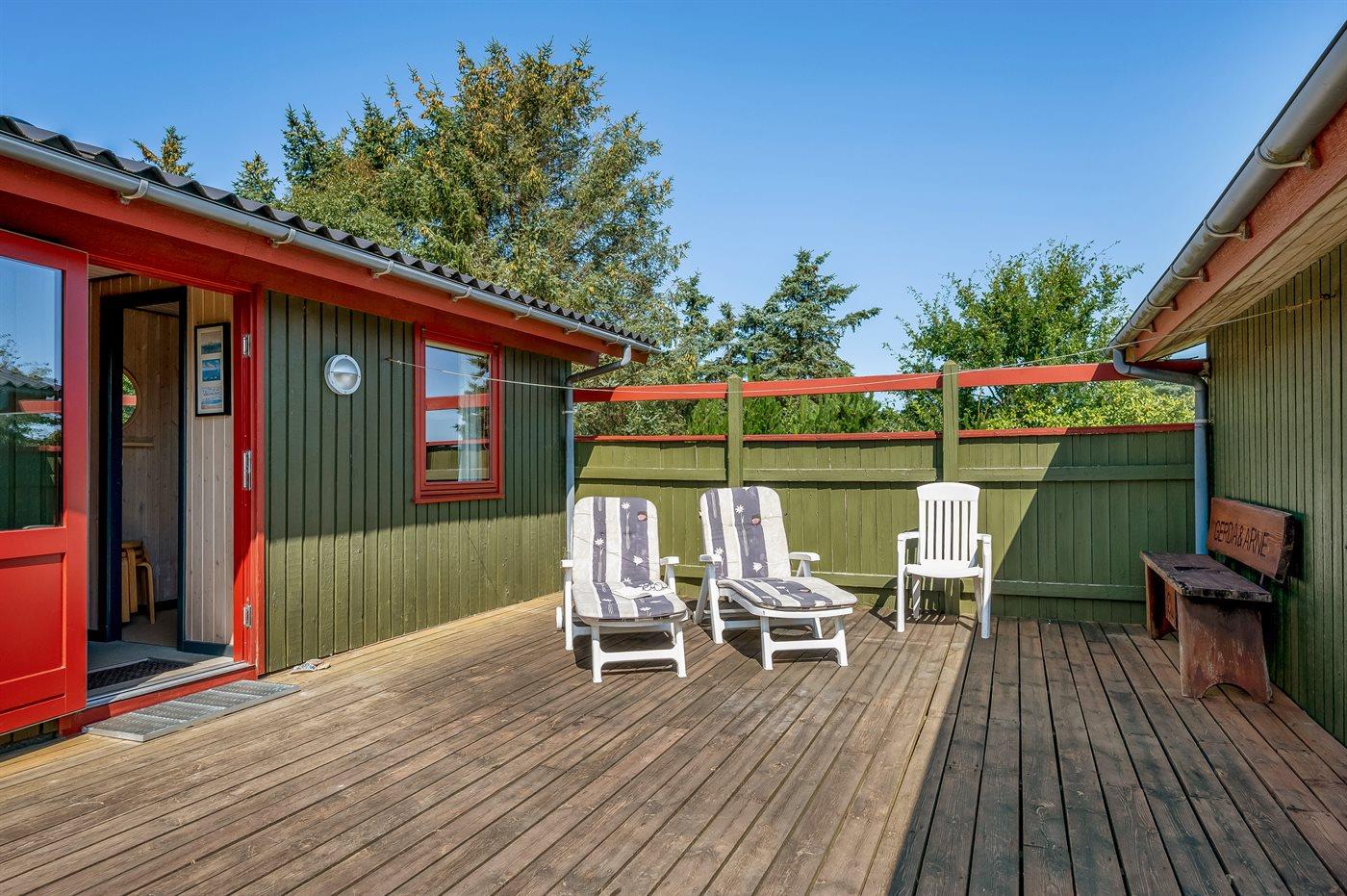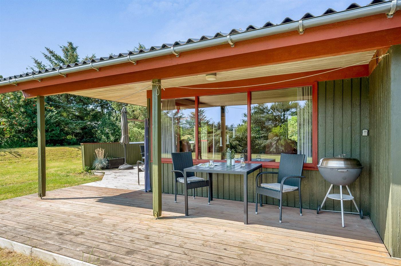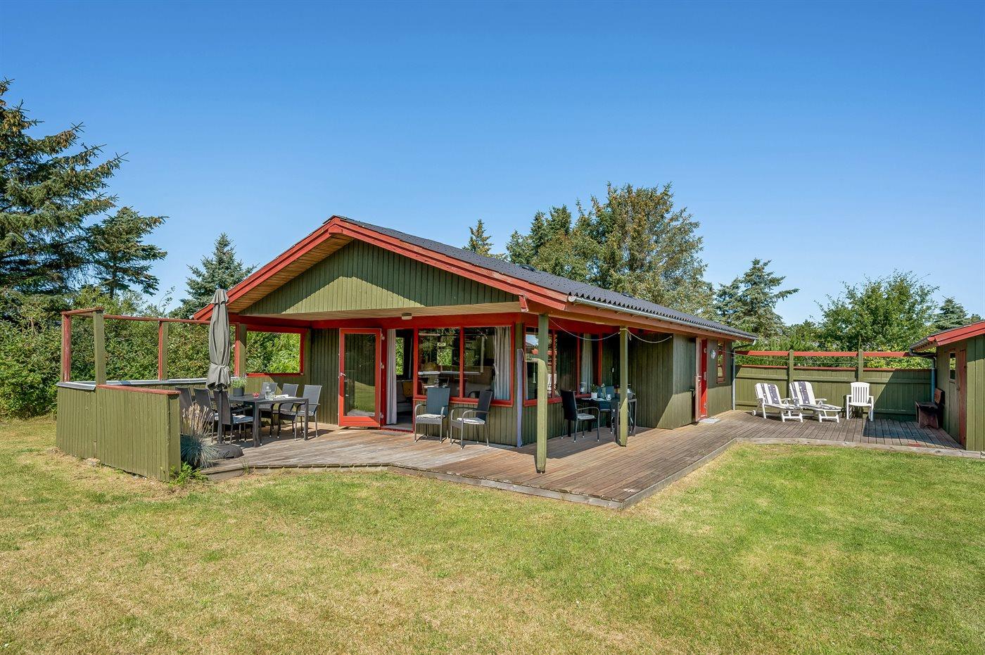 Ferieboligen er beliggende på en 1200 m² stor naturgrund. Der er 900 m til havet. Der er 900 m til fjorden. Nærmeste forretning er beliggende i en afstand af 300 m. Til ferieboligen hører åbent terrasseareal. Desuden er der overdækket terrasse. Der er redskabsrum. Gynge. Legehus. Rutchebane. Bålsted. Parkering ved ferieboligen.