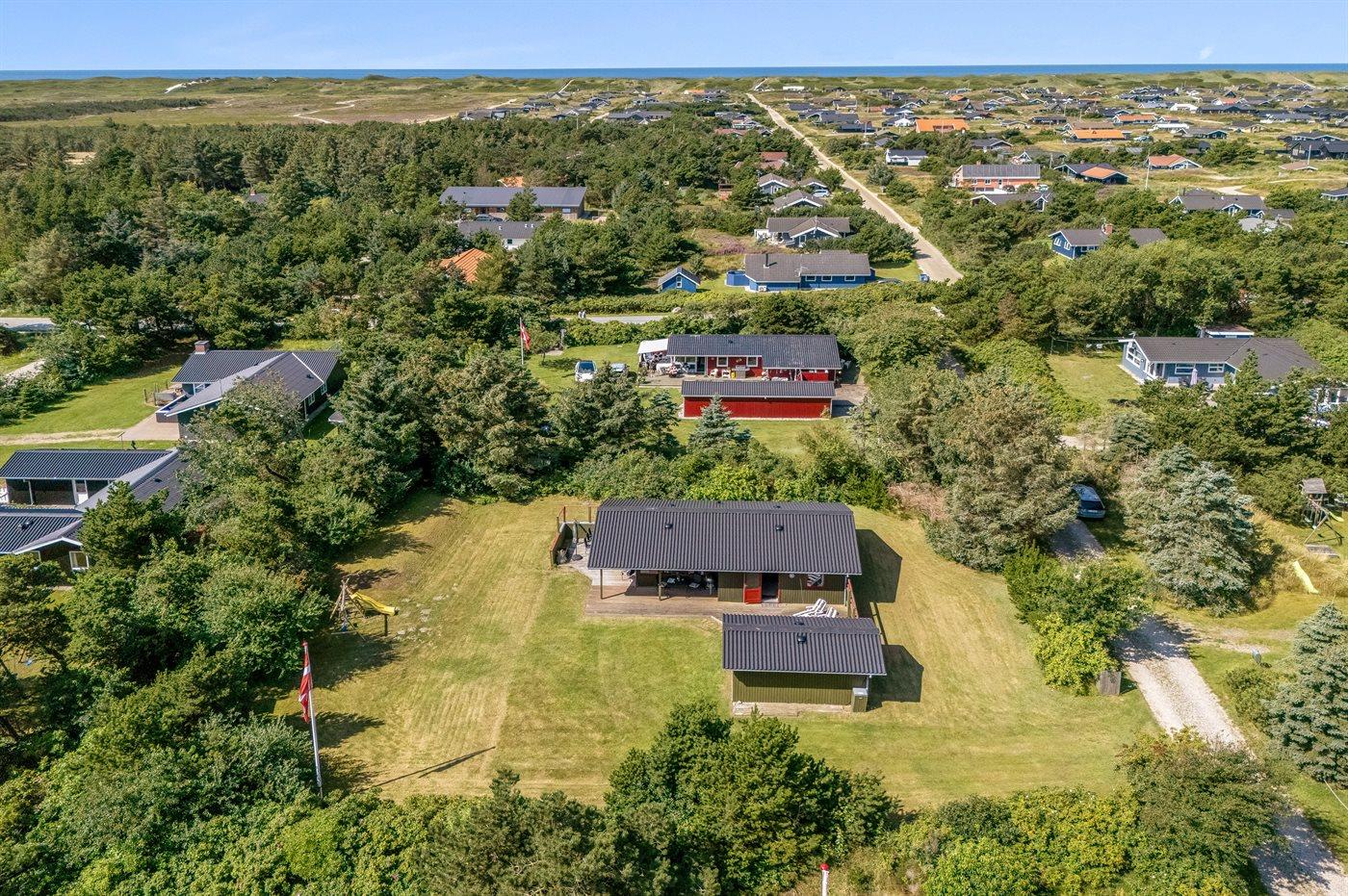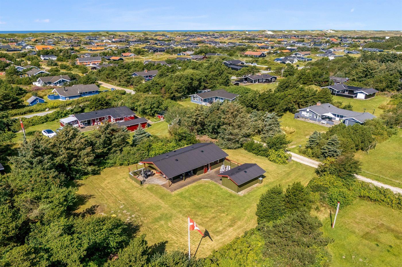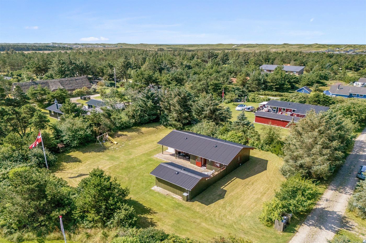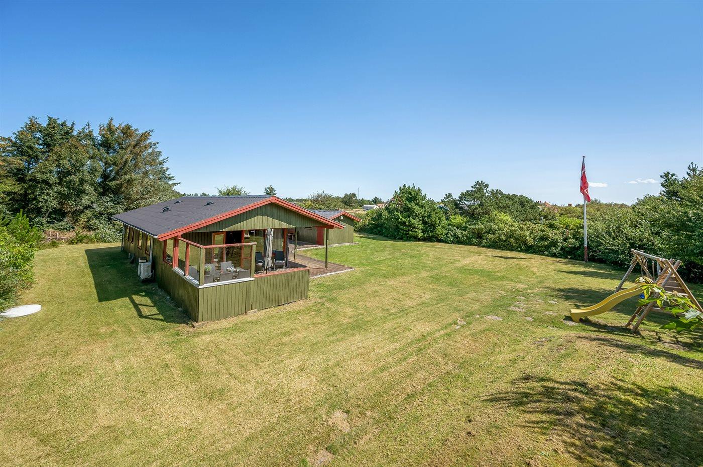Dette dejlige og hyggelige sommerhus ligger på en stor grund på en stille vej - midt imellem Vesterhavet og Ringkøbing Fjord. Grunden er omkranset af beplantning, og dette giver en dejlig fornemmelse af privatliv, når man slapper af på en af sommerhusets terrasser eller når man leger med børnene eller hunden på grunden.