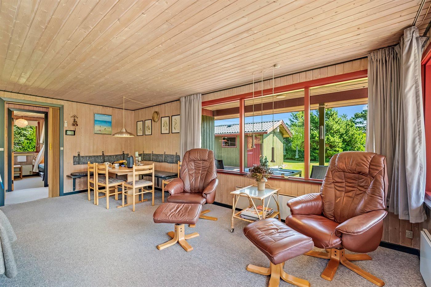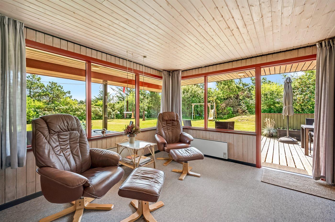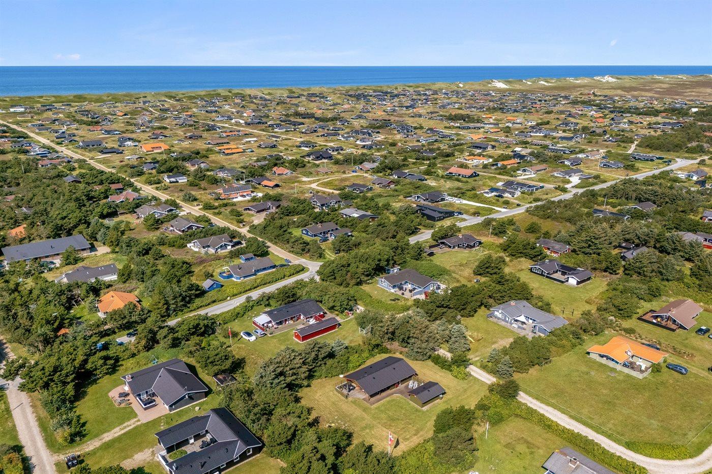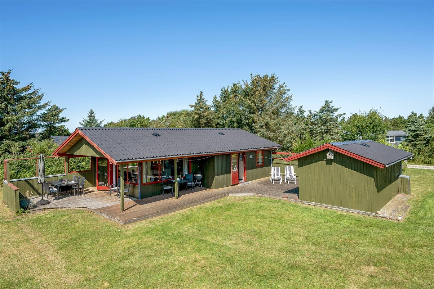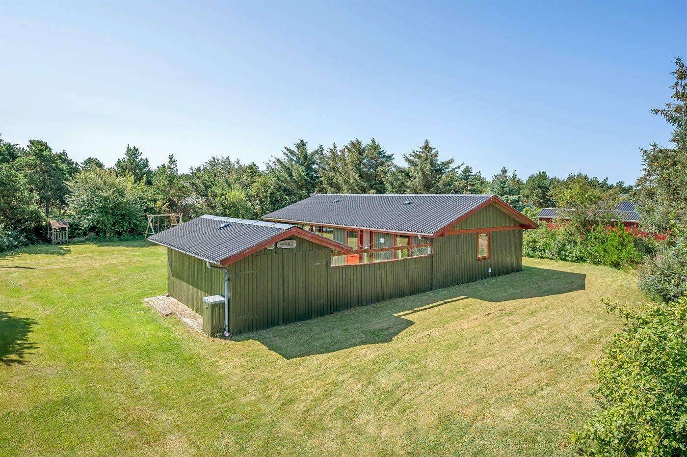 Dette dejlige og hyggelige sommerhus ligger på en stor grund på en stille vej - midt imellem Vesterhavet og Ringkøbing Fjord. Grunden er omkranset af beplantning, og dette giver en dejlig fornemmelse af privatliv, når man slapper af på en af sommerhusets terrasser eller når man leger med børnene eller hunden på grunden.