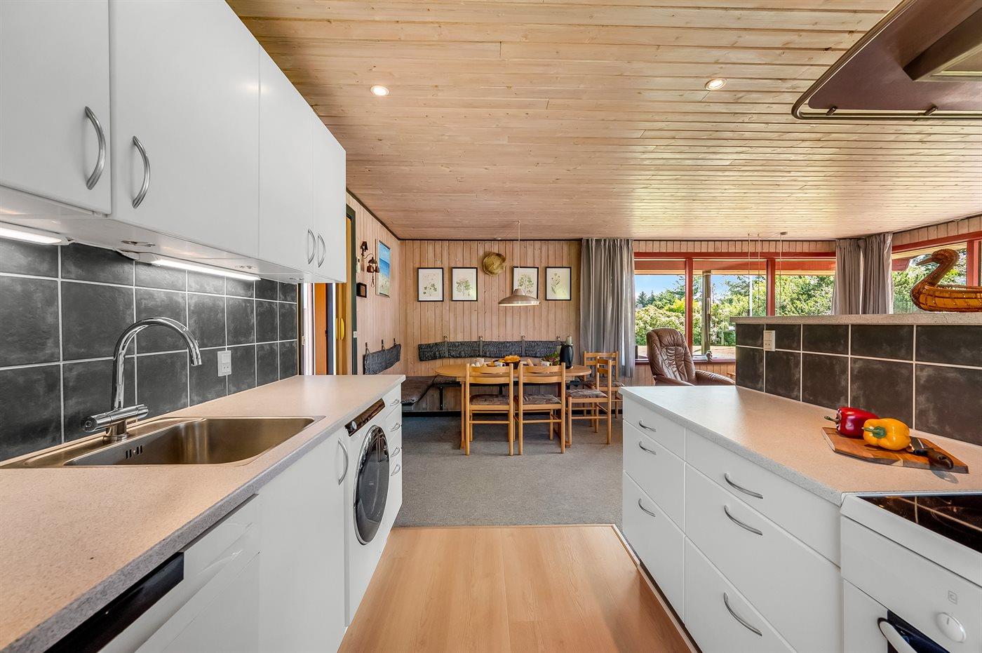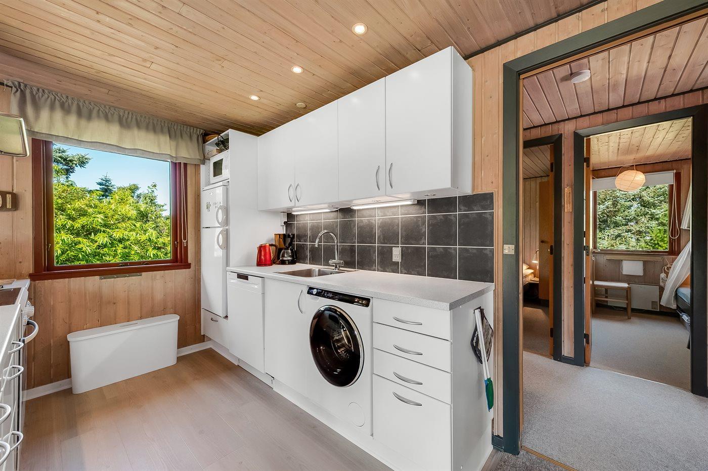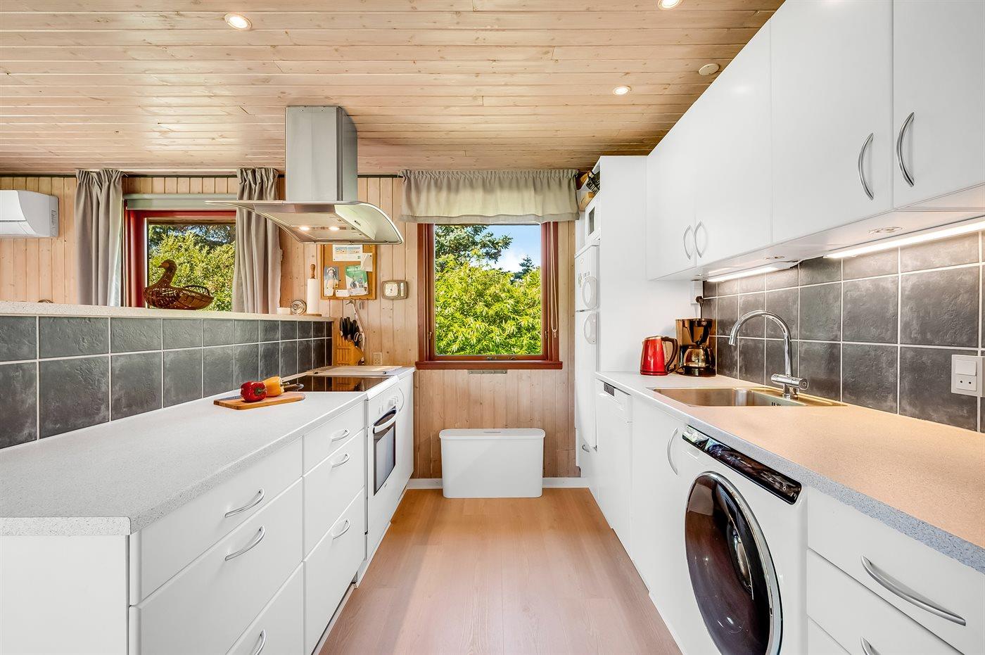 Køkkenet er udstyret med 1 køleskab. Der er 4 keramiske kogeplader, varmluftovn, mikrobølgeovn samt opvaskemaskine.