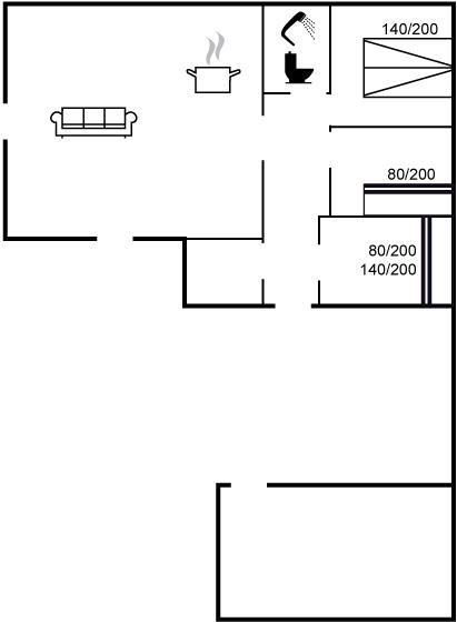 Der er i alt 3 soveværelser. Sovepladserne fordeler sig på: 2 sovepladser i dobbeltseng. 5 sovepladser i køjesenge. Derudover er der 1 stk. barneseng.