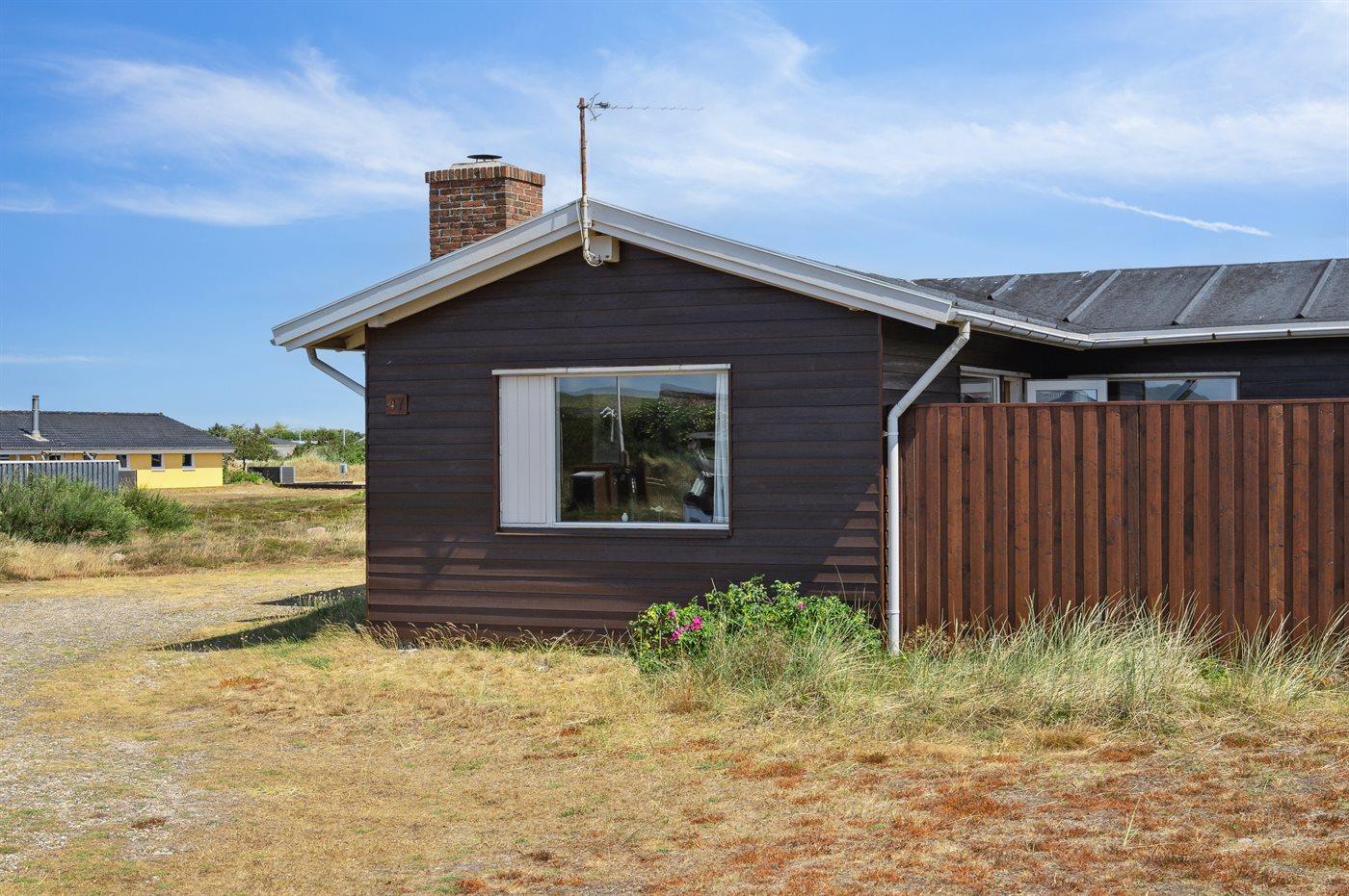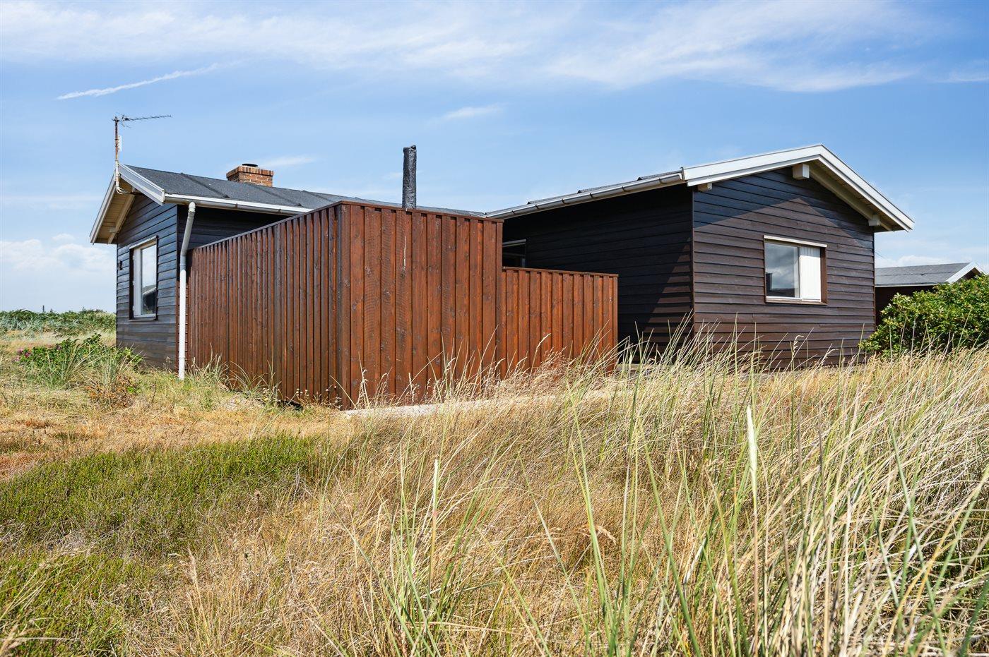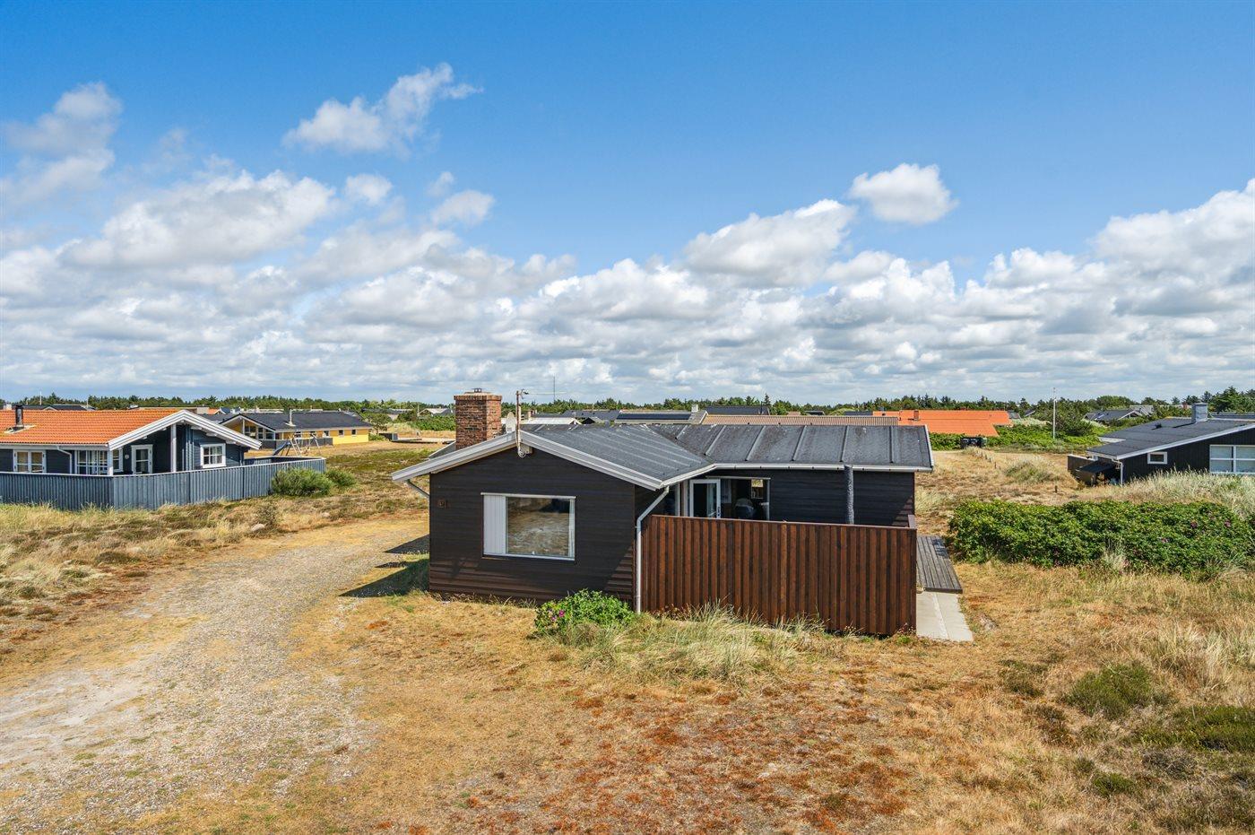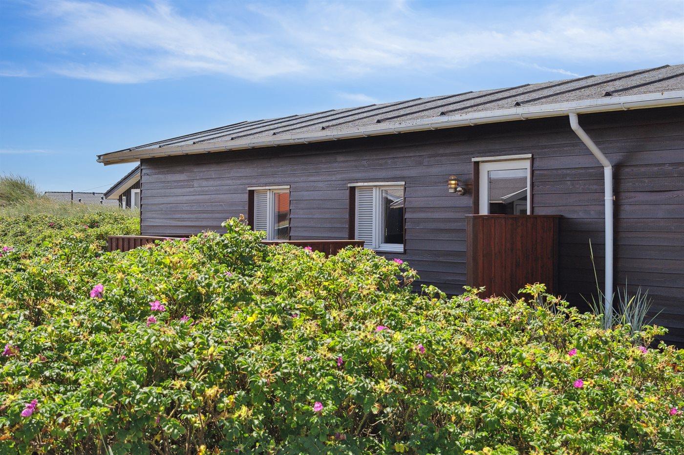 Dette bjælkesommerhus, bygget i 1984, ligger på en naturgrund kun 400 m fra havet. Til huset hører åben terrasse med havemøbler. Badeværelse med bruser. Køkkenet er bl.a. udstyret med opvaskemaskine. I opholdsstuen finder I DVD-afspiller og TV med parabol (digital). Husets sovepladser fordeler sig på 3 værelser; 1 med dobbeltseng og 2 med hver 2 enkeltsenge. Naturen omkring Bjerregård er både smuk og usædvanlig, idet området ligger ved såvel fjord som hav. Vandet omkring Bjerregård grænser op til fuglereservatet Tipperne. På alle tider af året indbyder den specielle natur på hele Holmsland Klit til vandreture og dejlige naturoplevelser.