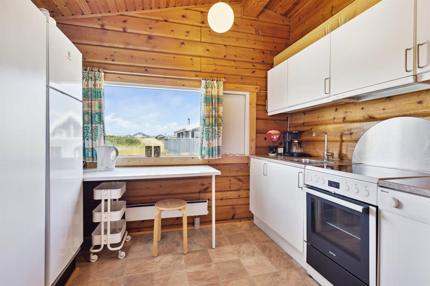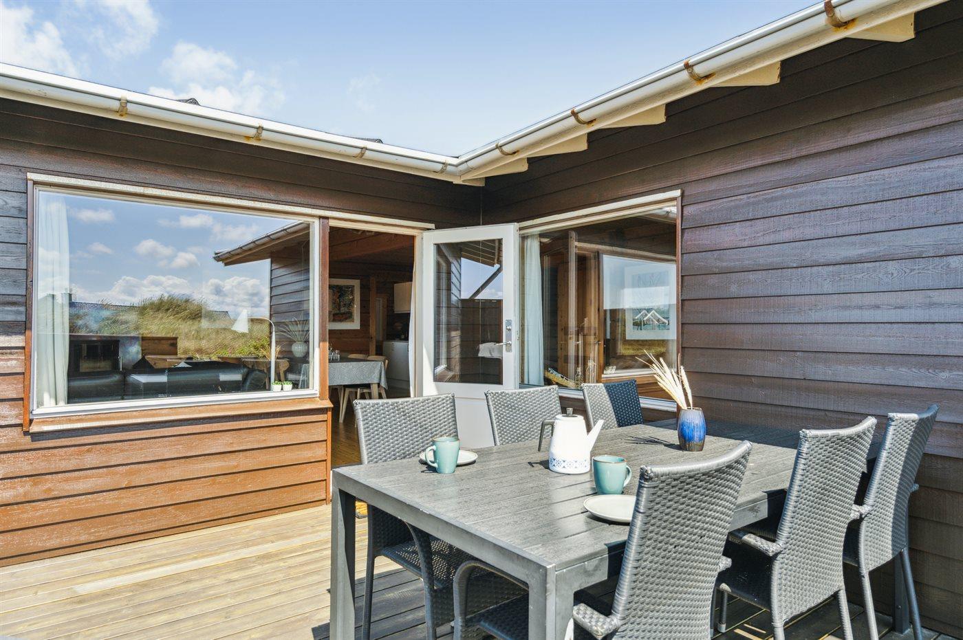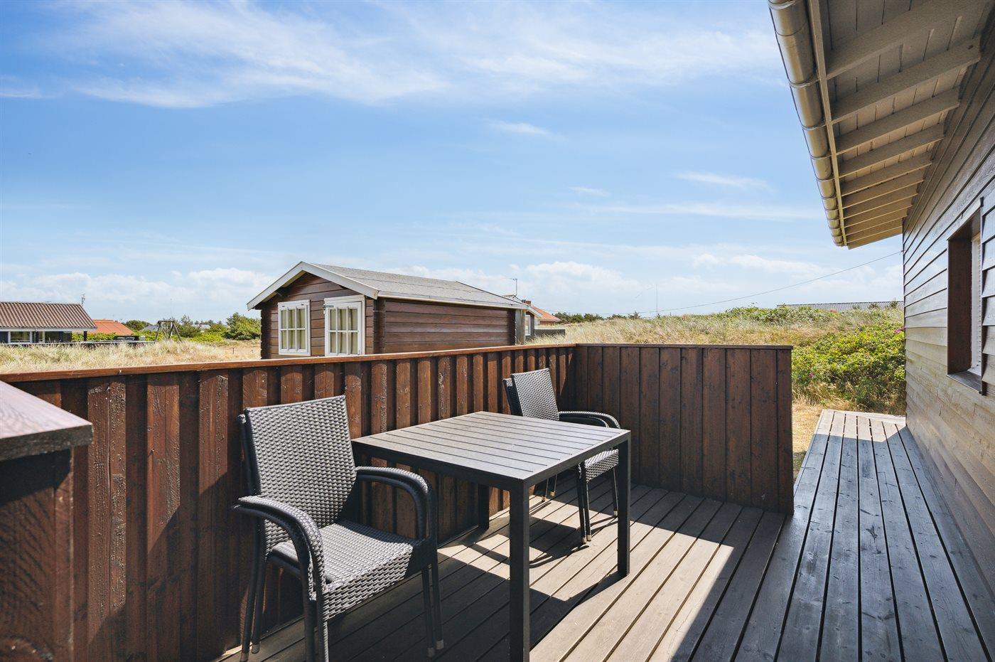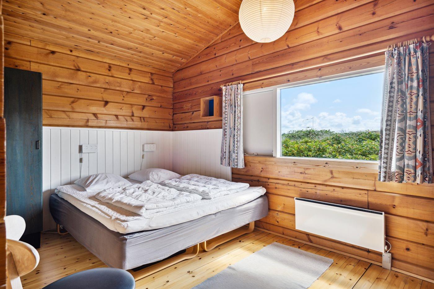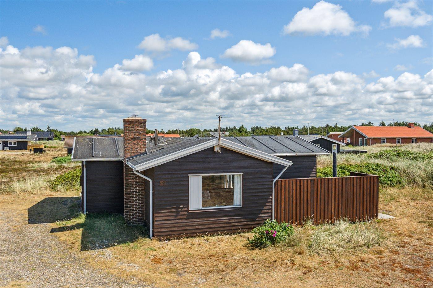Dette bjælkesommerhus, bygget i 1984, ligger på en naturgrund kun 400 m fra havet. Til huset hører åben terrasse med havemøbler. Badeværelse med bruser. Køkkenet er bl.a. udstyret med opvaskemaskine. I opholdsstuen finder I DVD-afspiller og TV med parabol (digital). Husets sovepladser fordeler sig på 3 værelser; 1 med dobbeltseng og 2 med hver 2 enkeltsenge. Naturen omkring Bjerregård er både smuk og usædvanlig, idet området ligger ved såvel fjord som hav. Vandet omkring Bjerregård grænser op til fuglereservatet Tipperne. På alle tider af året indbyder den specielle natur på hele Holmsland Klit til vandreture og dejlige naturoplevelser.