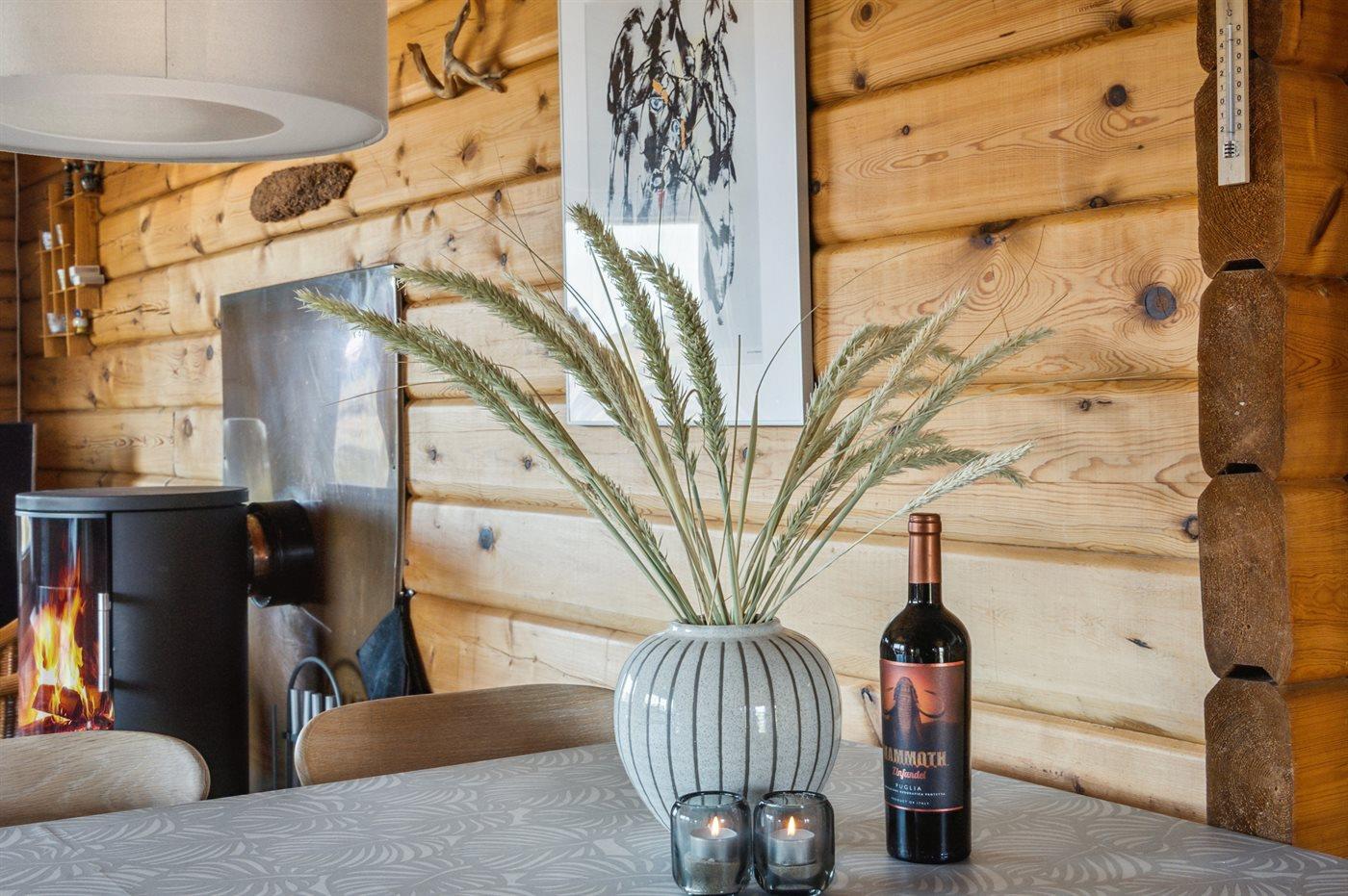 Charmerende bjælkesommerhus nær havet i smukke Bjerregård med terrasse og naturgrund.
