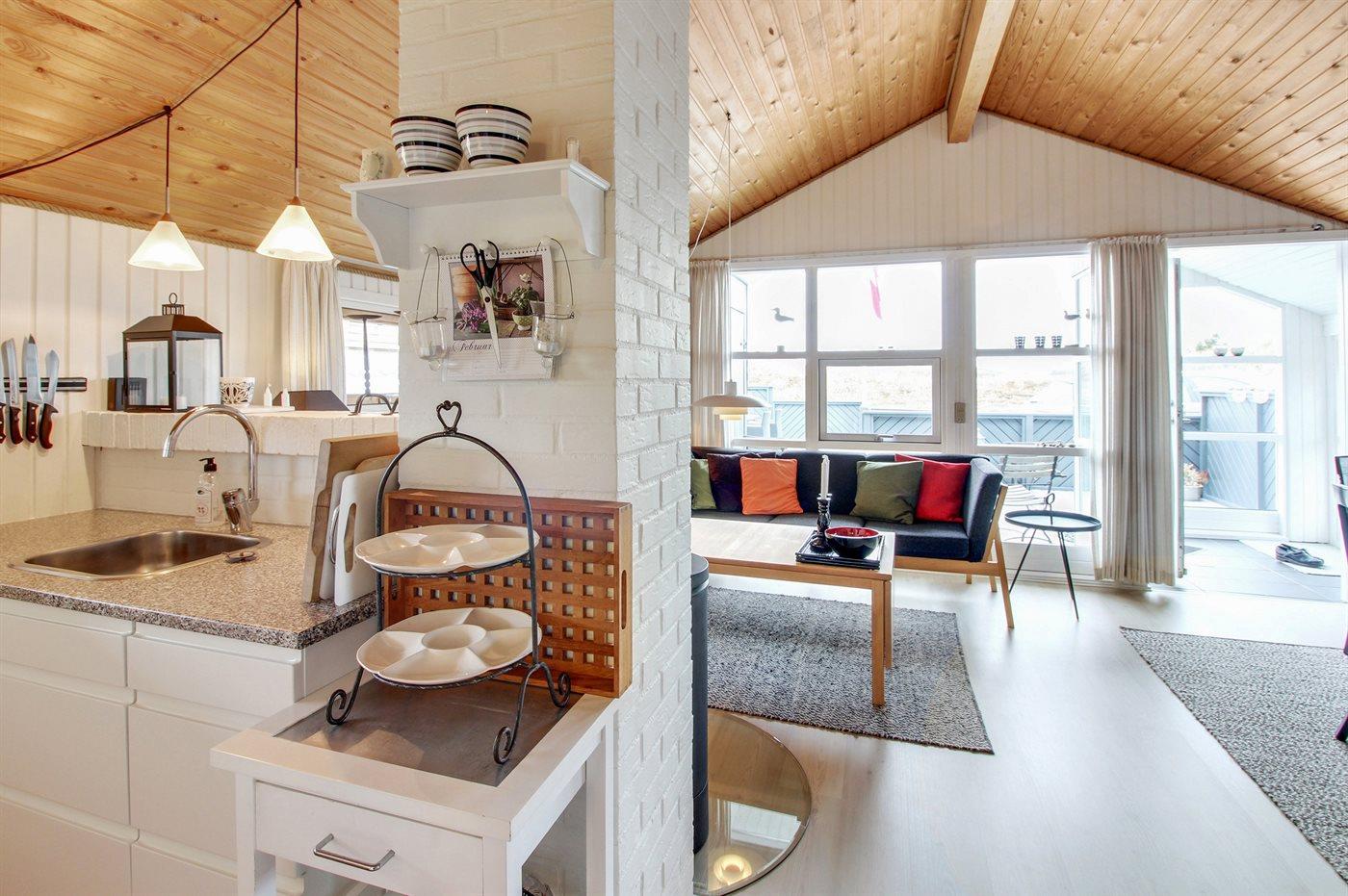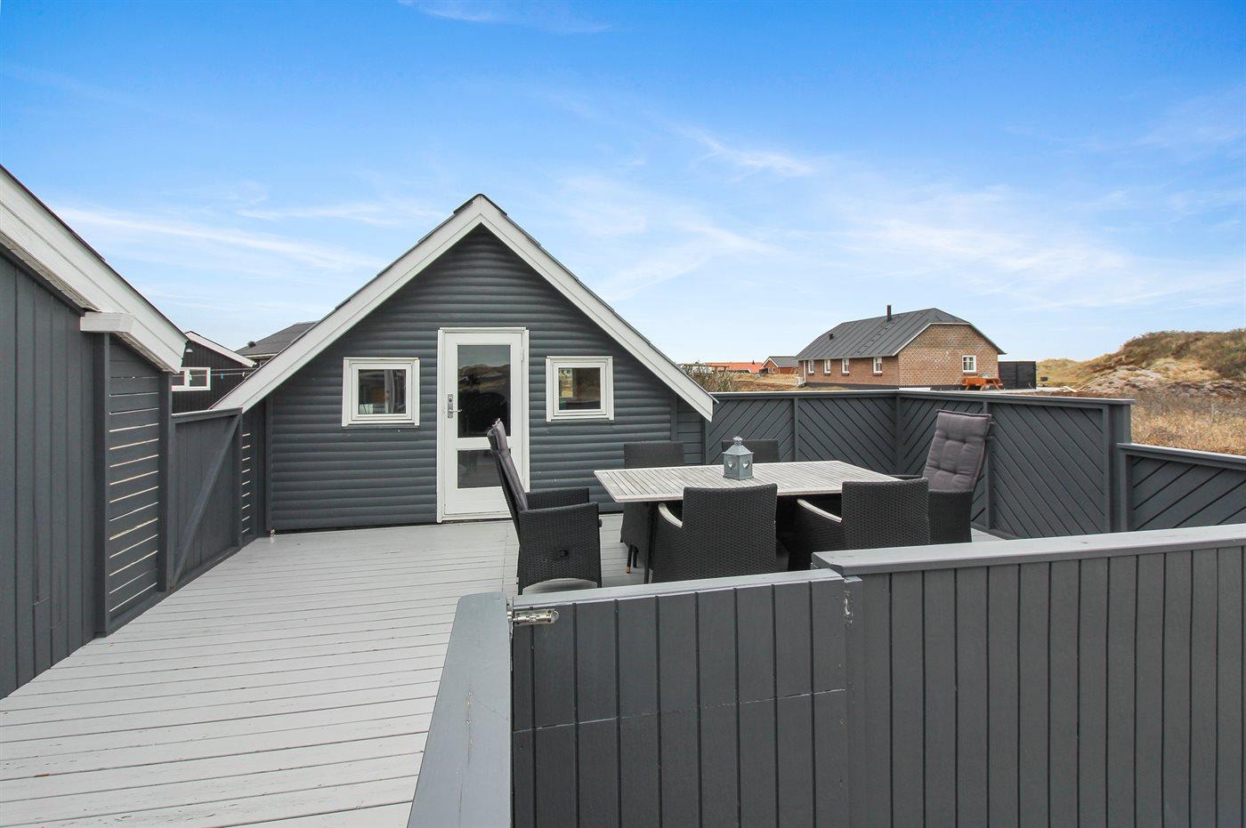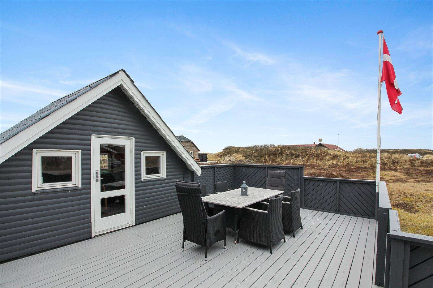 Kun et stenkast fra Vesterhavet ligger dette dejlige og hyggeligt indrettede sommerhus, med stor træbeklædt sydvendt terrasse.