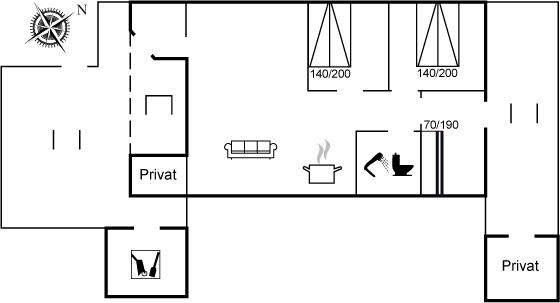 Der er i alt 3 soveværelser. Sovepladserne fordeler sig på: 4 sovepladser i dobbeltsenge. 2 sovepladser i køjeseng.