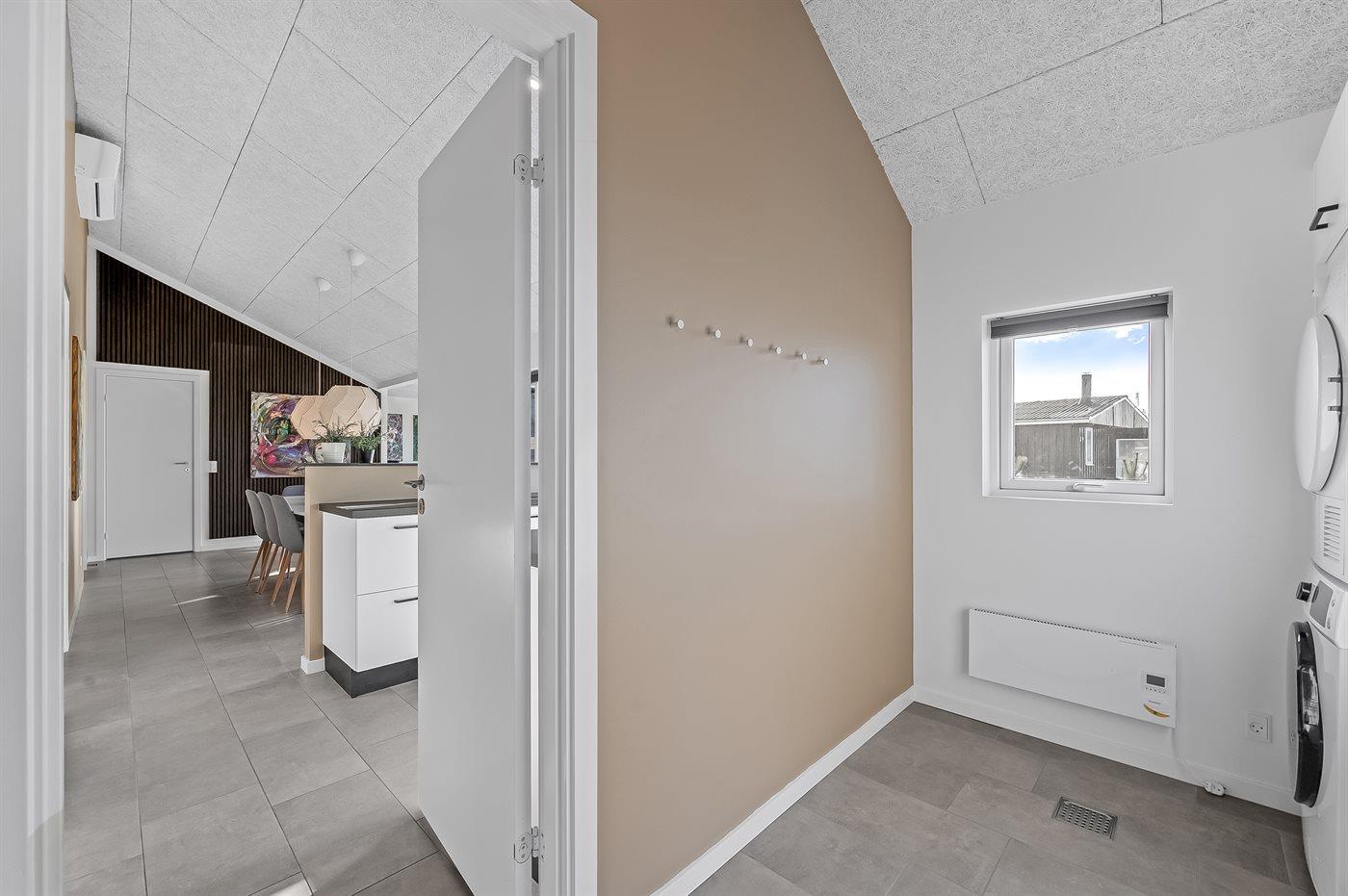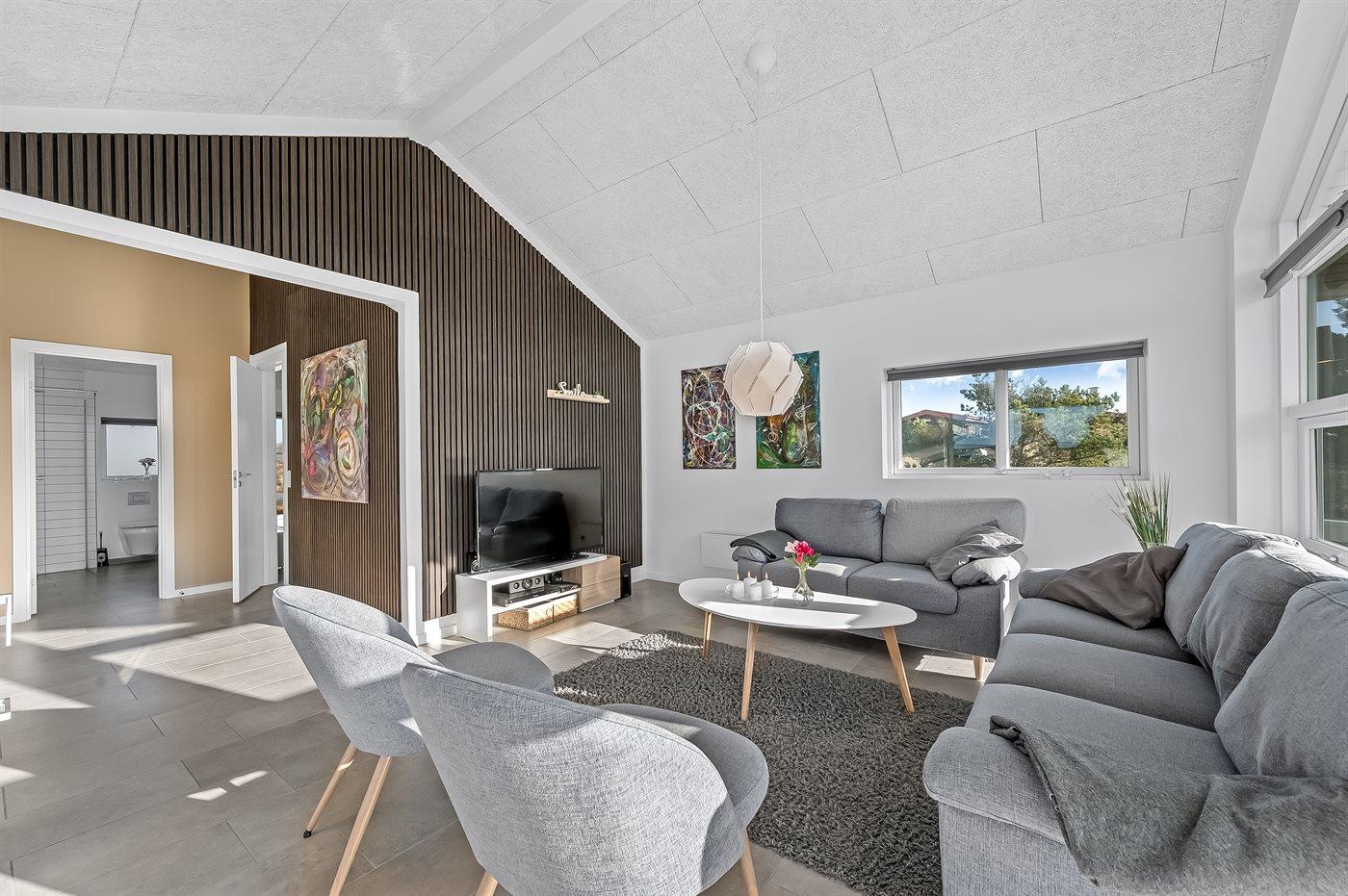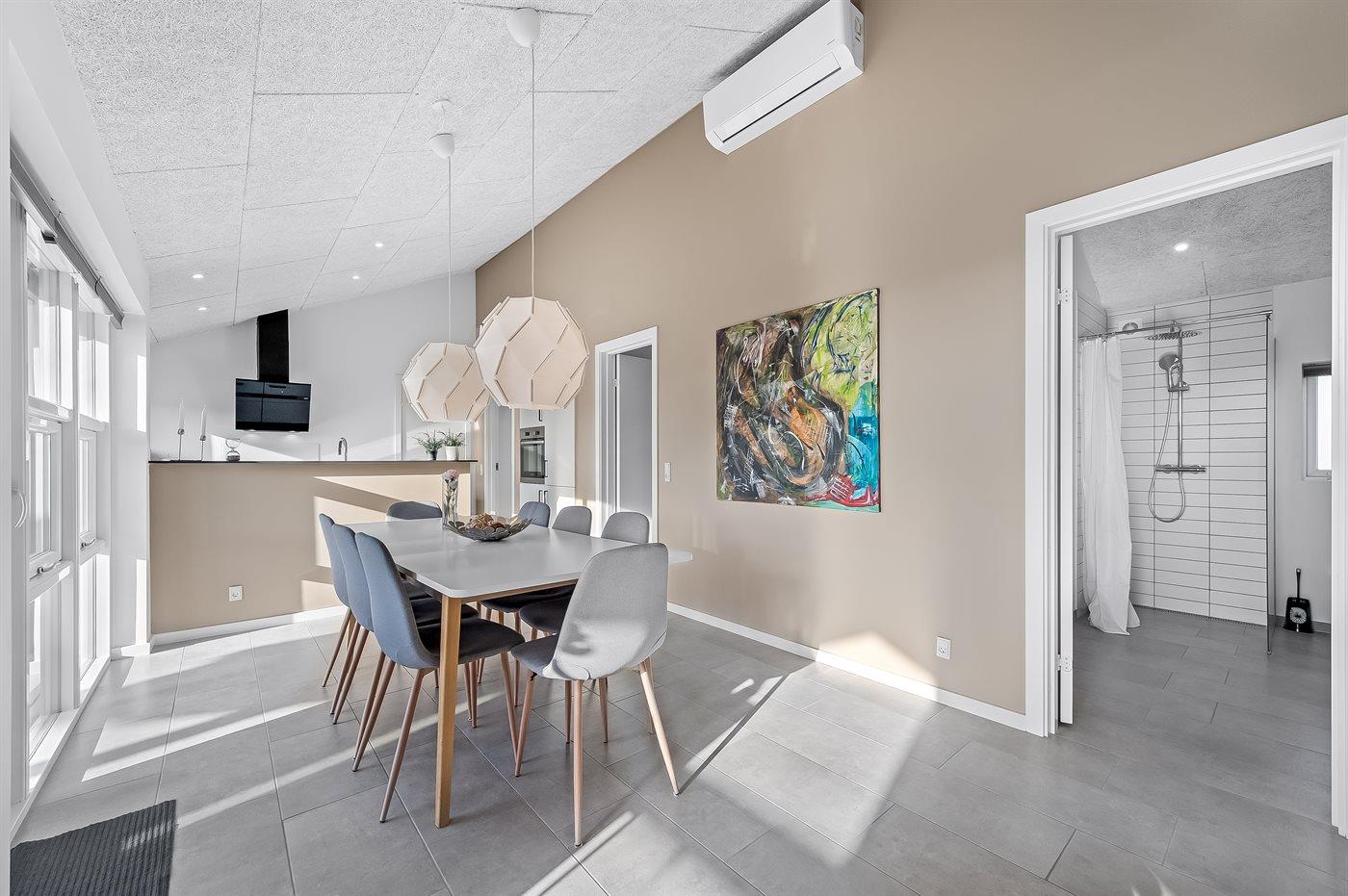 I dette skønne nybyggede (2019) sommerhus med god plads, er der gode muligheder for mange timers hygge. Huset ligger i rolige omgivelser mellem hav og fjord, og vil man være aktiv, byder det naturskønne område på mange vandre- og cykelruter. Huset er indrettet lyst og indbydende med adgang til hems, hvor 2 af sovepladserne befinder sig.