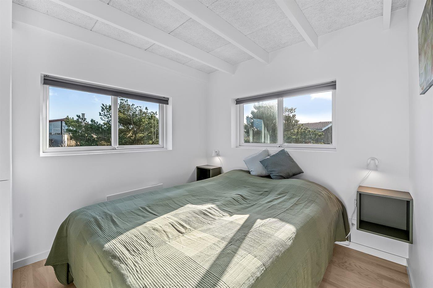 Der er i alt 3 soveværelser. Sovepladserne fordeler sig på: 6 sovepladser i dobbeltsenge. 2 sovepladser på madrasser. 2 af disse sovepladser befinder sig på husets hems. Derudover er der 1 stk. barneseng.