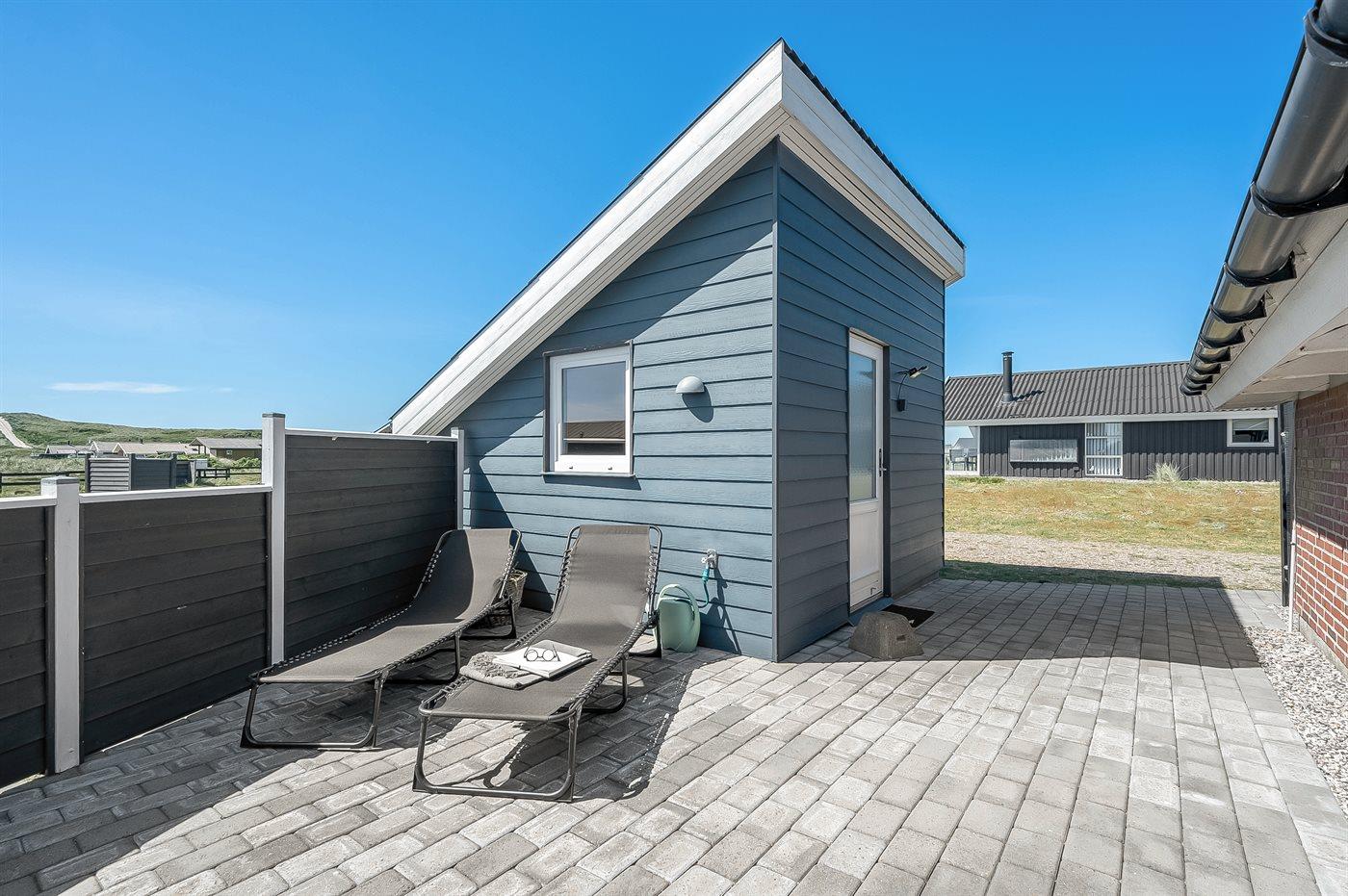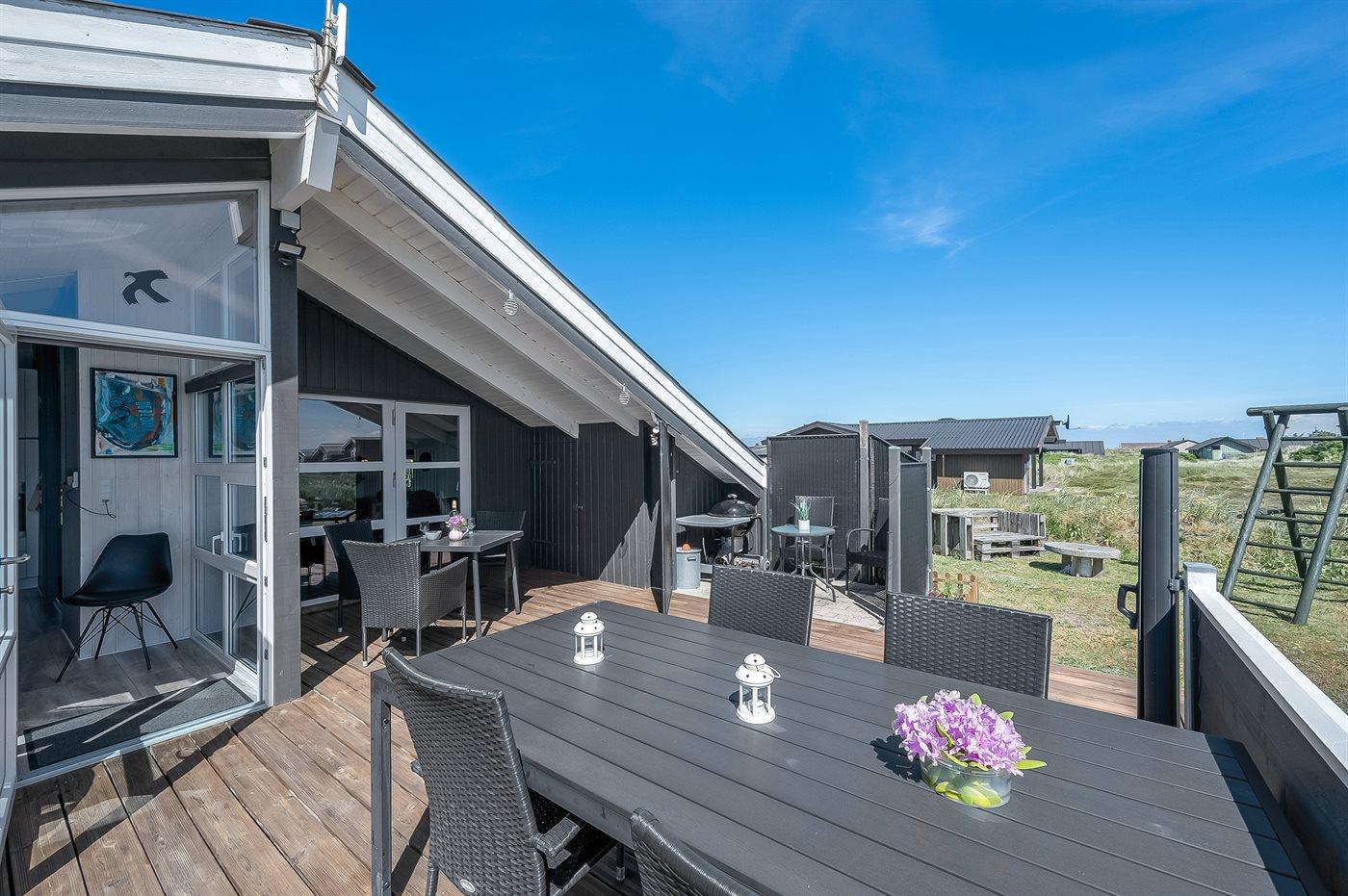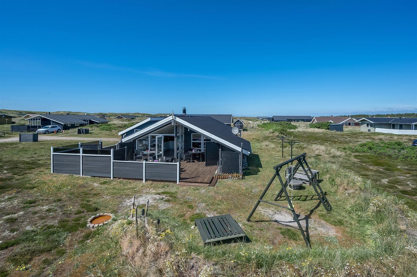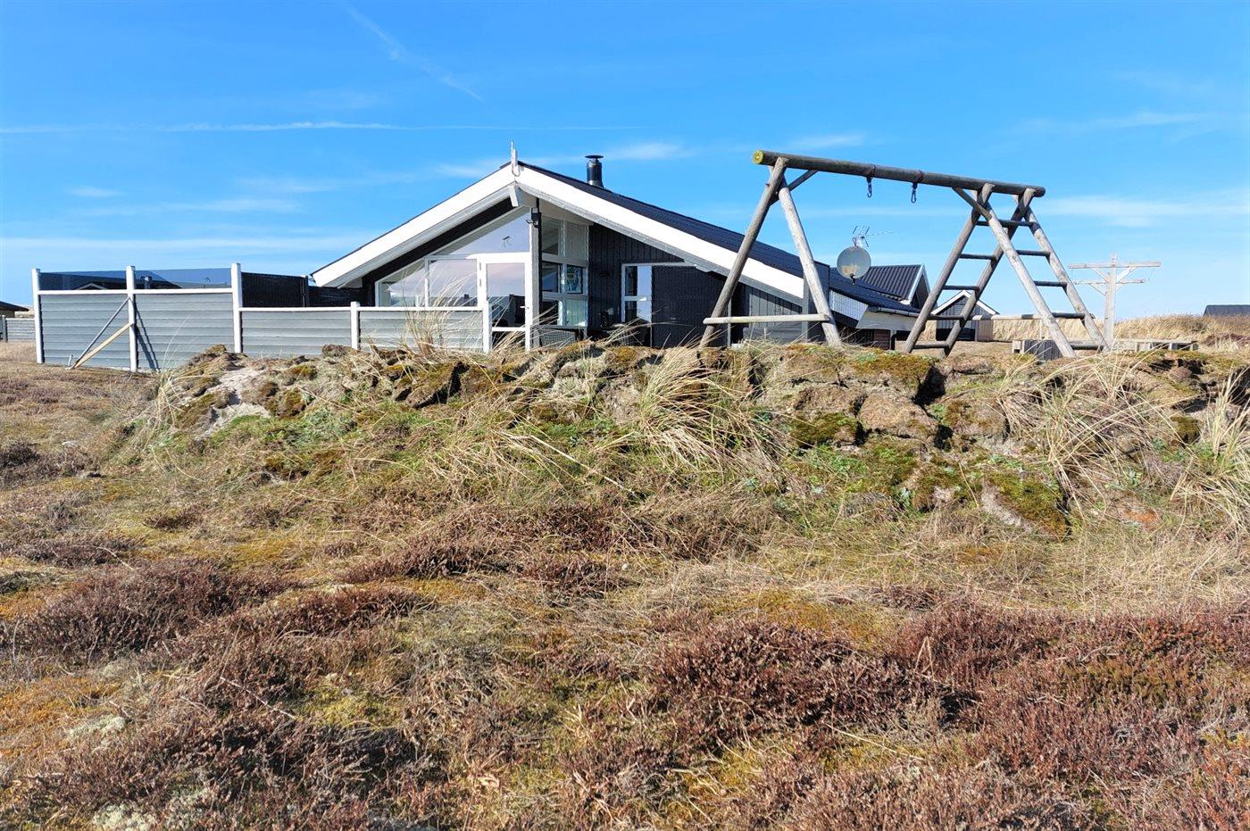 Dette hyggelige og velholdte sommerhus ligger kun 250 m fra Vesterhavet - på en åben naturgrund med udsigt til klitterne. Huset er det perfekte udgangspunkt for en god ferie, hvad enten I ønsker er at nyde stranden, klitterne eller den på alle årstider fascinerende natur. Sommerhuset er moderne indrettet med en lys stue og pænt køkken i åben forbindelse med hinanden, og direkte udgang til en stor, dejlig terrasse med havemøbler og grill. Foruden 2 dejlige og lyse soveværelser findes der 2 sovepladser i en alkove i opholdsstuen.