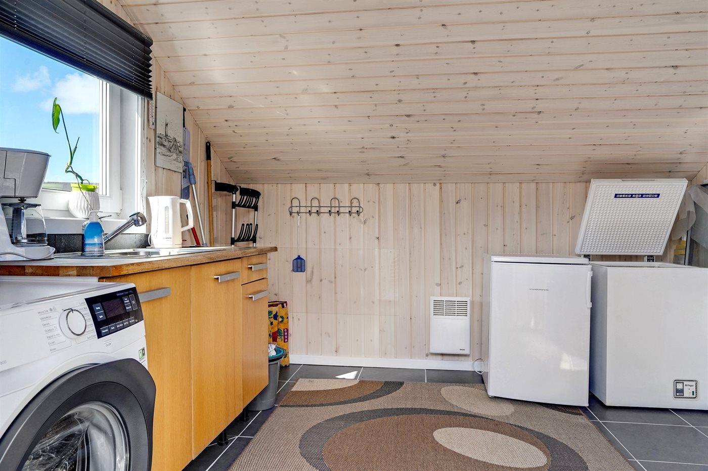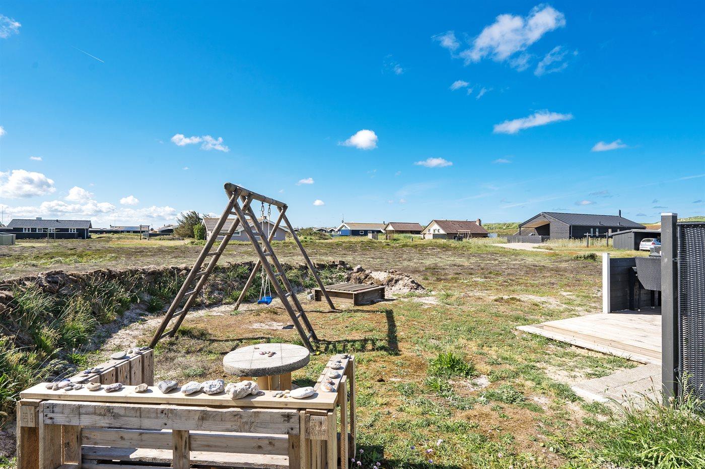 Ferieboligen er beliggende på en 1201 m² stor naturgrund. Der er 250 m til havet. Der er 550 m til fjorden. Nærmeste forretning er beliggende i en afstand af 2000 m. Til ferieboligen hører 60 m² terrasseareal. Desuden er der 7 m² overdækket terrasse. Der findes redskabsrum med fiskerenseplads. Gynge. Sandkasse. Grill til rådighed. Der er installeret lader til opladning af elbil. Parkering ved ferieboligen.