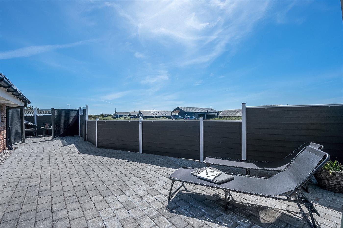 Hyggeligt sommerhus tæt på Vesterhavet med stor terrasse, naturgrund og moderne faciliteter til en afslappende ferie.