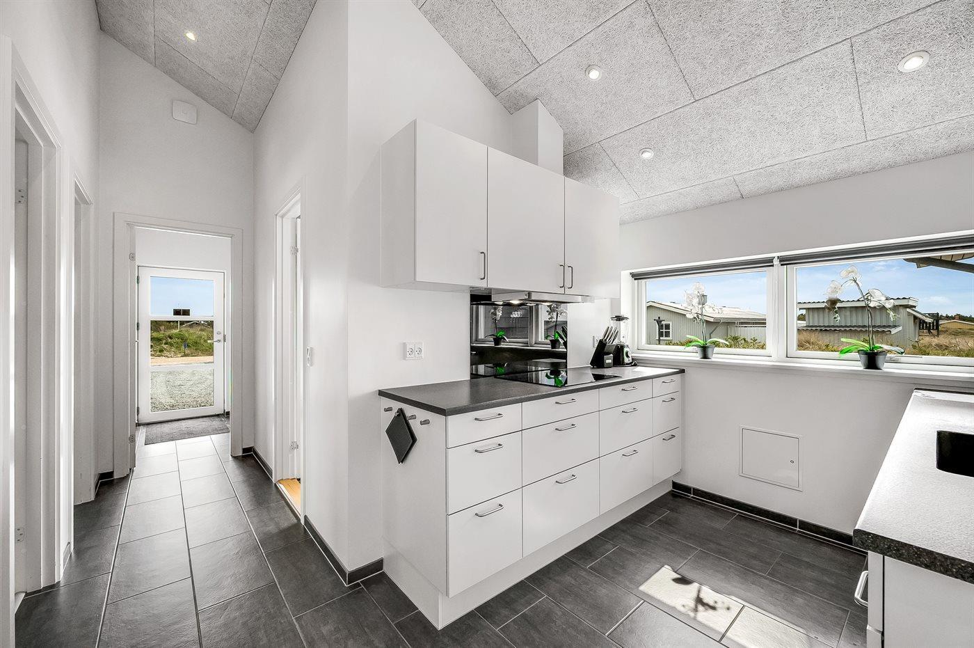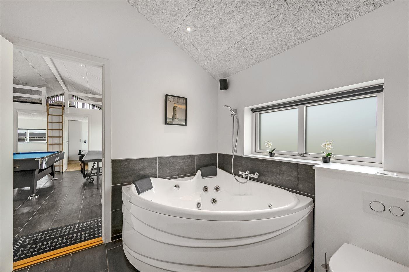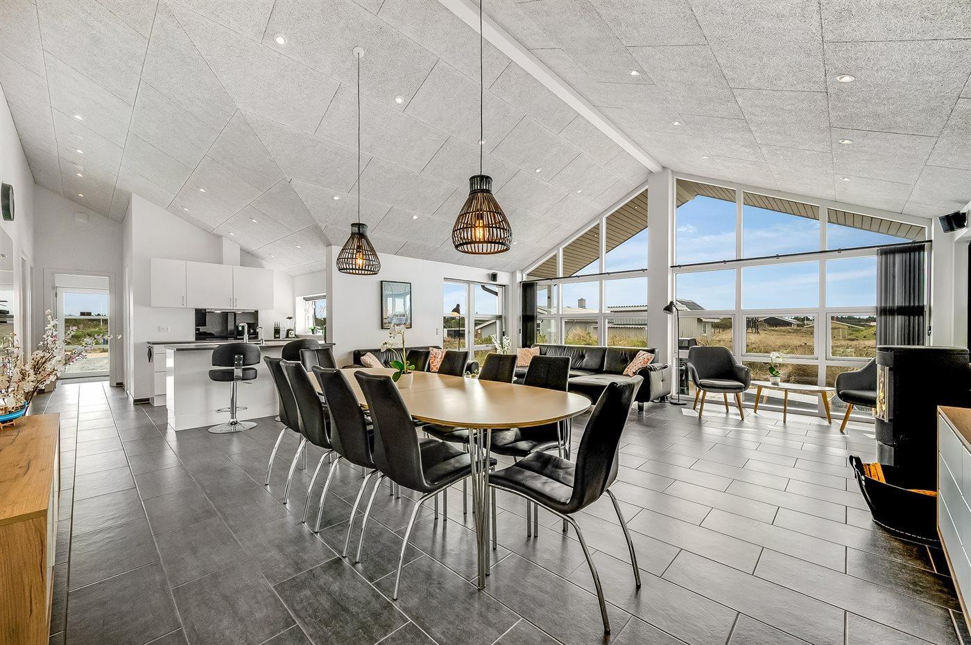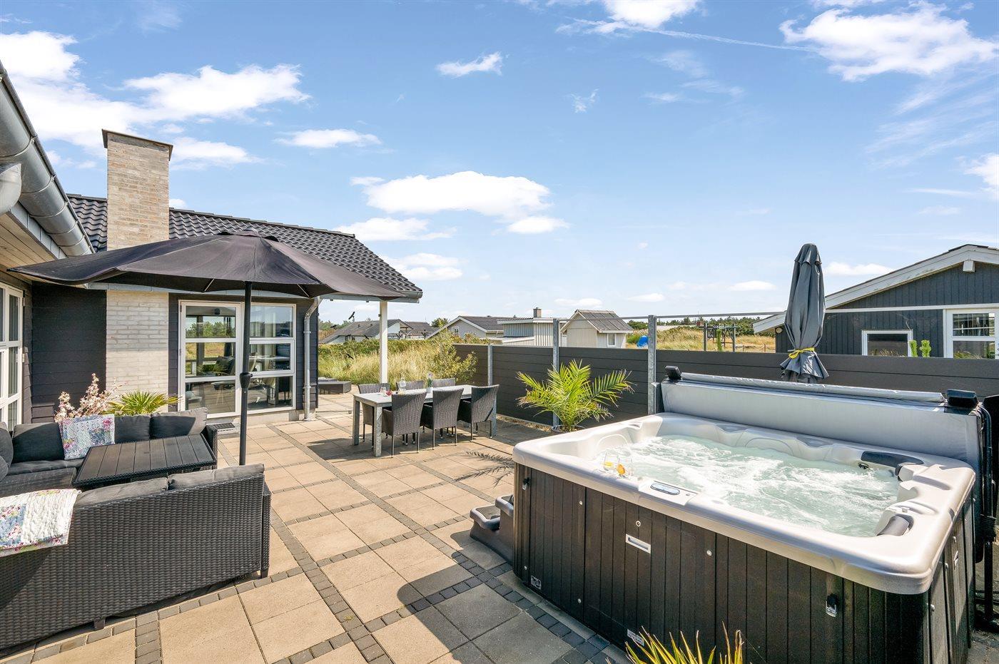Et flot, nybygget aktivitetshus med en central beliggenhed i Bjerregaard. Her kan man nemt finde hyggen frem samtidig med, at man kan nyde den luksus som kun et nybygget sommerhus kan byde på. Lad børnene tage et spil bordfodbold bag lukkede døre i husets aktivitetsrum samtidig med at I nyder et glas vin i husets flotte opholdsstue - så er der voksen- og børnetid på selv samme tid. Huset ligger nær Vesterhavet og man fornemmer den helt specielle atmosfære, der er ved at bo i et hus nær kysten. Er man til den aktive ferie er der gode muligheder for at vandre eller cykle på naturstien, der snor sig gennem klitterne og sommerhusområderne helt fra Bjerregård til Søndervig.