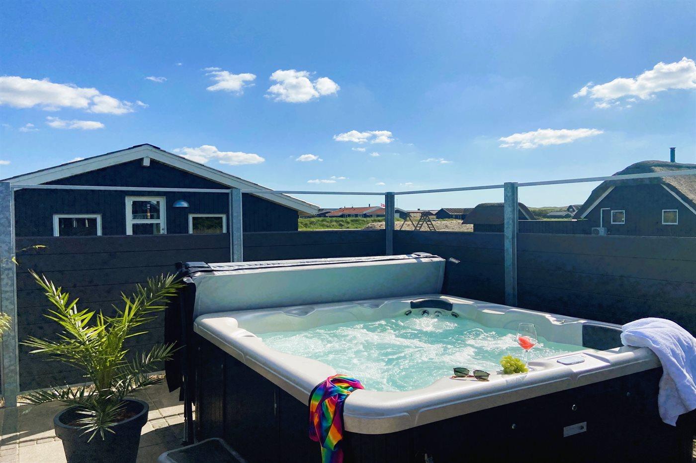 Der er mulighed for afslapning i indendørs spa til 2 personer. Der er mulighed for afslapning i udendørs standvandsspa til 6 personer.
