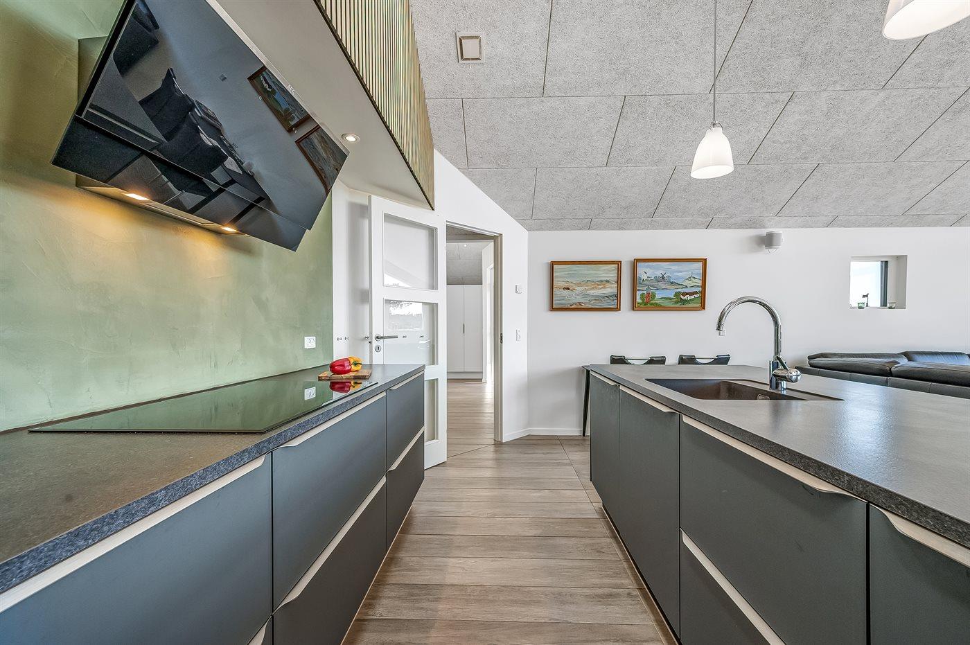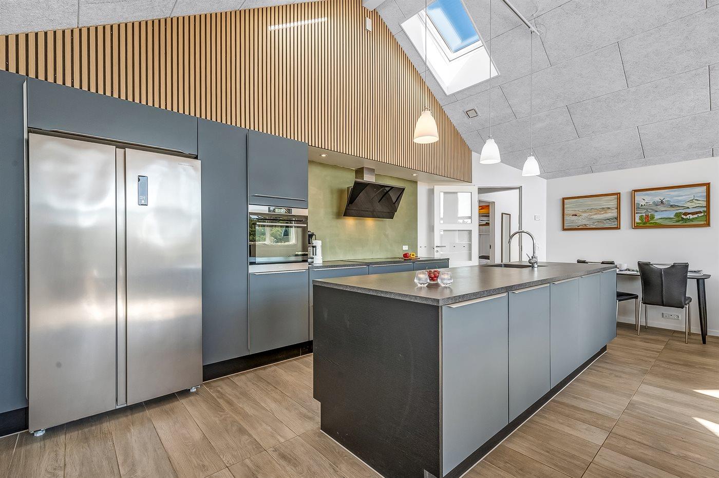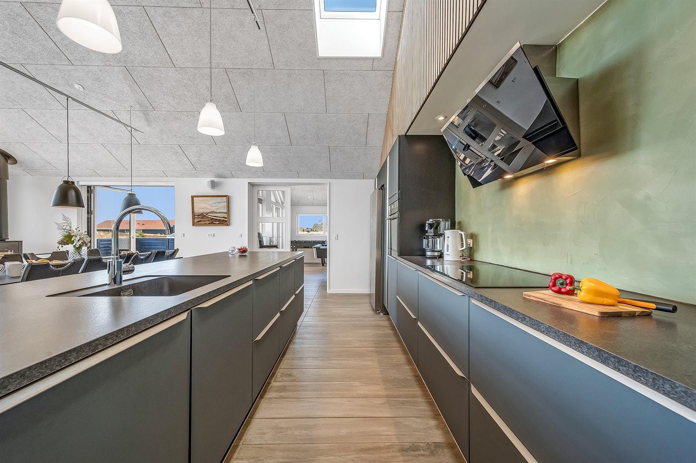 Køkkenet er udstyret med 1 amerikansk køleskab. Der er 4 induktionskogeplader, varmluftovn, mikrobølgeovn samt opvaskemaskine.