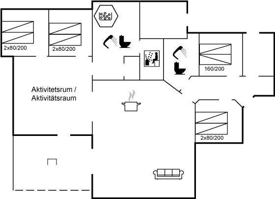Der er i alt 4 soveværelser. Sovepladserne fordeler sig på: 8 sovepladser i dobbeltsenge. Derudover er der 1 stk. barneseng.