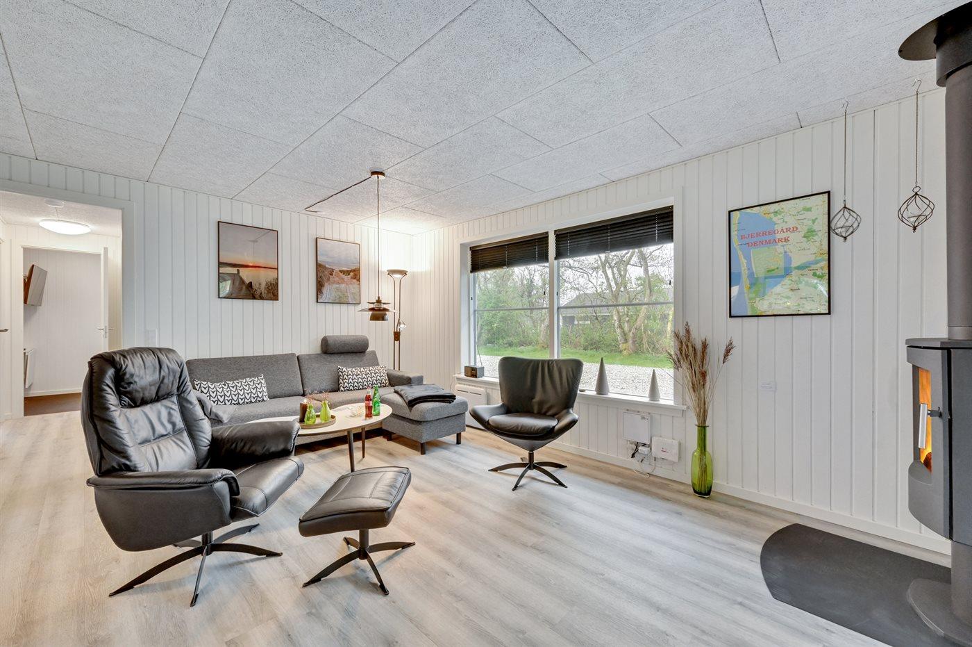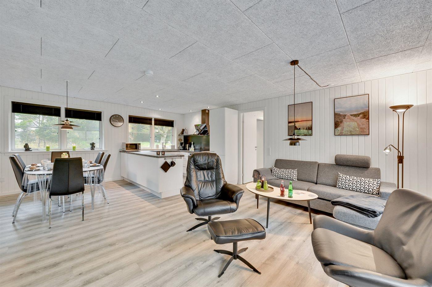 Totalrenoveret sommerhus nær hav og fjord med moderne faciliteter og stor naturgrund.