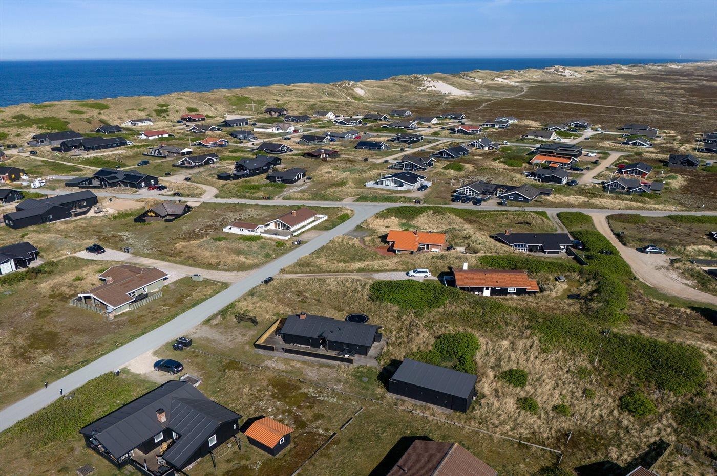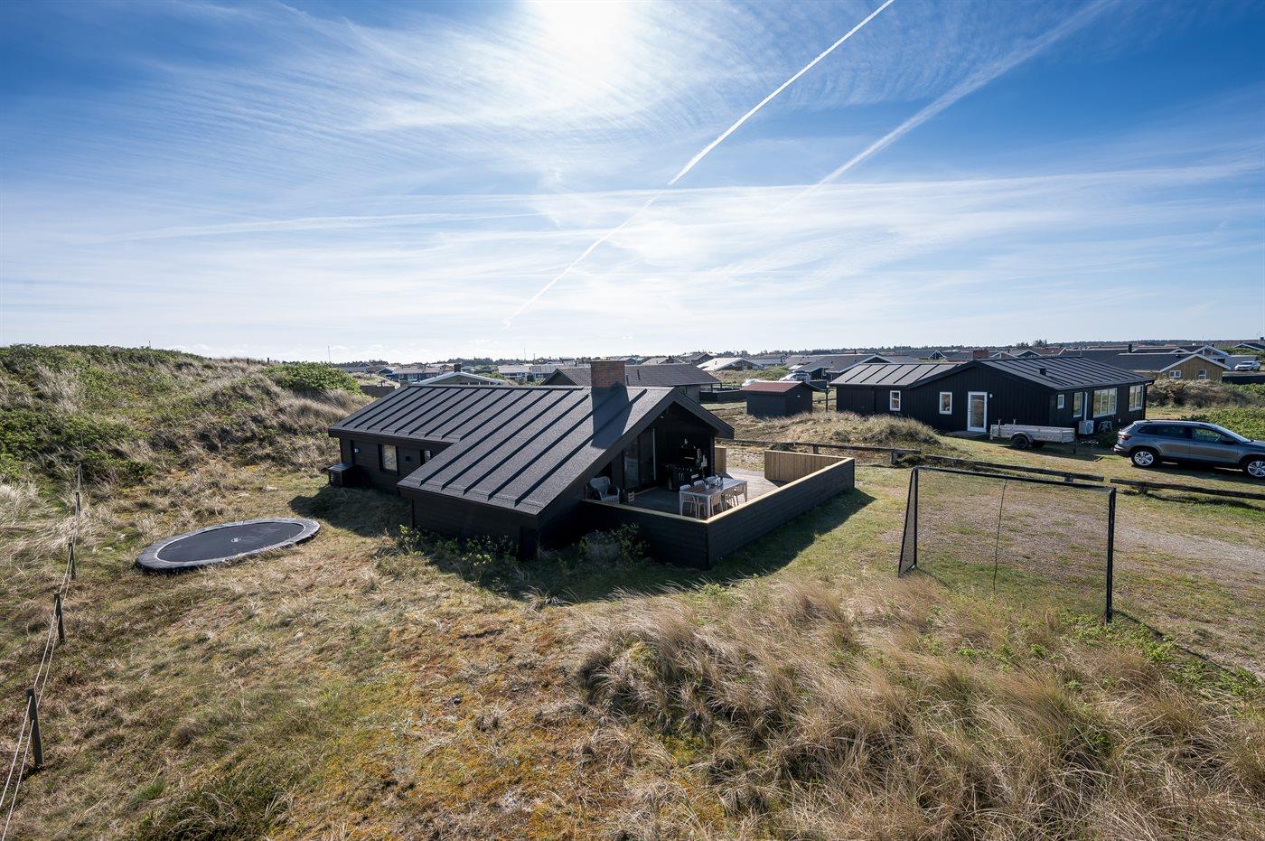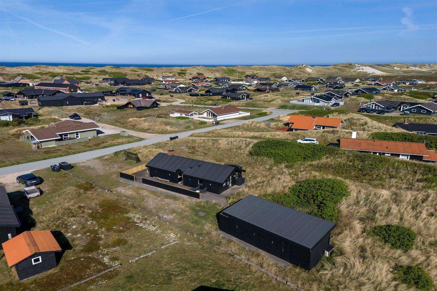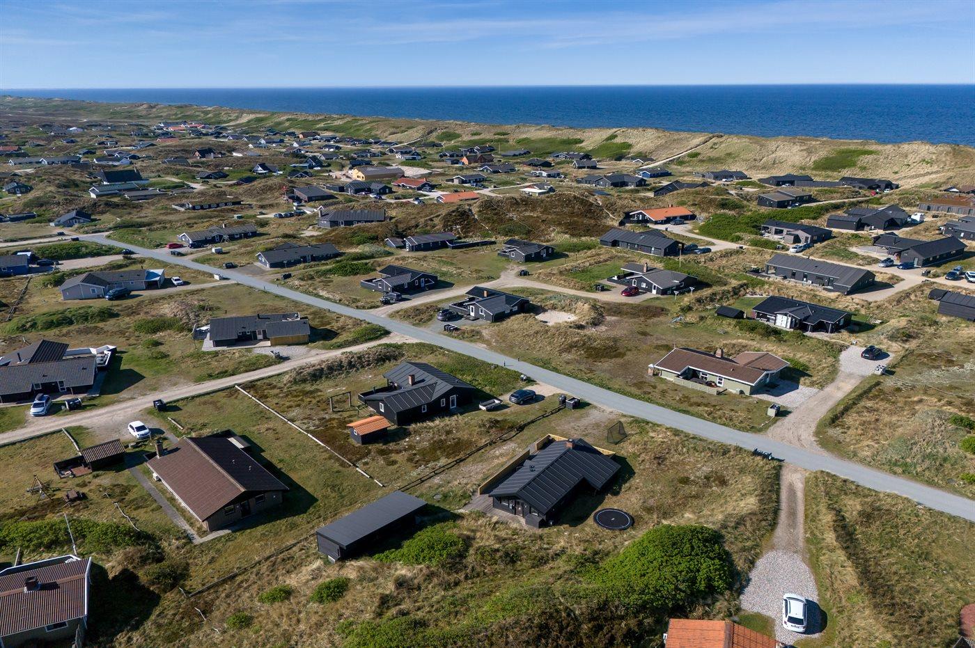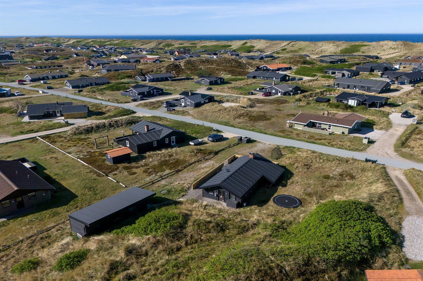 Sommerhuset ligger flot placeret i klitlandskabet, og du vil fornemme den helt specielle atmosfære, der er ved at bo i et hus nær Vesterhavet. Den hyggelige fiskerby Hvide Sande ligger en kort køretur derfra, og her kan du købe friske fisk, nyde en dejlig frokost eller gå på shopping i de små butikker. Er du mere til den aktive ferie, er der gode muligheder for at vandre, løbe eller cykle på natur-cykelstier, der snor sig gennem klitterne og sommerhusområderne. Området er desuden meget kendt for sine gode surf-muligheder både ved Vesterhavet, men også ved Ringkøbing Fjord.