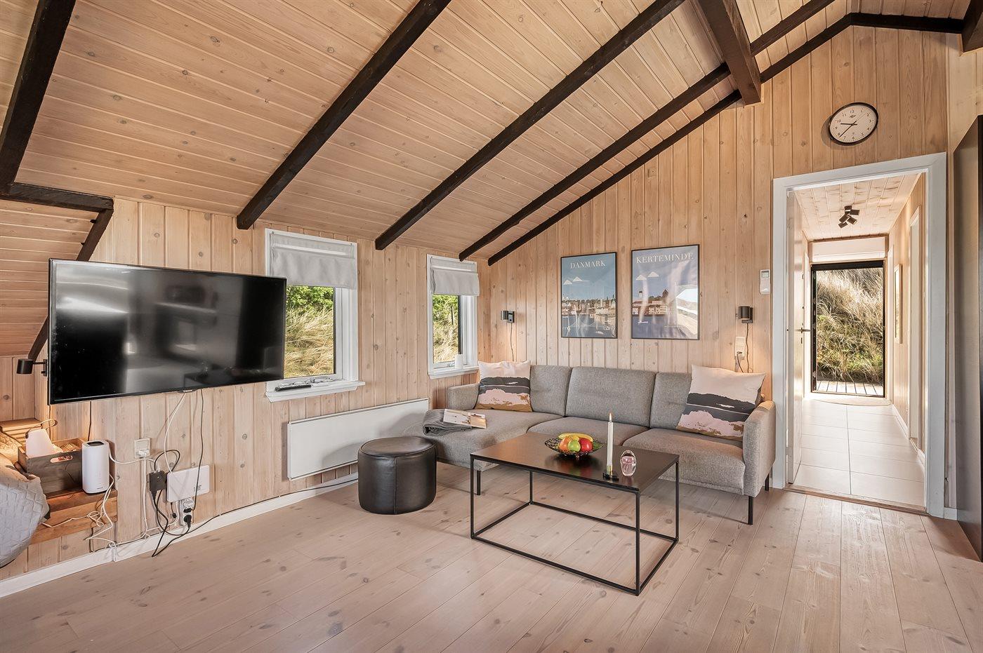 Nyrenoveret sommerhus i Bjerregård med skandinavisk design tæt på Vesterhavet og natur.