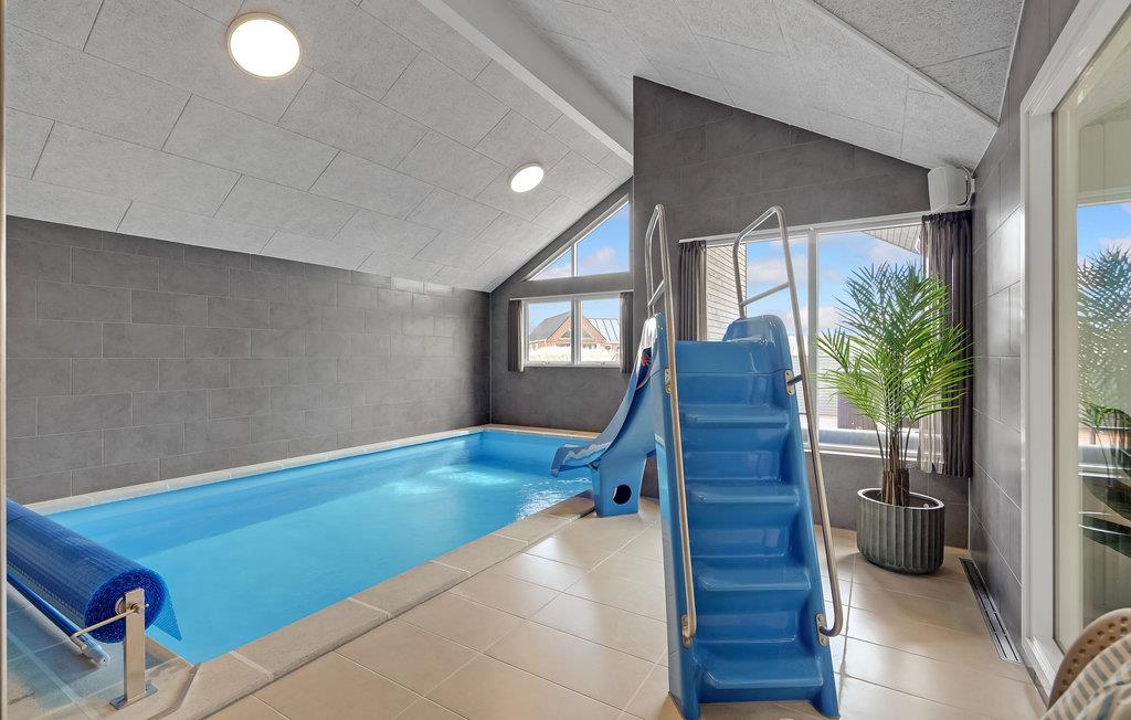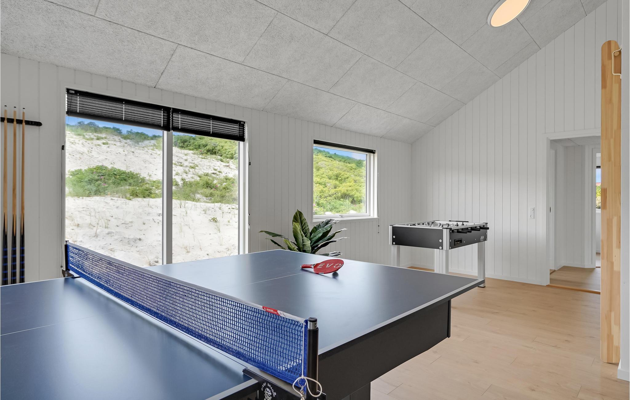 Luksuriøst poolhus ved Vesterhavet med sauna, boblebad og aktivitetsrum nær Hvide Sande klitter.