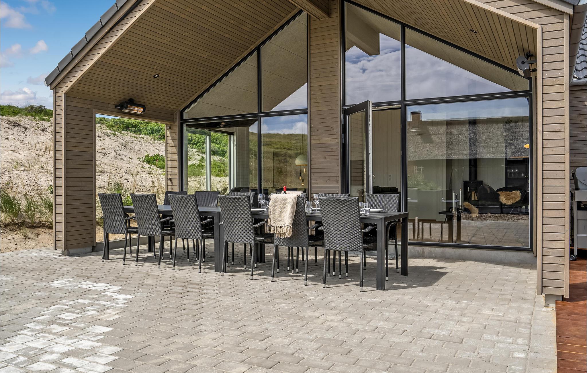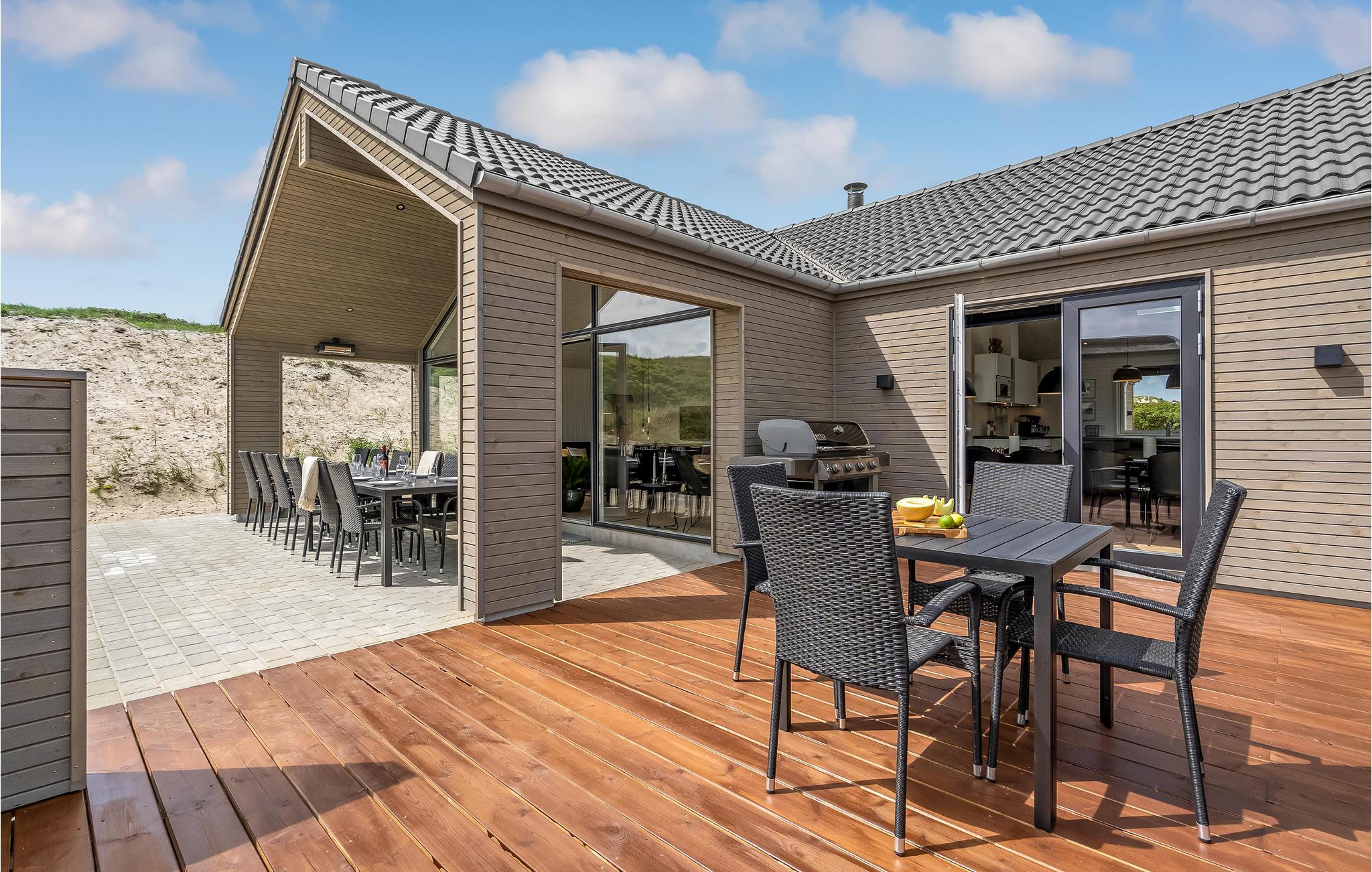 På vestkysten syd for Hvide Sande finder I dette luksuriøse feriehus kun 100 m fra Vesterhavet. Det moderne hus tilbyder veludstyrede værelser af høj kvalitet og en række komfortable og familievenlige faciliteter, der vil tilfredsstille selv de mest krævende gæster.