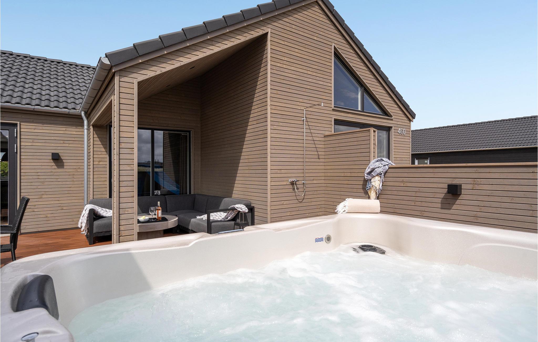 Ikke kun indendørs, men også udendørs imponerer huset med gennemtænkte løsninger. Tilbring hyggelige sommeraftener i et af de smukke hjørner på den store terrasse, og slut dagen af i boblebadet. Efter en efterårstur i den friske luft kan I varme jer i den udendørs sauna med udsigt over klitterne.