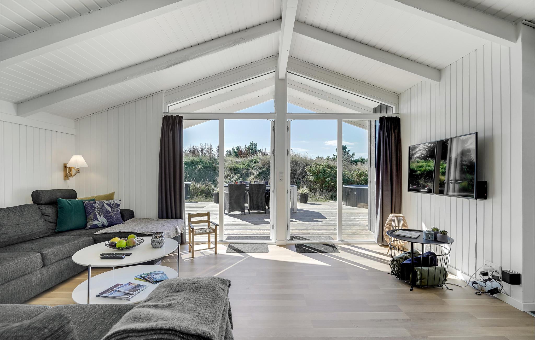 Nyd en afslappende ferie i et lyst feriehus med sauna, vildmarksbad og stor terrasse i Bjerregård.