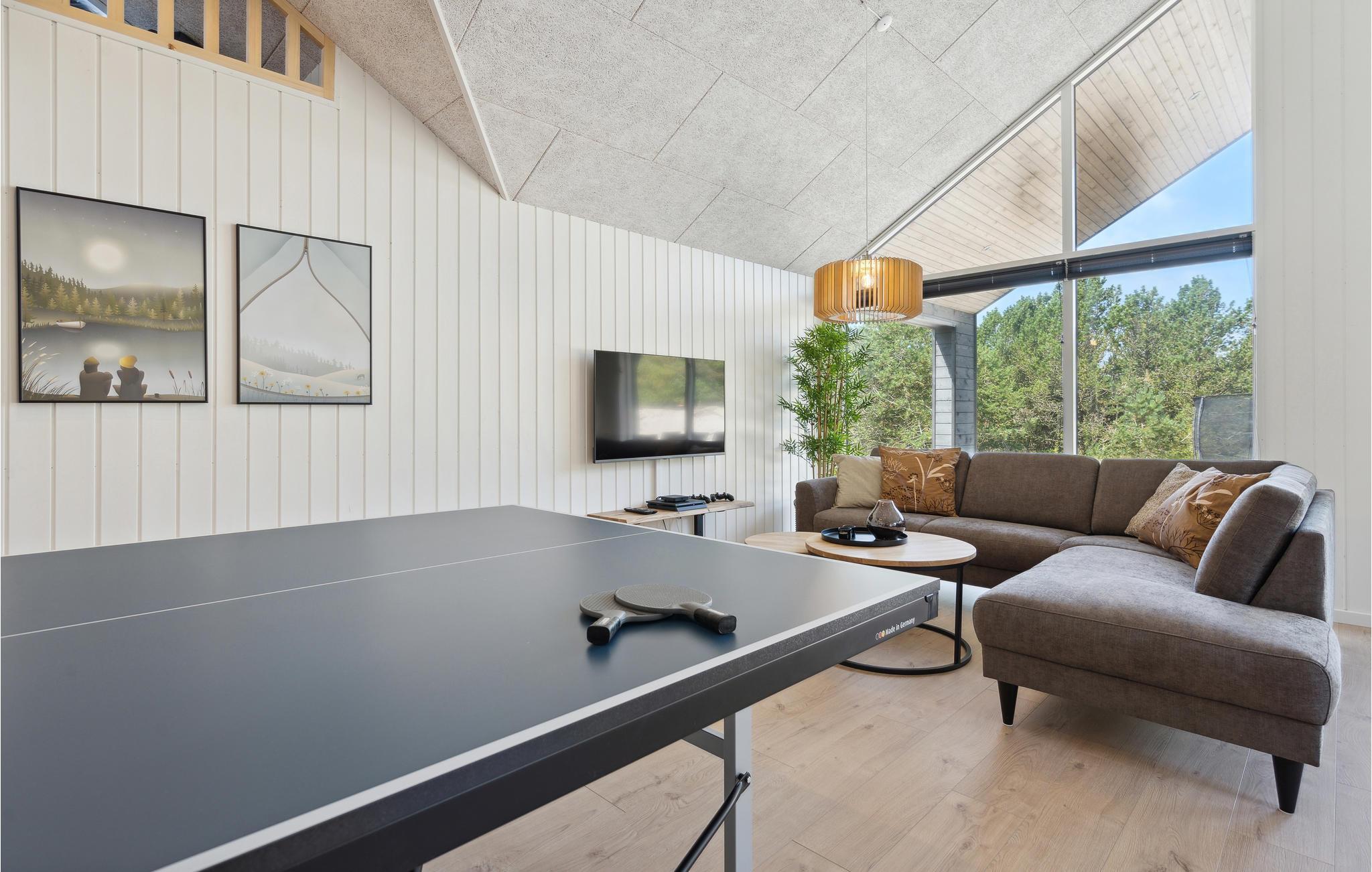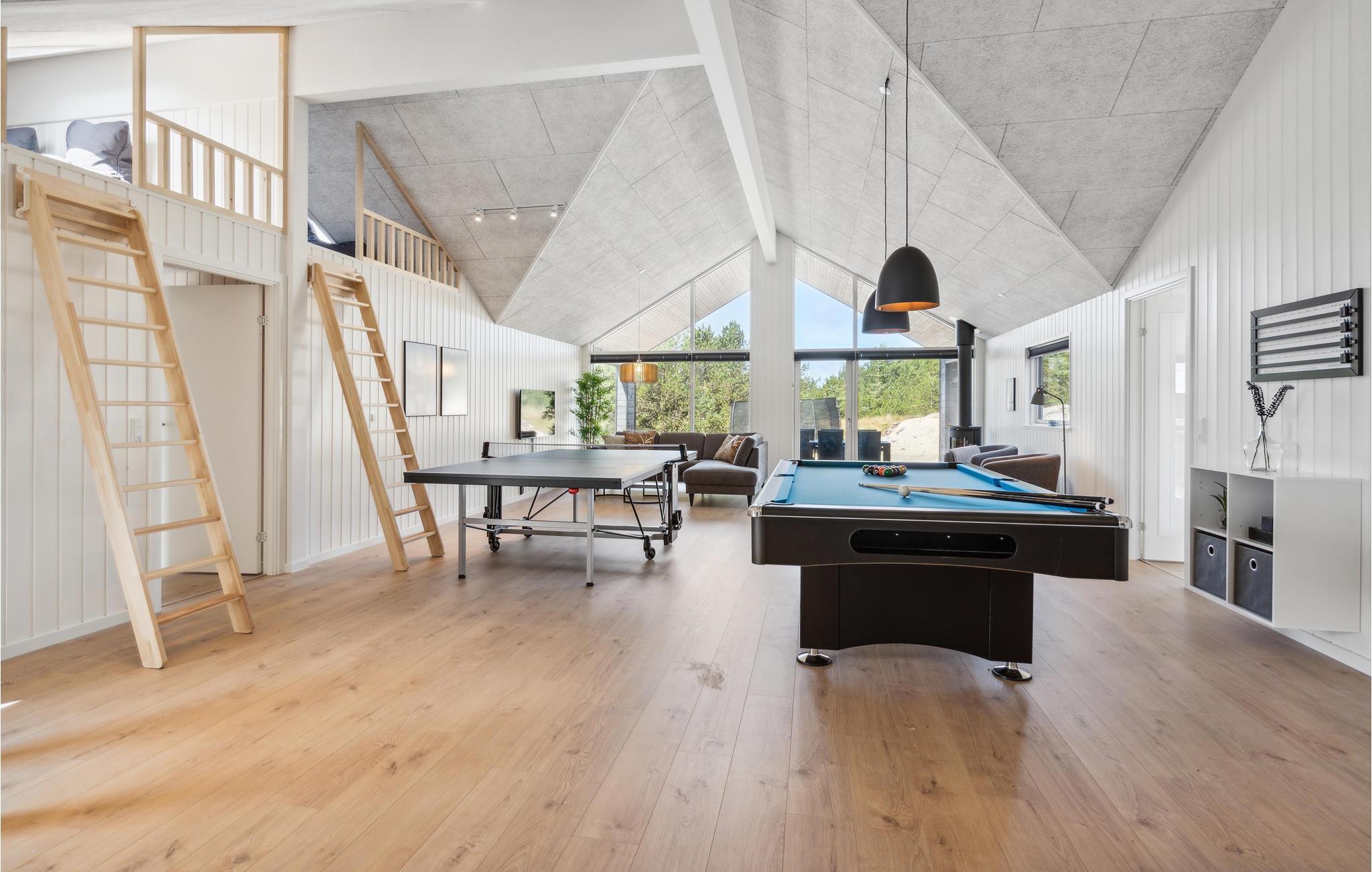 Mellem Vesterhavet og Ringkøbing Fjord ligger dette veludstyrede sommerhus, som lægger op til en fantastisk ferie. Her er der god plads til flere familier eller en større rejsegruppe. Boligen er lys og moderne med lækre indretningsløsninger, der gør jeres ophold ekstra behageligt. Glæd jer til mange timers sjov svømning i poolområdet, snup et spil bordtennis eller billard i aktivitetsrummet og gør senere madlavningen til et fællesprojekt i det stilfulde køkken. Efter en lang gåtur i den friske luft er det skønt at få varmen i saunaen eller spabadet. Og om aftenen kan I gøre jer det super behageligt i sofaen ved den hyggelige brændeovn.