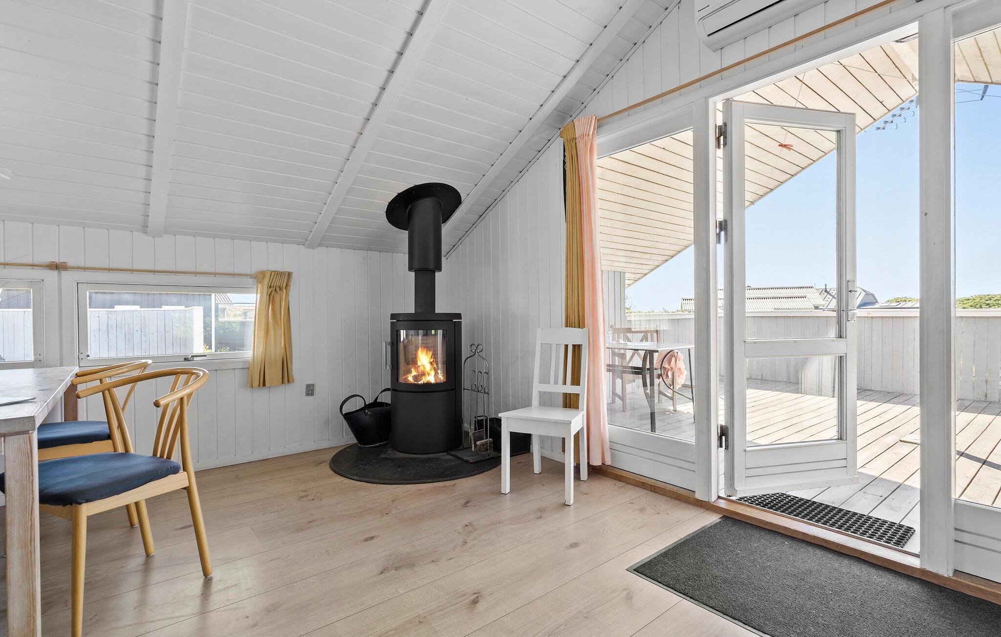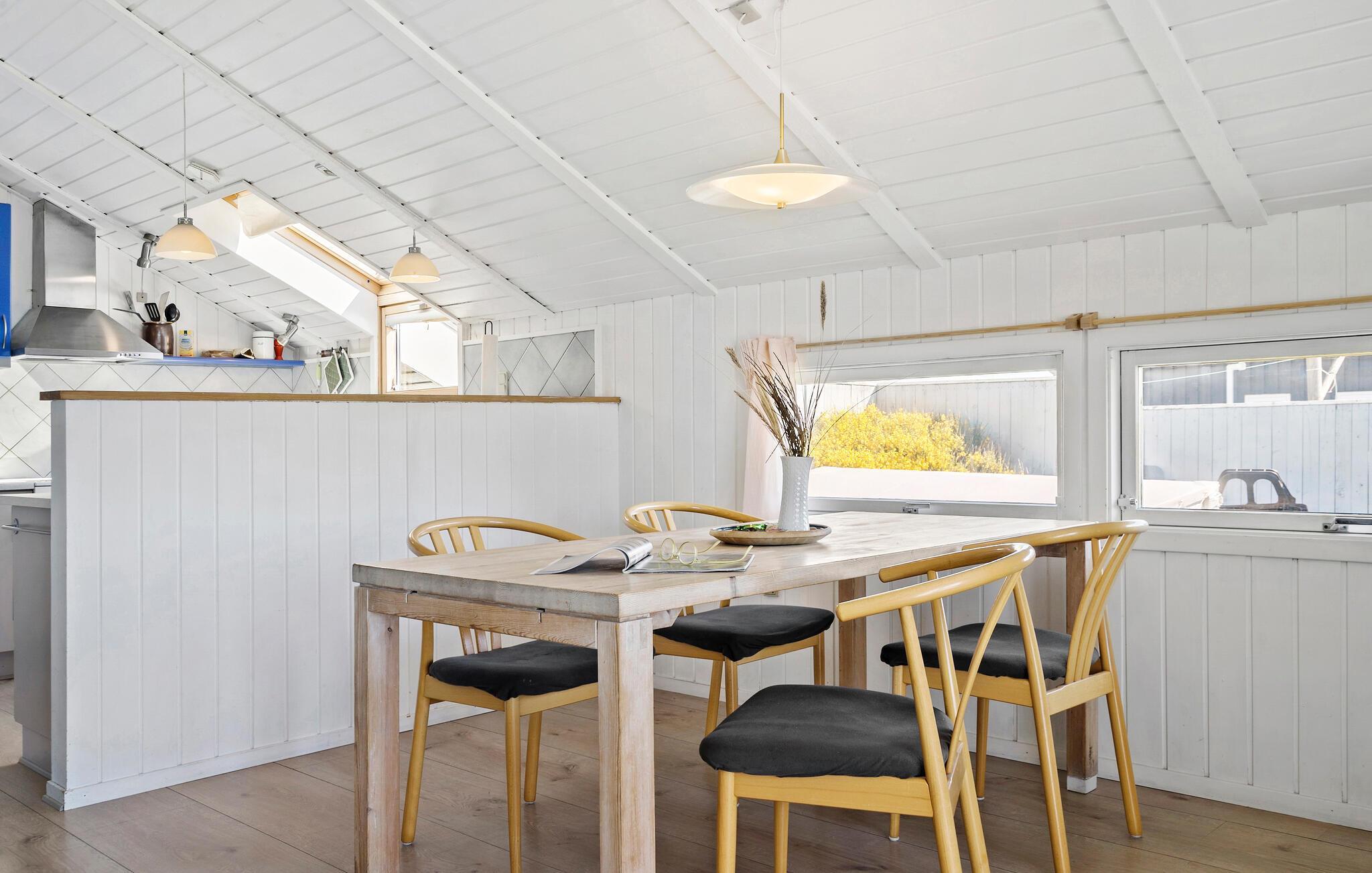 Et hyggeligt og velholdt feriehus med en dejlig beliggenhed kun 300 meter fra Vesterhavet! Stuen er komfortabelt og smagfuldt indrettet. Et rigtig hyggeligt hus i dejlige og rolige omgivelser. Dette område er meget populært hos alle der vil surfe (eller kitesurfe), dyrke lystfiskeri eller bare nyde den brede strand ud til det brusende Vesterhav, som forandrer farve med lysets skiften på himlen. Noget ganske særligt er den fascinerende solnedgang, som kan ses dag efter dag, for ikke to er ens. Her er rige muligheder for at købe fisk og skaldyr, hvis ikke lystfiskeren har held med sig.
