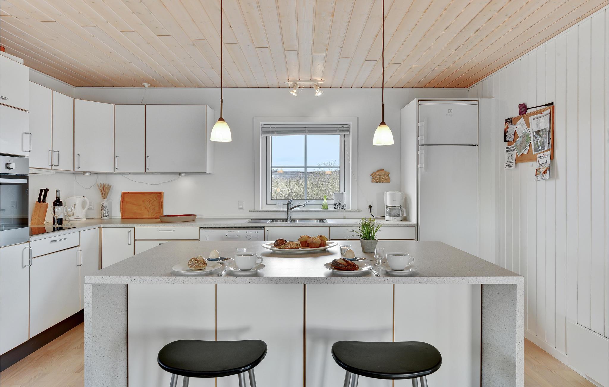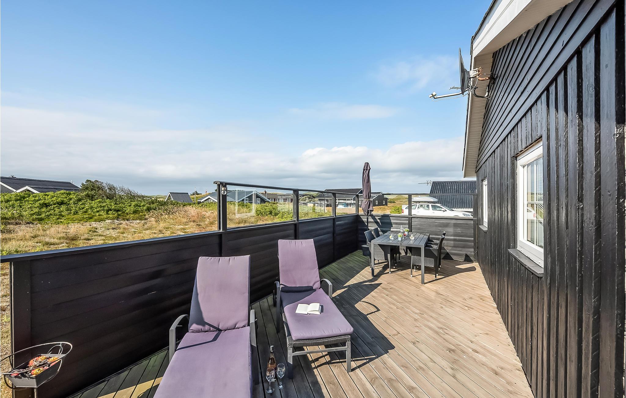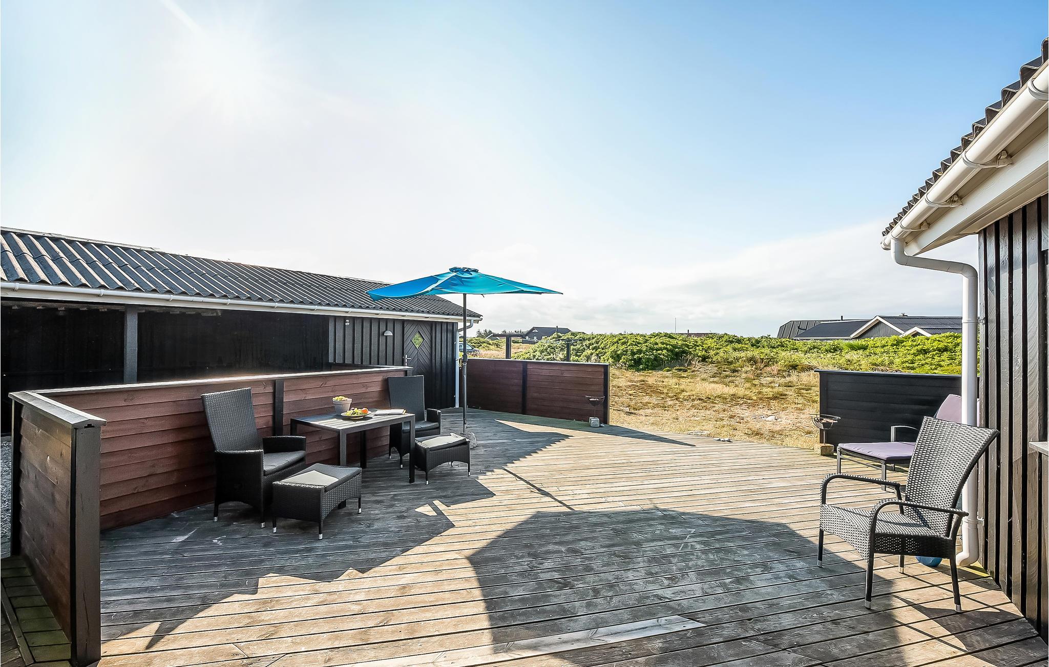 Bo kun 350 m fra det skønne Vesterhav og den brede tillokkende sandstrand i dette traditionelle og hyggelige feriehus der ligger på en kuperet naturgrund. Nyd udendørslivet på terrassen hvor det salte hav kan duftes, eller kryb indendørs når duggen er faldet og se en film på tv, eller fordyb jer i en god bog. I området er der mange cykelstier gennem den smukke natur, så det er oplagt at tage cyklerne med, eller leje på stedet. Her kan I holde ferie uanset årstid, noget særligt er en efterårsferie med gode lange ture langs havet når det har stormet og bølgerne har kastet det gyldne rav op på stranden.