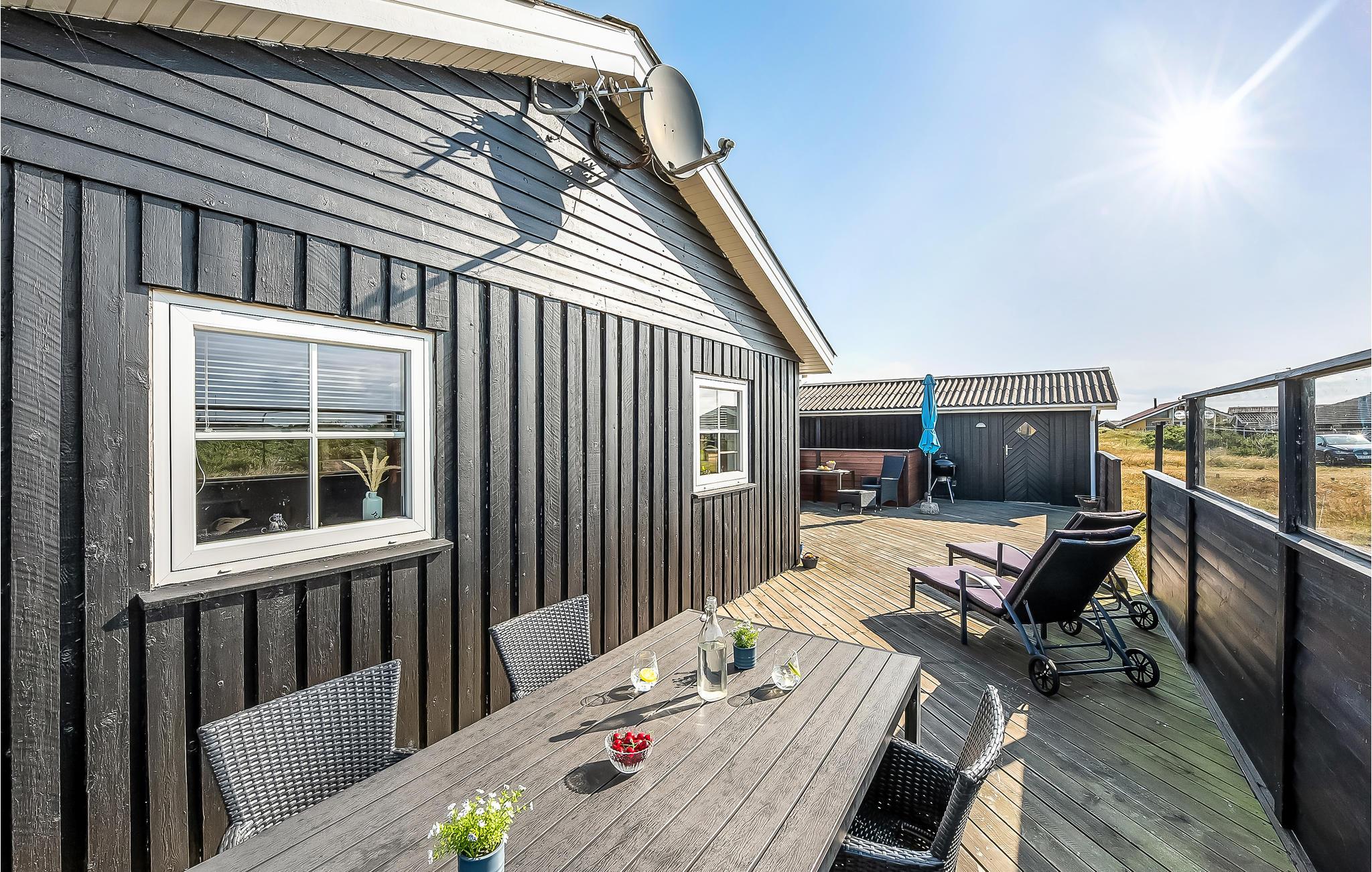 Hyggeligt feriehus i Bjerregård, kun 350 m fra Vesterhavets brede sandstrand med moderne faciliteter og smuk natur omkring.
