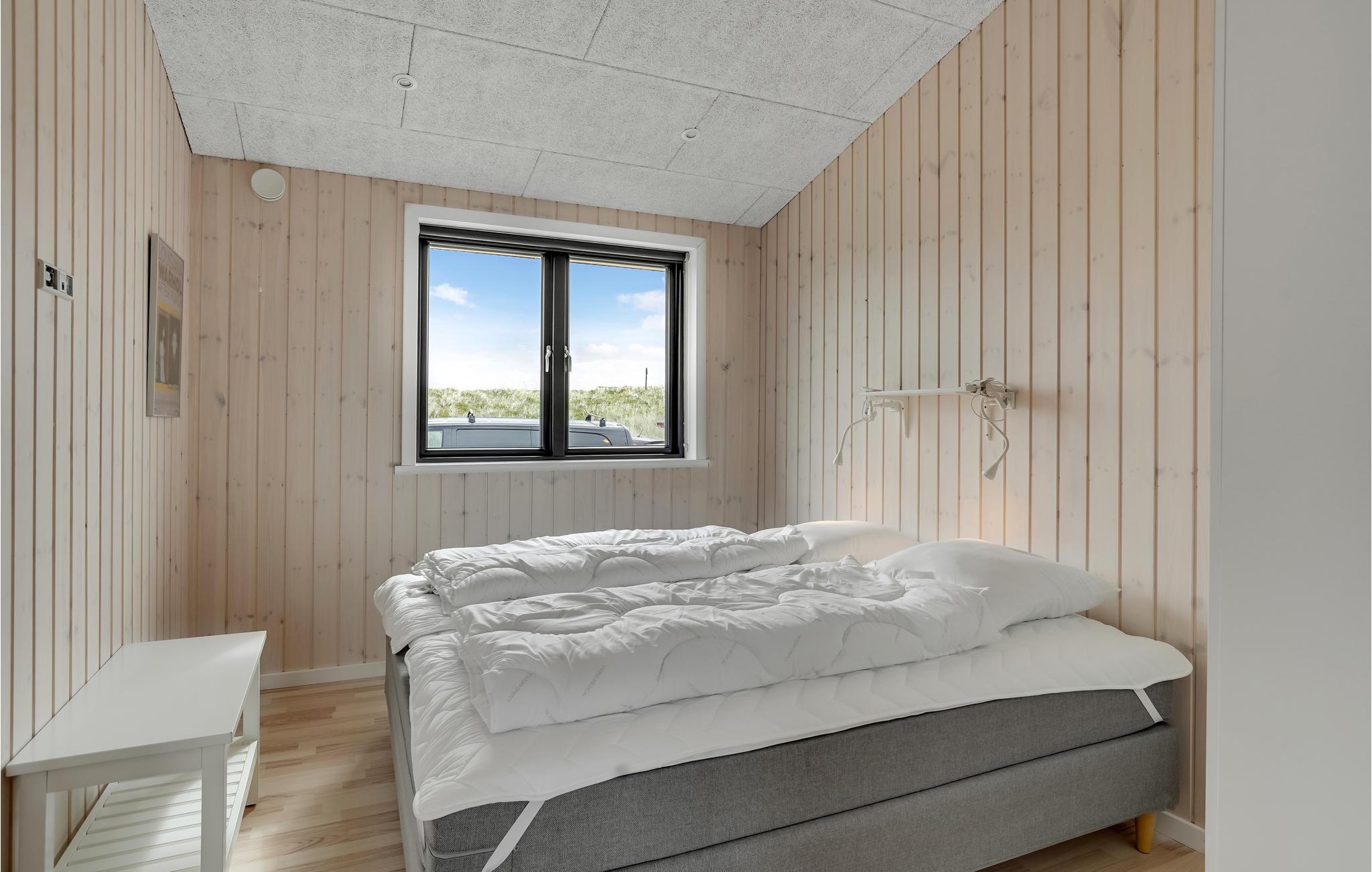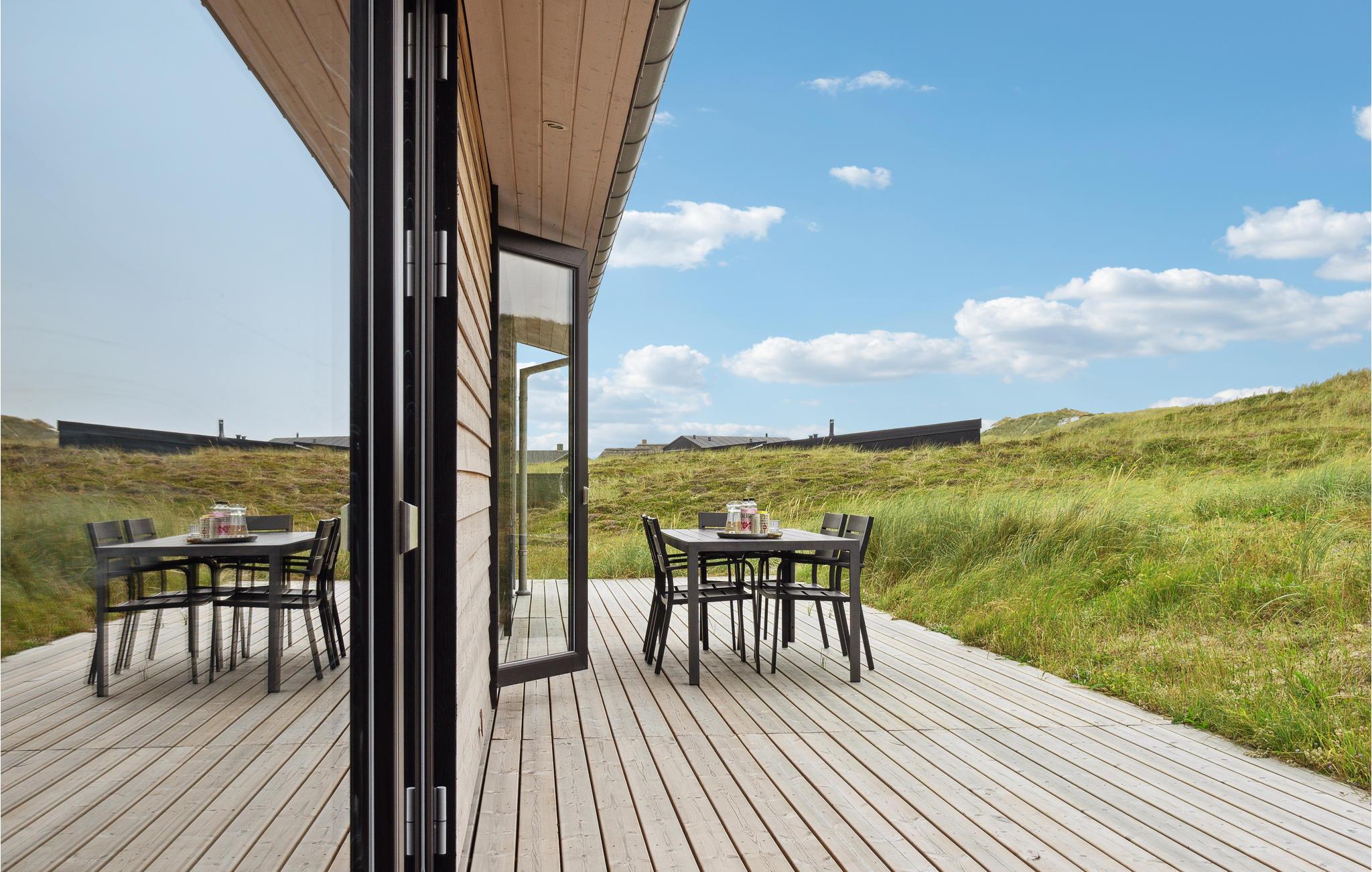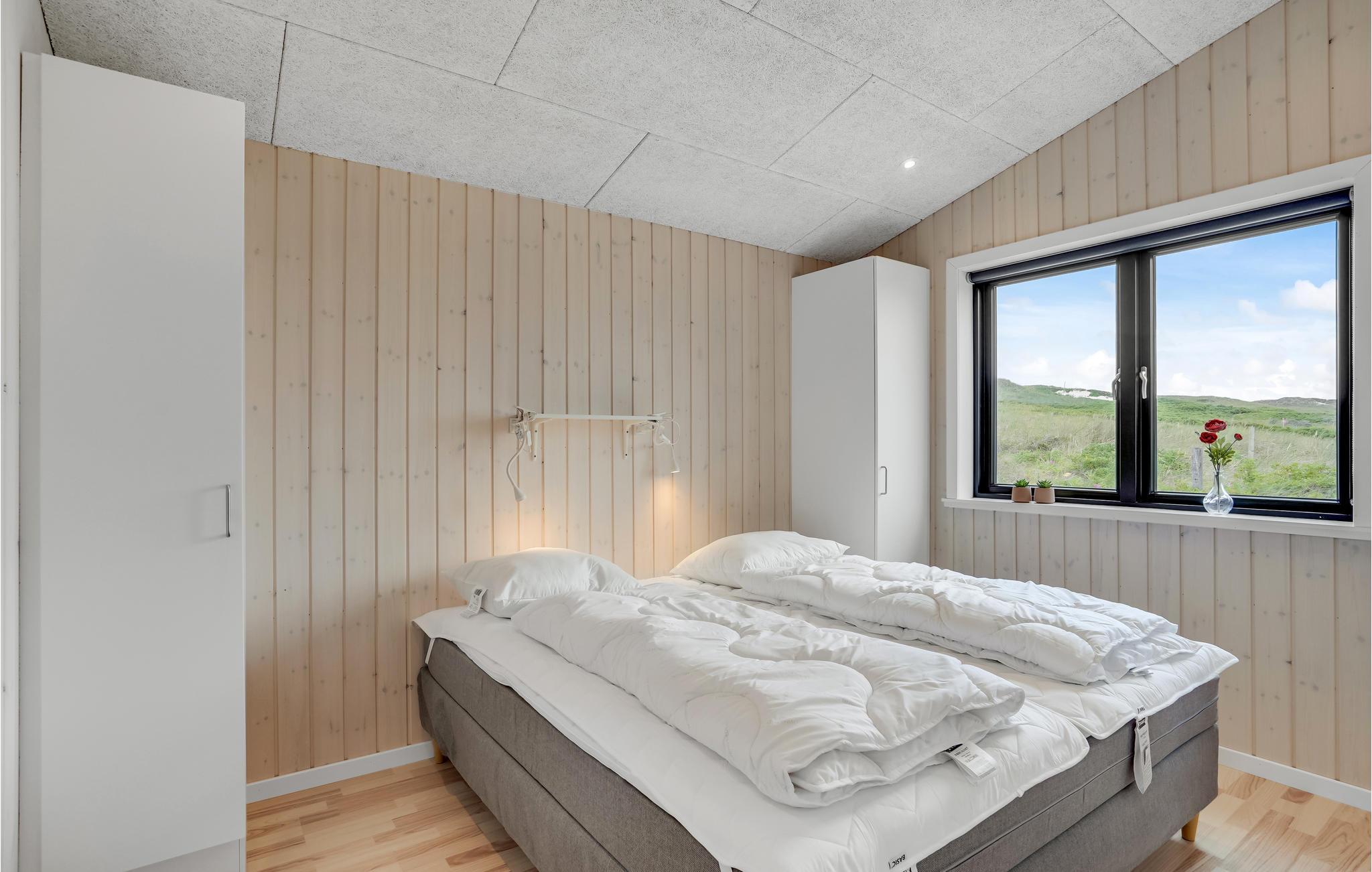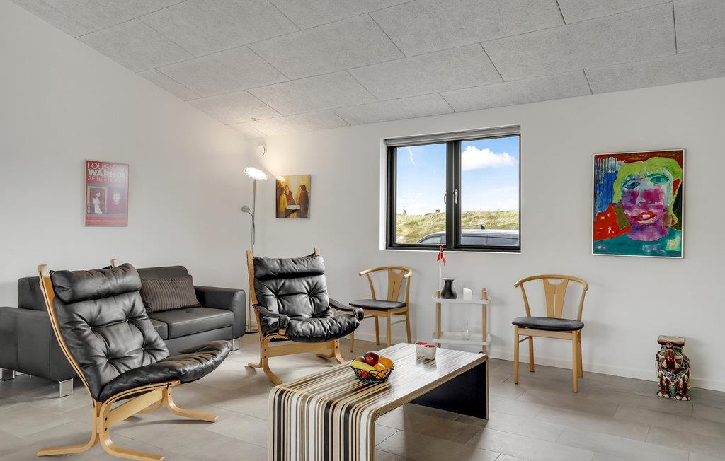 Med en fantastisk beliggenhed i det sydlige Bjerregård, kun 100 m fra Vesterhavet, ligger dette lyse og indbydende sommerhus, hvor I hurtigt vil føle jer hjemme. Start dagen med at tilberede lækker morgenmad i det åbne køkkenalrum, og nyd den på terrassen, mens I planlægger dagens aktiviteter. Måske skal I udfordre hinanden til spil og konkurrencer i aktivitetsrummet, eller bare dase i solen på terrassen. Afslut dagen med en lækker grillmiddag, mens I beundrer solnedgangens smukke farvespil på himlen.