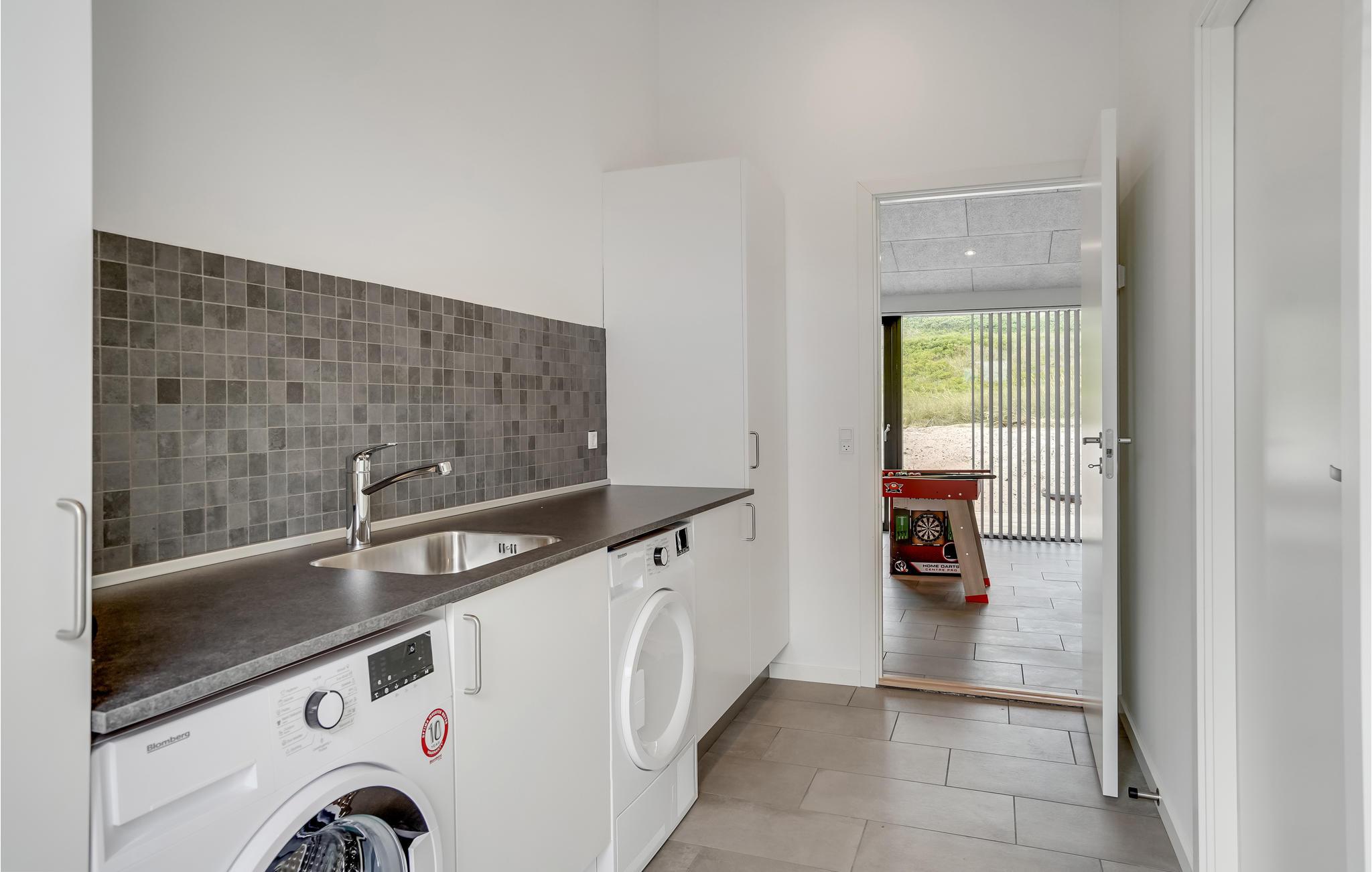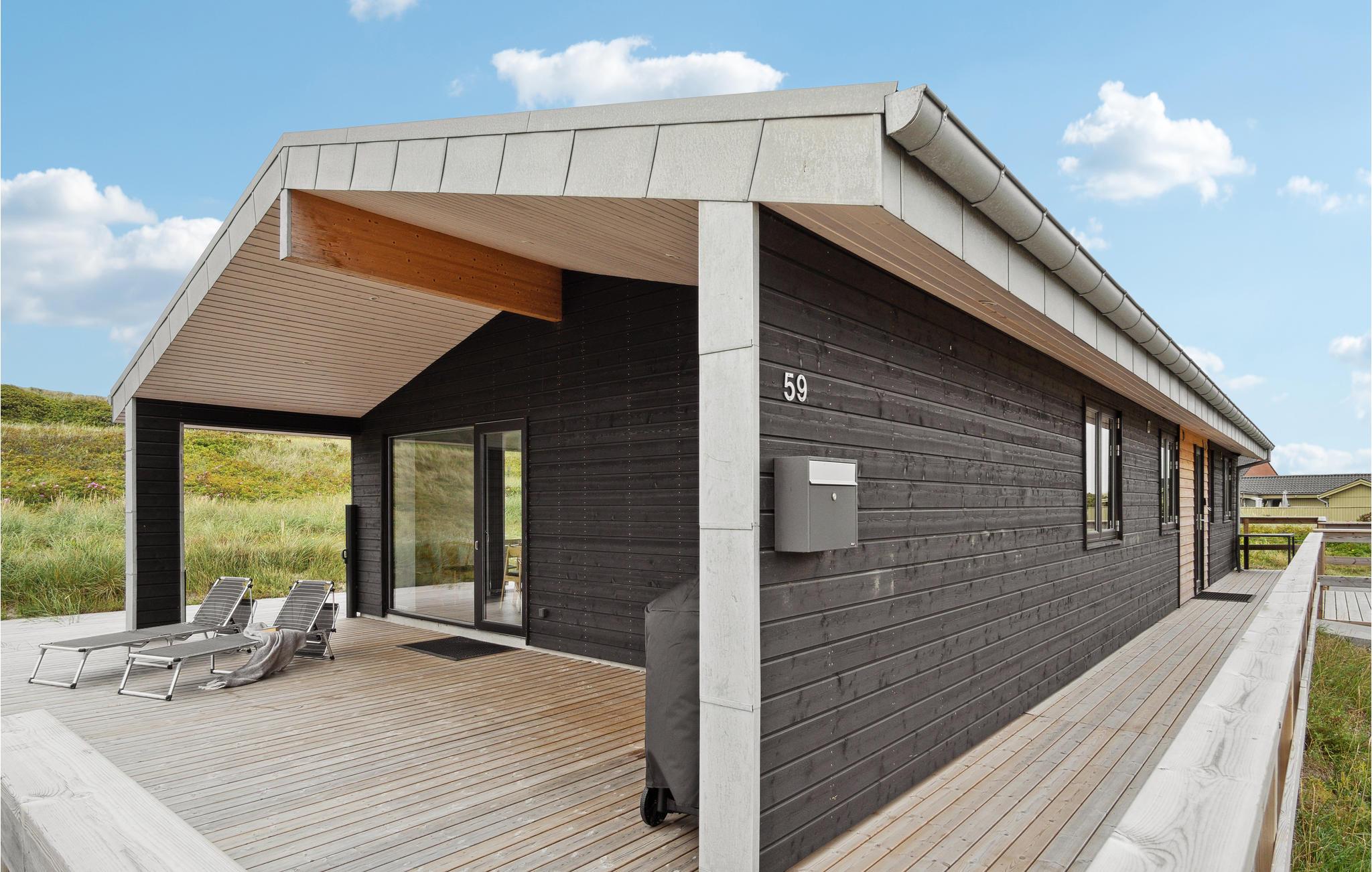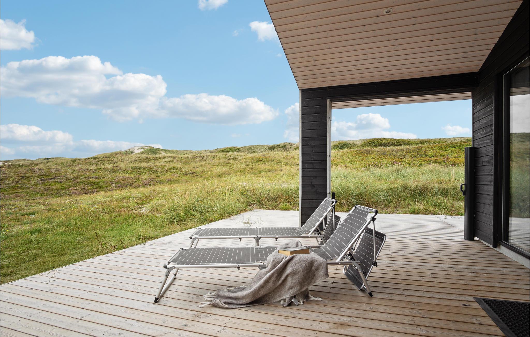 Med en fantastisk beliggenhed i det sydlige Bjerregård, kun 100 m fra Vesterhavet, ligger dette lyse og indbydende sommerhus, hvor I hurtigt vil føle jer hjemme. Start dagen med at tilberede lækker morgenmad i det åbne køkkenalrum, og nyd den på terrassen, mens I planlægger dagens aktiviteter. Måske skal I udfordre hinanden til spil og konkurrencer i aktivitetsrummet, eller bare dase i solen på terrassen. Afslut dagen med en lækker grillmiddag, mens I beundrer solnedgangens smukke farvespil på himlen.